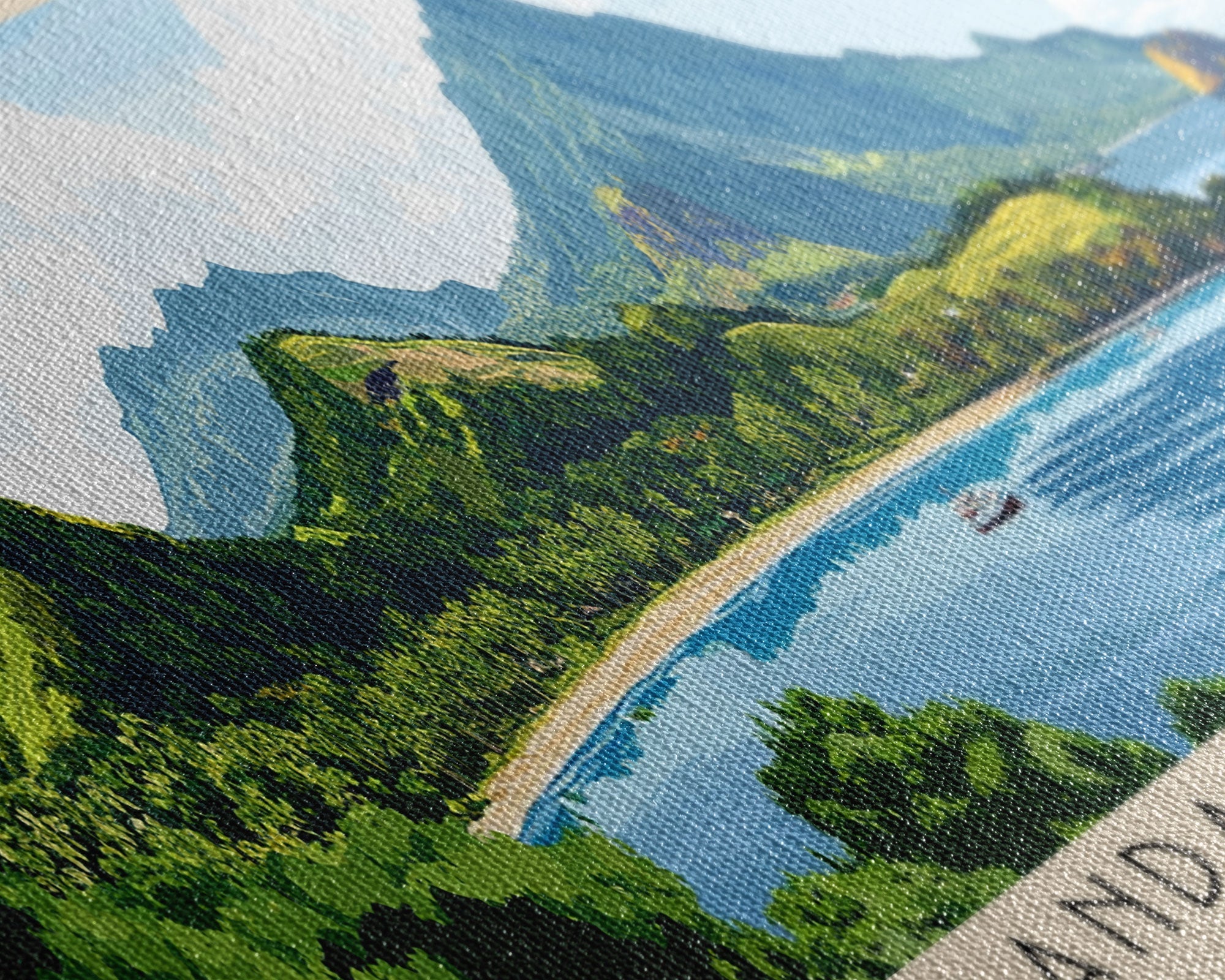 Most of our canvases are made in the USA, with the exception of canvases ordered with the light oak unstained frames, and any large canvases (24x48, 30x60, 16x48 and 20x60) ordered WITH a frame. These are temporarily made in and shipped from Europe, while we try to find a more consistent supplier in the USA.