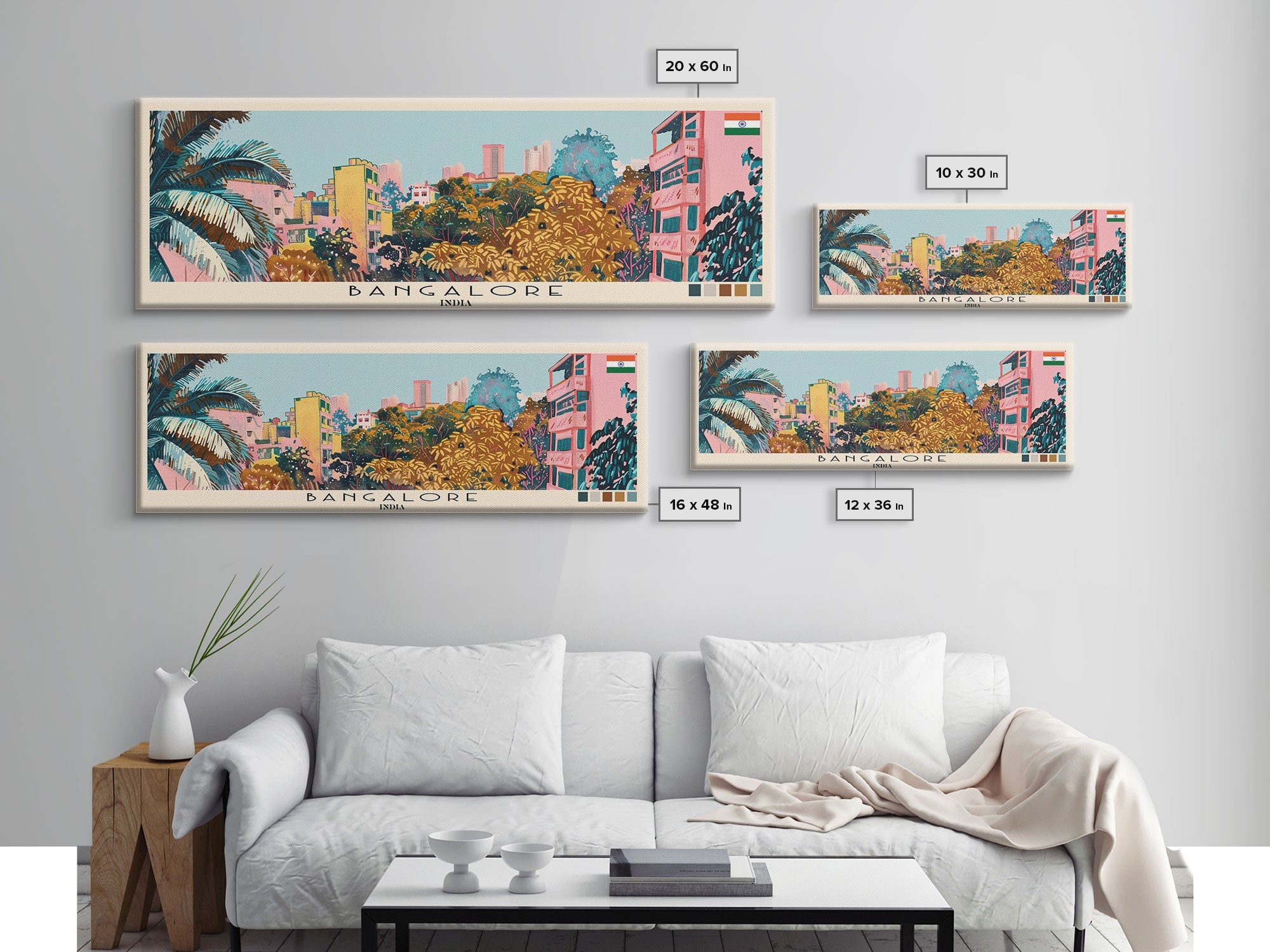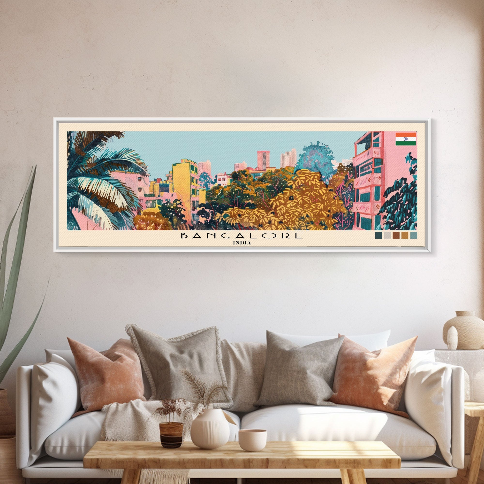 Bangalore, India Panoramic Canvas Print, Bangalore, India Painting, India Art, Bangalore Travel Poster, Travel Art, Vacation Gift