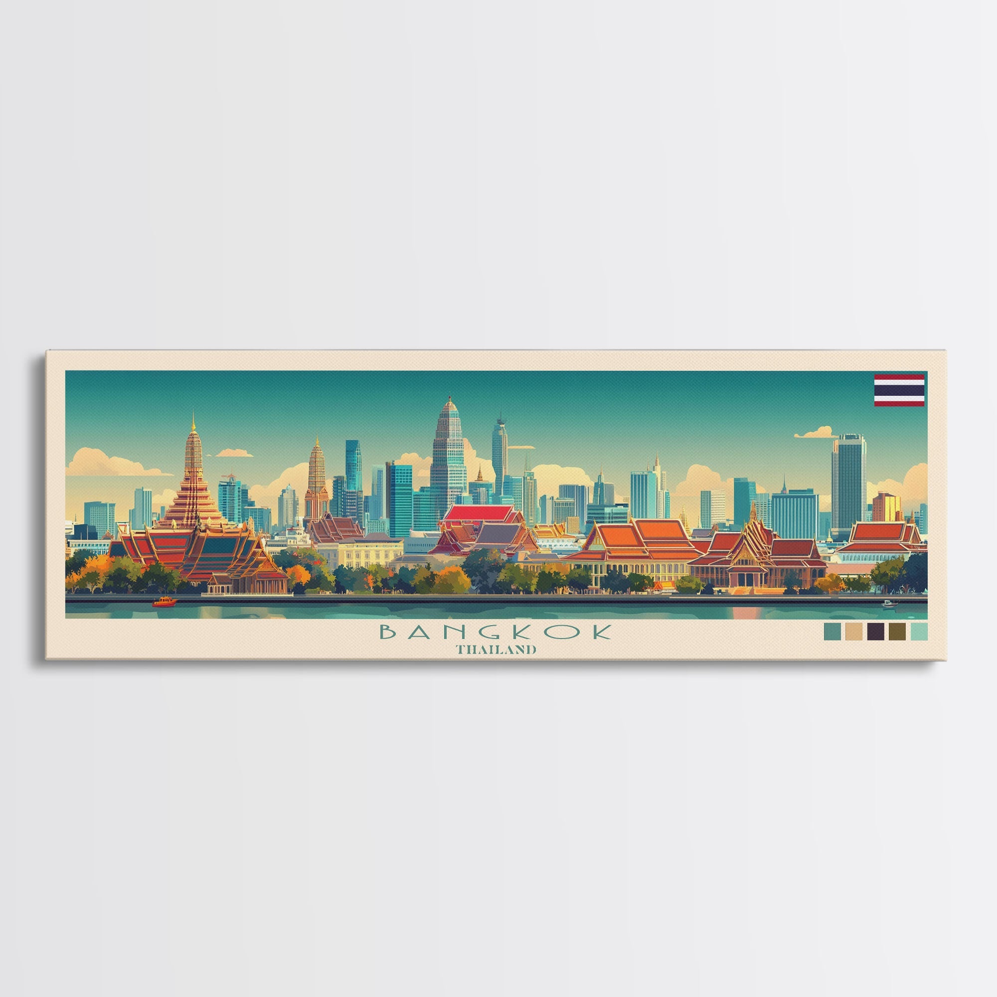 Bangkok, Thailand Travel Poster Panoramic Canvas Print, Bangkok, Thailand Painting, Thailand Art, Bangkok Travel Art, Guest Room Painting
