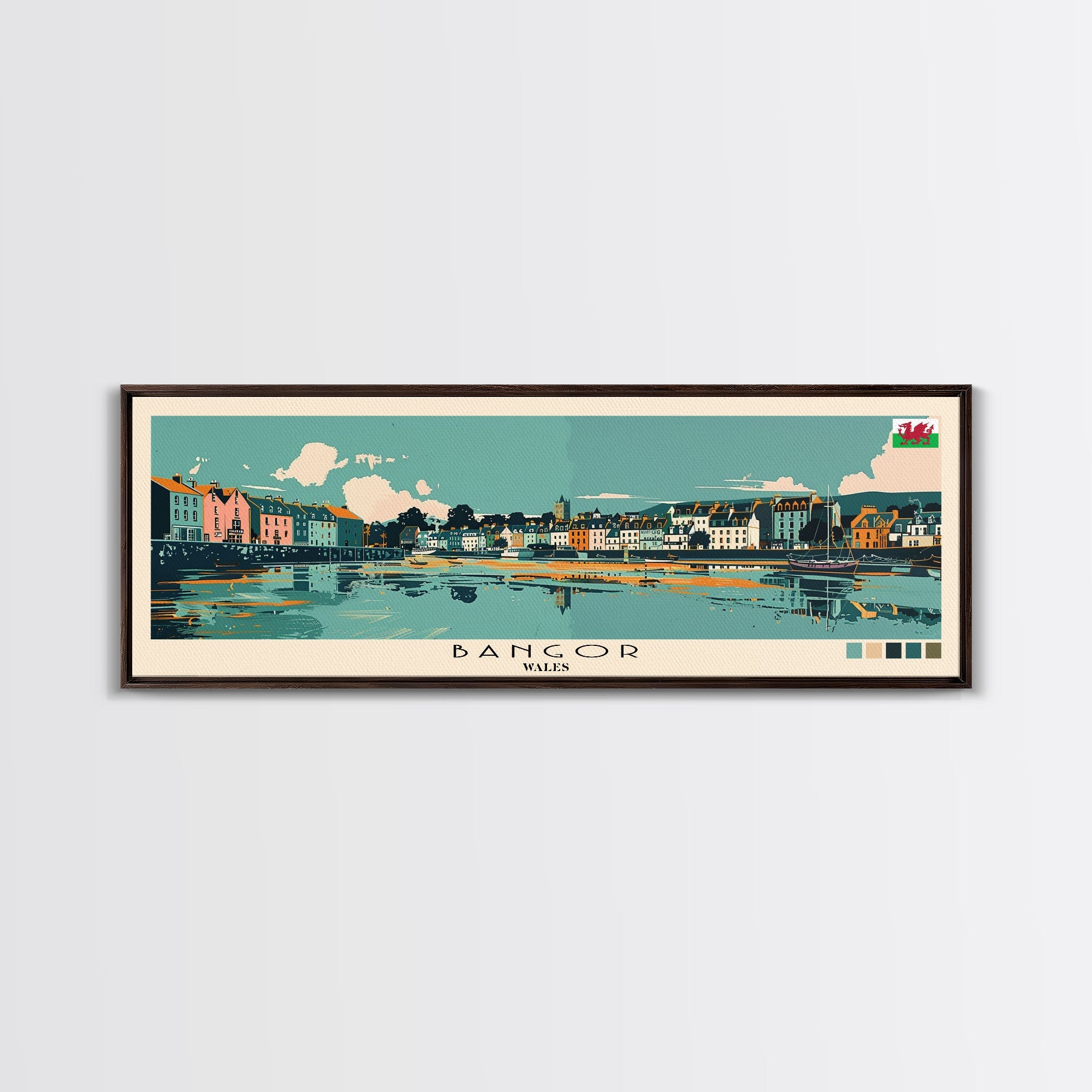 Bangor, Wales Panoramic Canvas Print, Bangor, Wales Painting, Wales Art, Bangor Travel Poster, Travel Art, Housewarming Gift