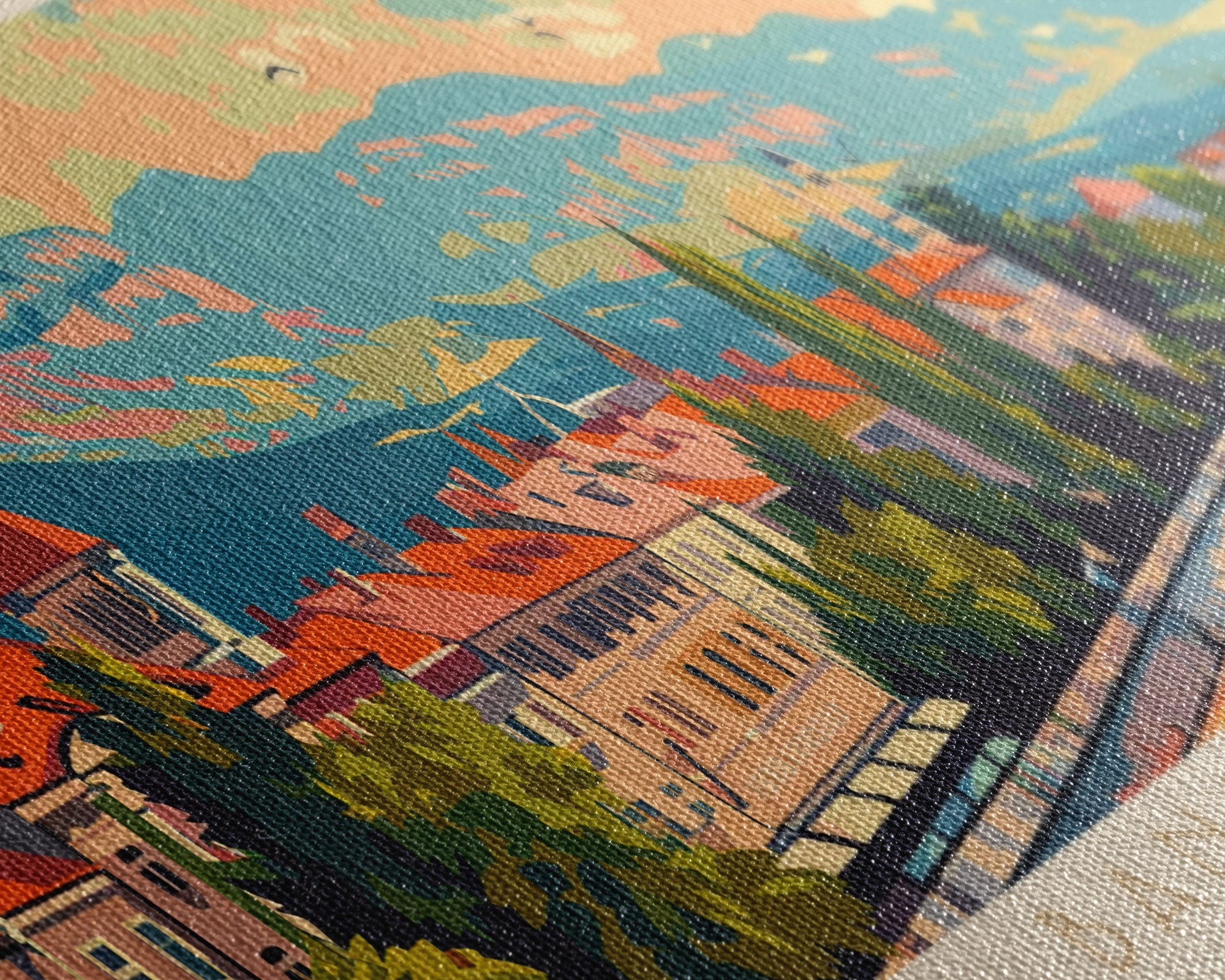 • Load image into Gallery viewer, Banja Luka Bosnia Panoramic Travel Poster, Framed Canvas Print or Metal Wall Art, Travel Art, Home Decor, Panoramic Painting, Midcentury Art