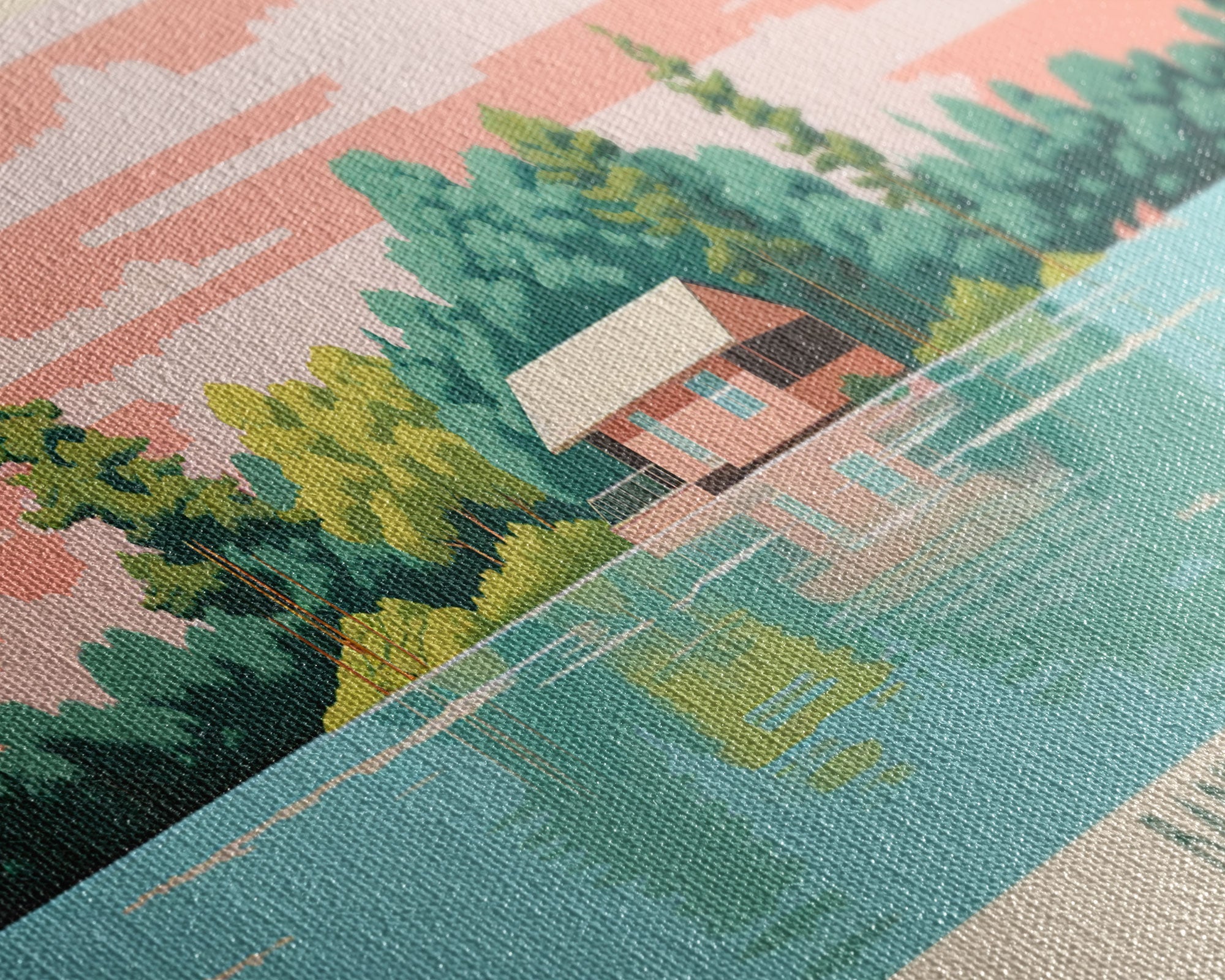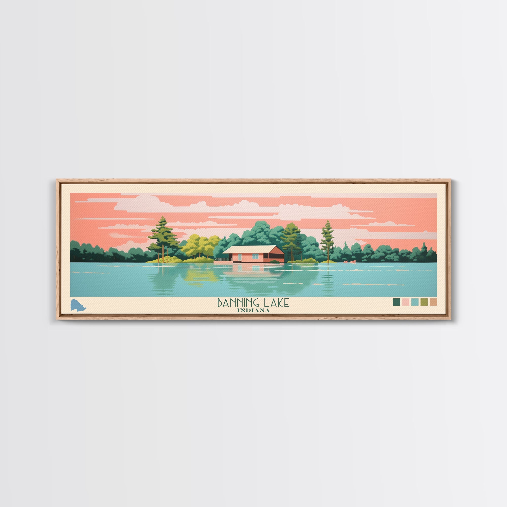 Banning Lake Indiana Framed Canvas Print, Panoramic Travel Poster, Midcentury Modern Wall Art, Pop Art, Bedroom Decor
