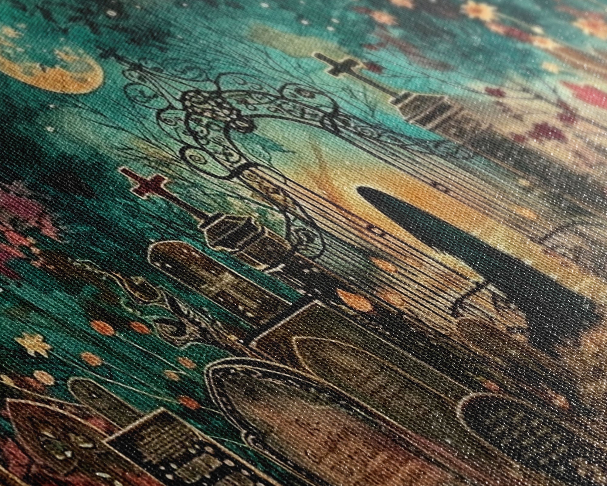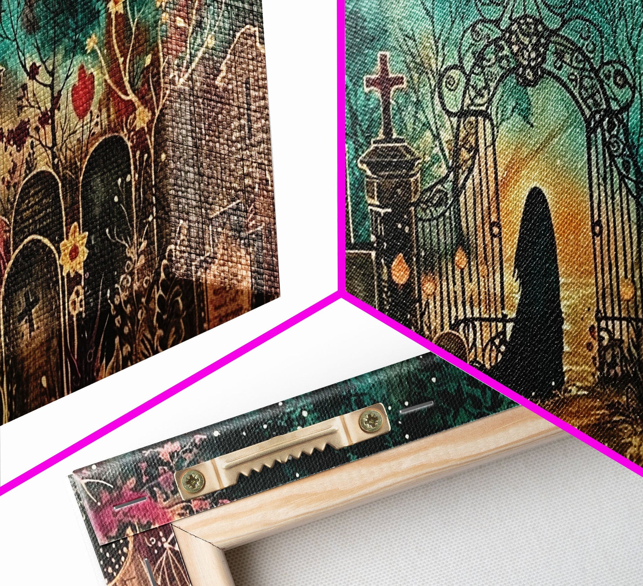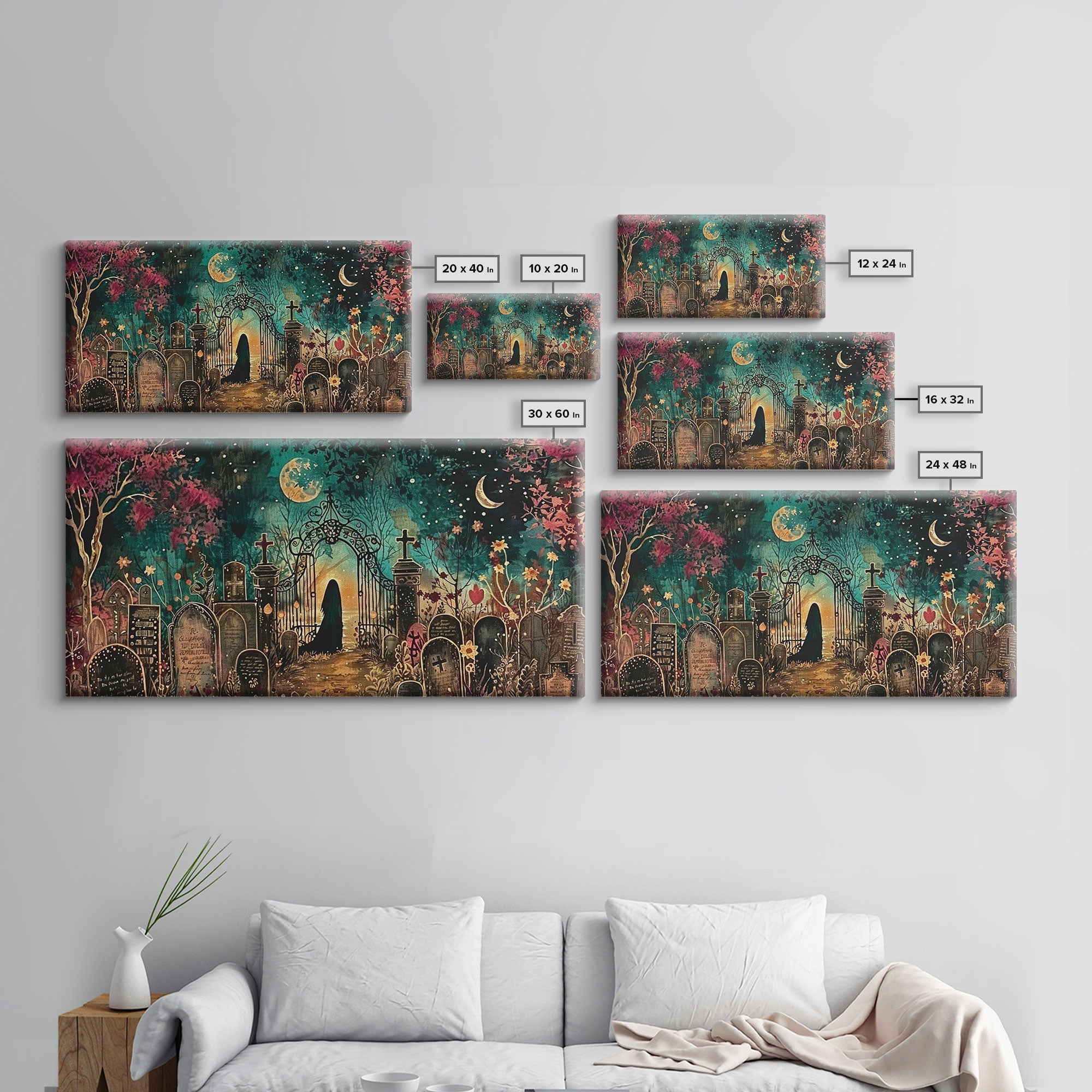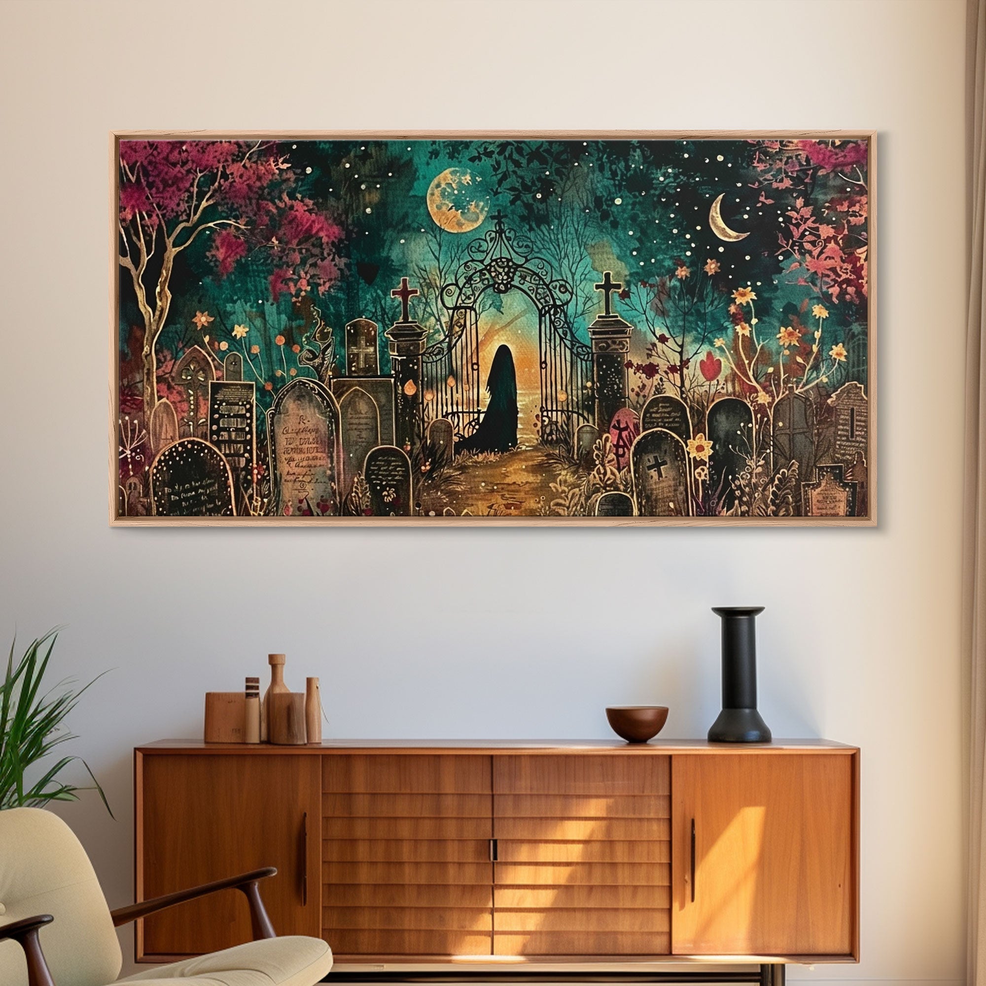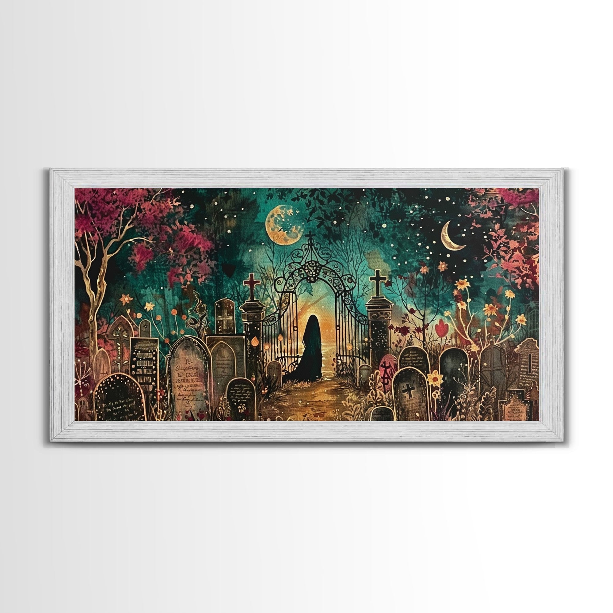 Banshee In The Graveyard, Framed Canvas Print, Halloween Decor, Spooky Season Wall Art, Halloween Gift Idea