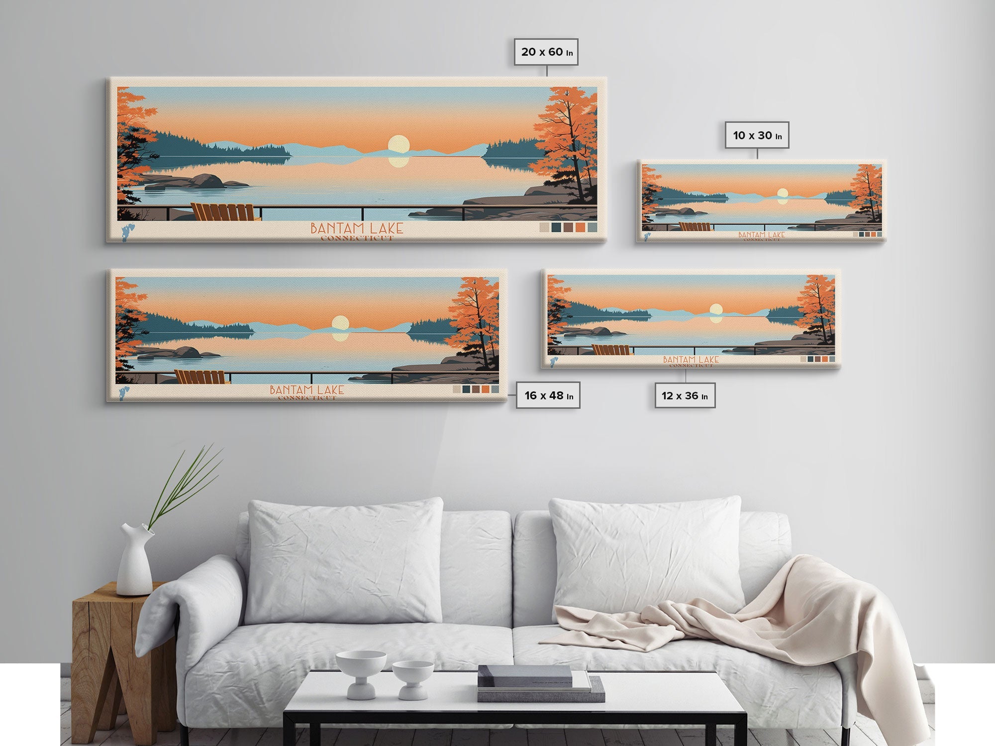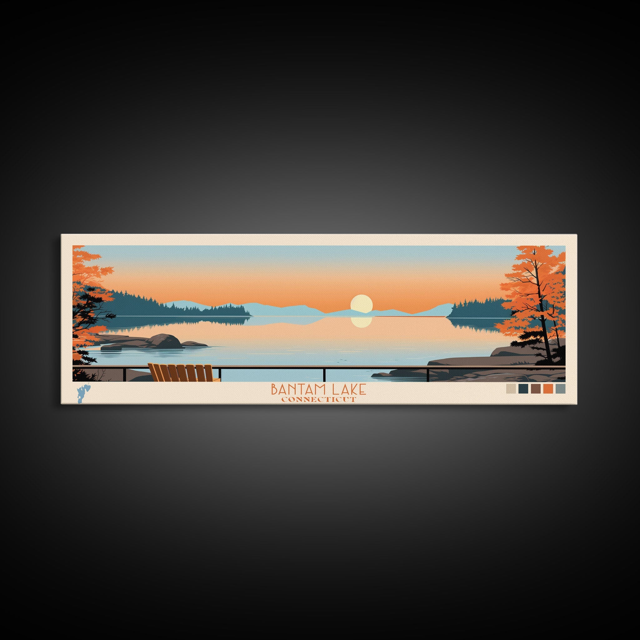 Bantam Lake Connecticut Framed Canvas Print, Panoramic Wall Art, Midcentury Modern, Pop Art, Travel Poster, Scenic Living Room Art
