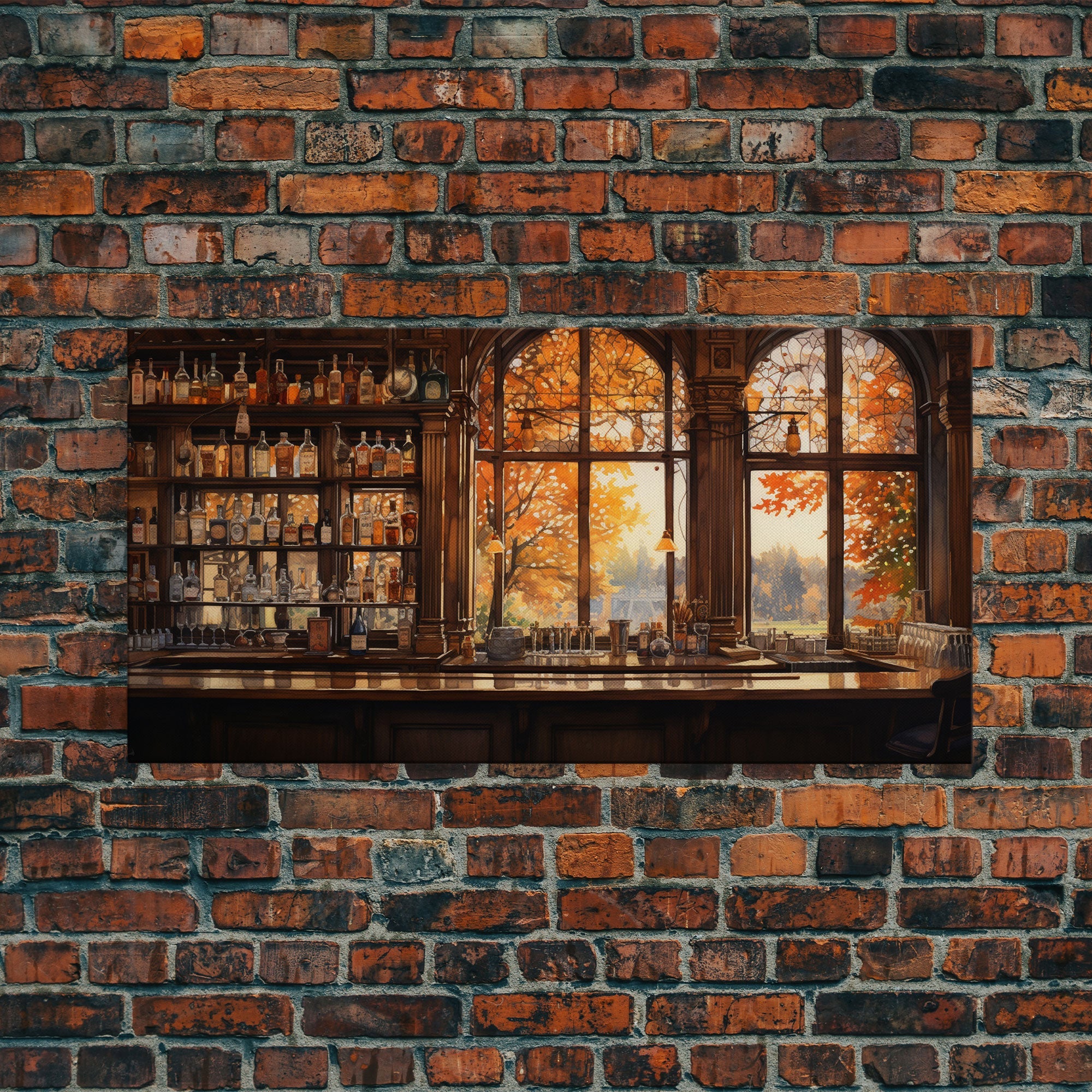 Bar Wall Art, Fall Wall Print, Tavern Art, Canvas Print, Wall Hanging, Panoramic Art, Anniversary Gift, Dining Room Decor, Gaming Wall Decor