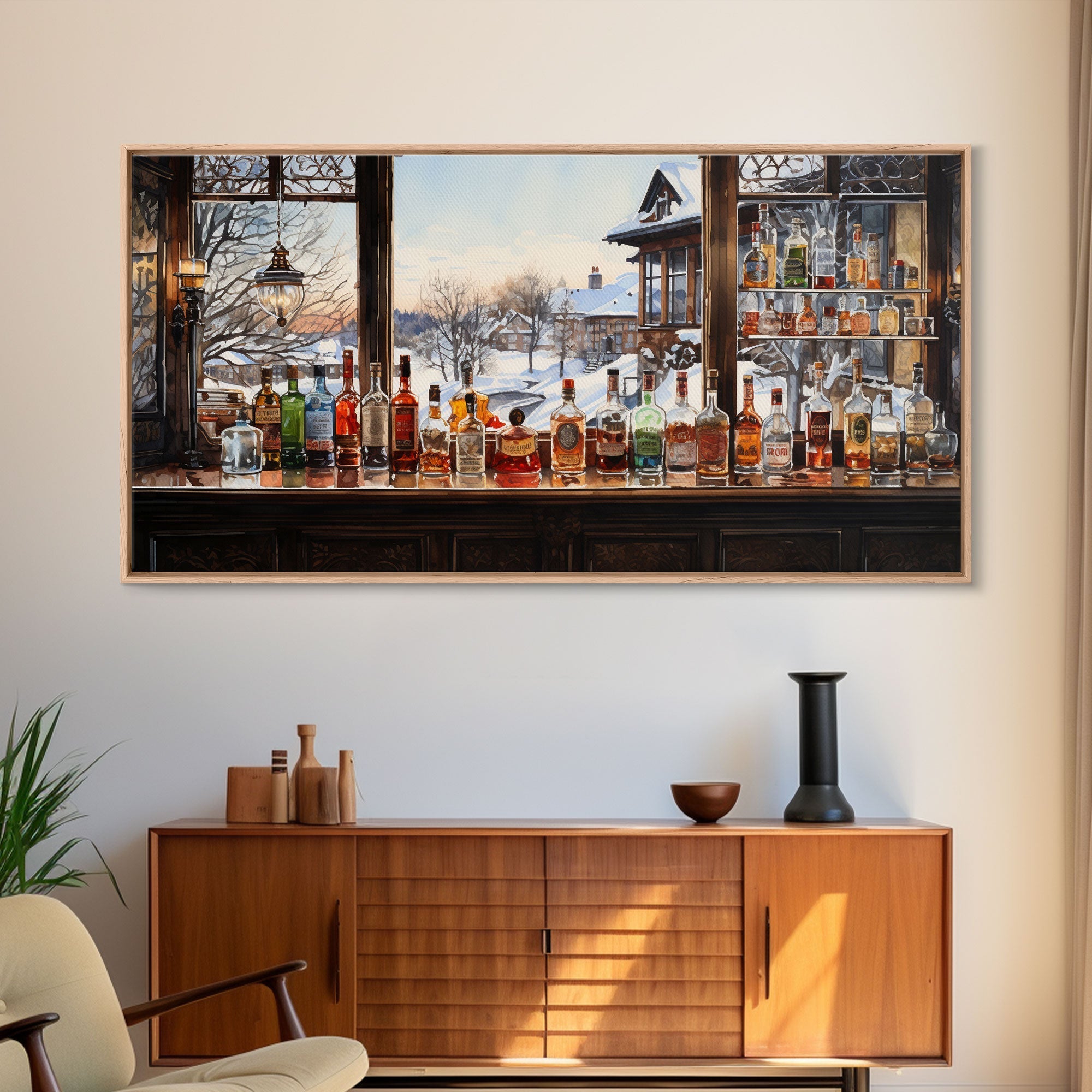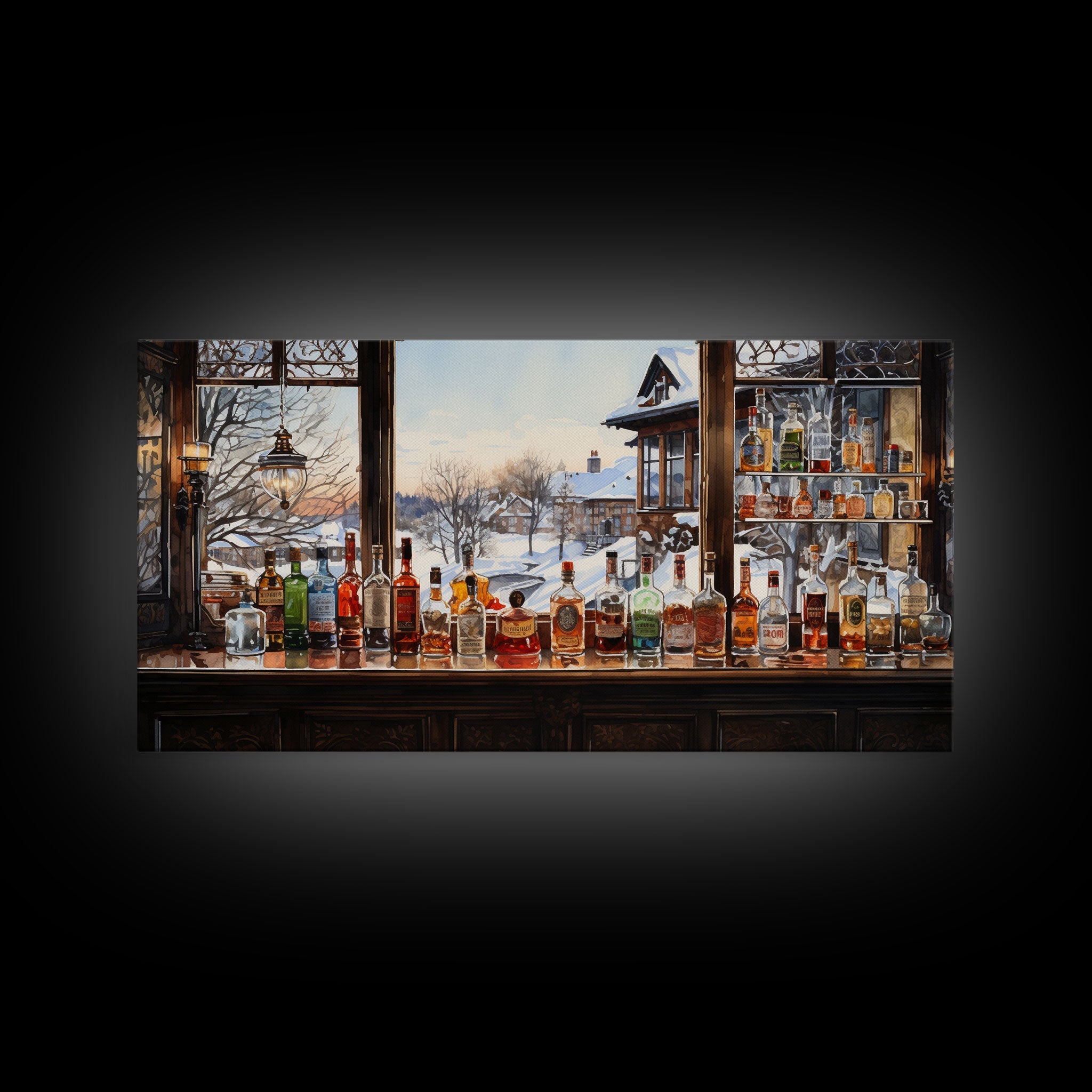 Bar Wall Decor, Winter Wall Print, Canvas Print, Wall Hanging, Panoramic Art, Home Bar Decor, Newlywed Gift, Tiny House Decor, Room Decor