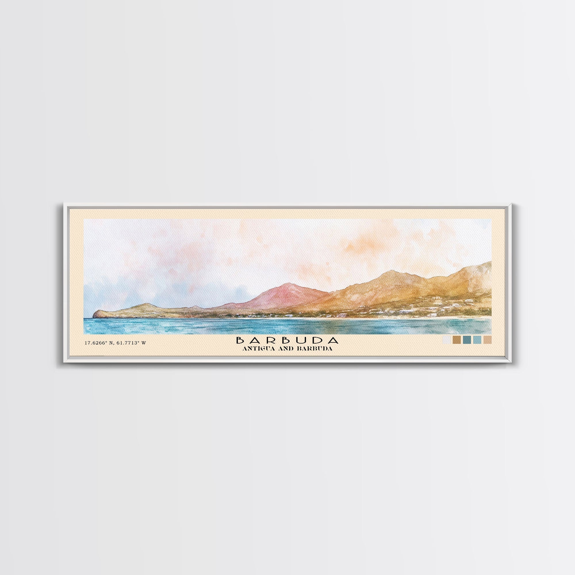 Barbuda, Antigua and Barbuda Watercolor Beach Print, Vacation Gift, Antigua and Barbuda Wall Art, Framed Canvas Print, Framed Beach Painting