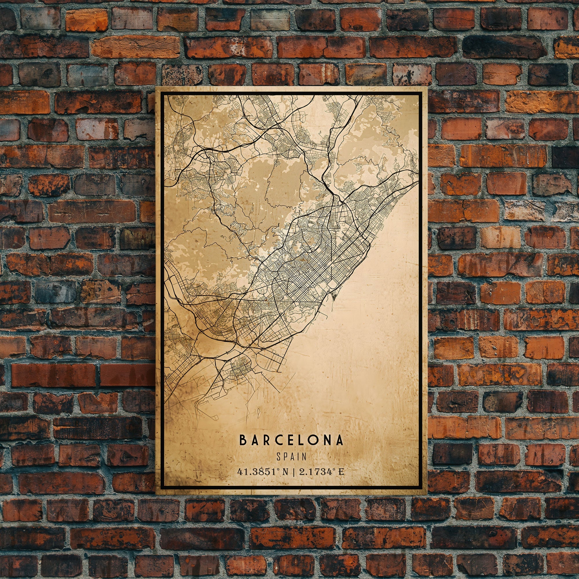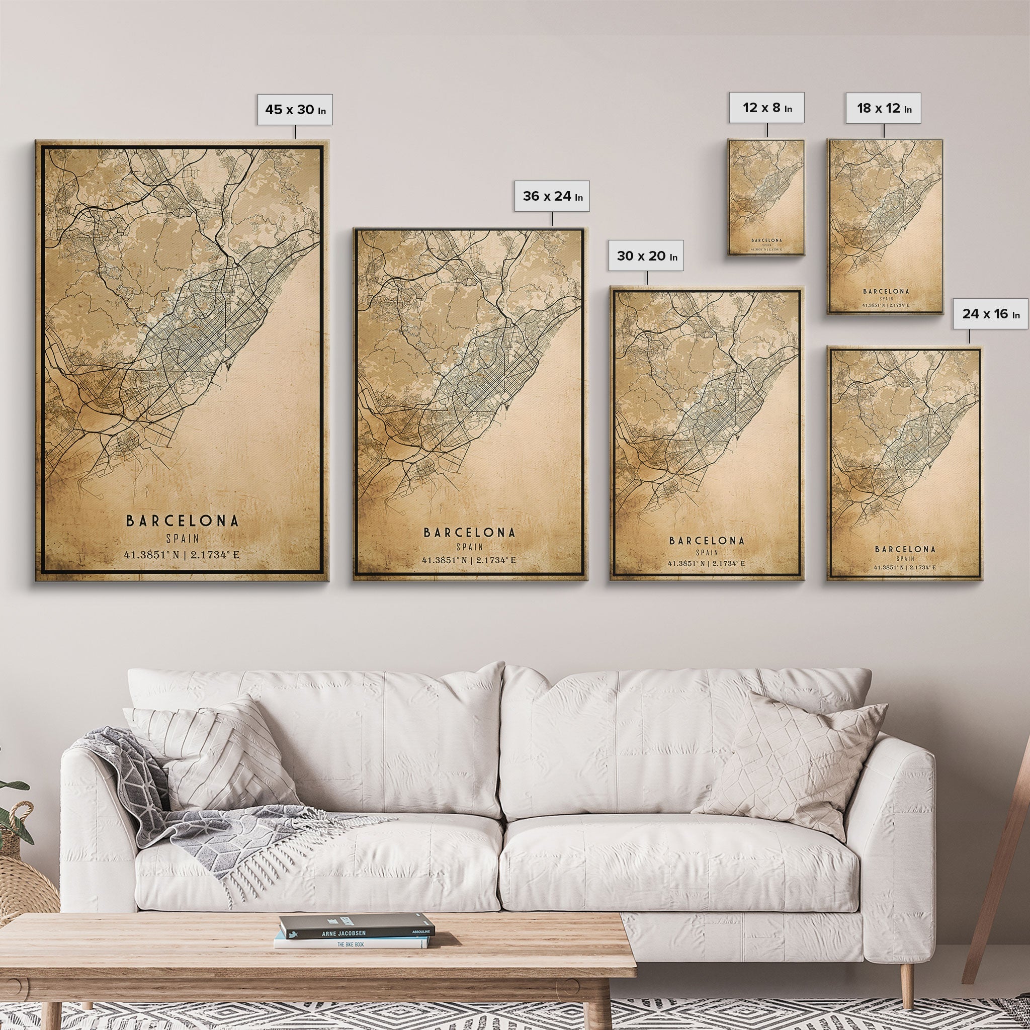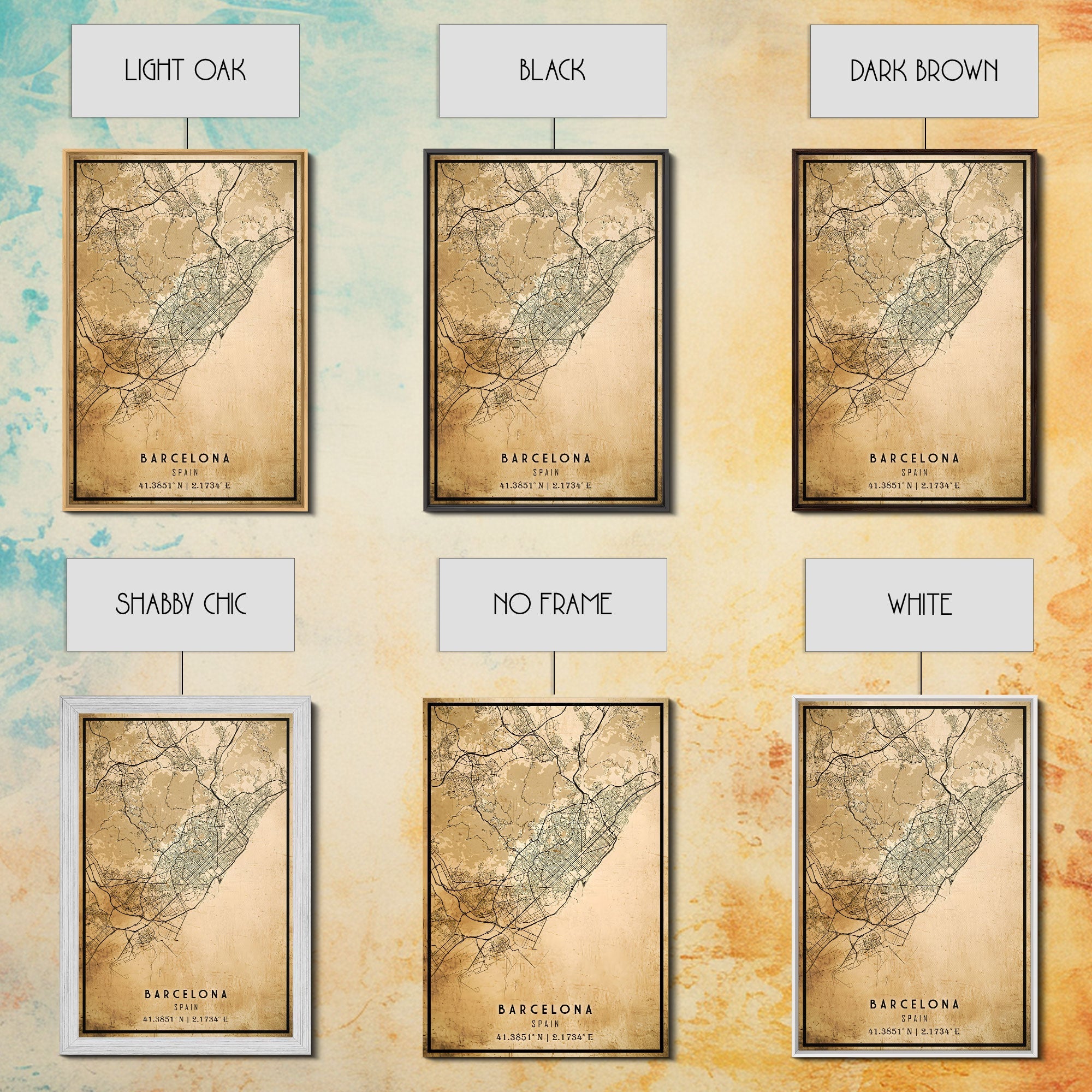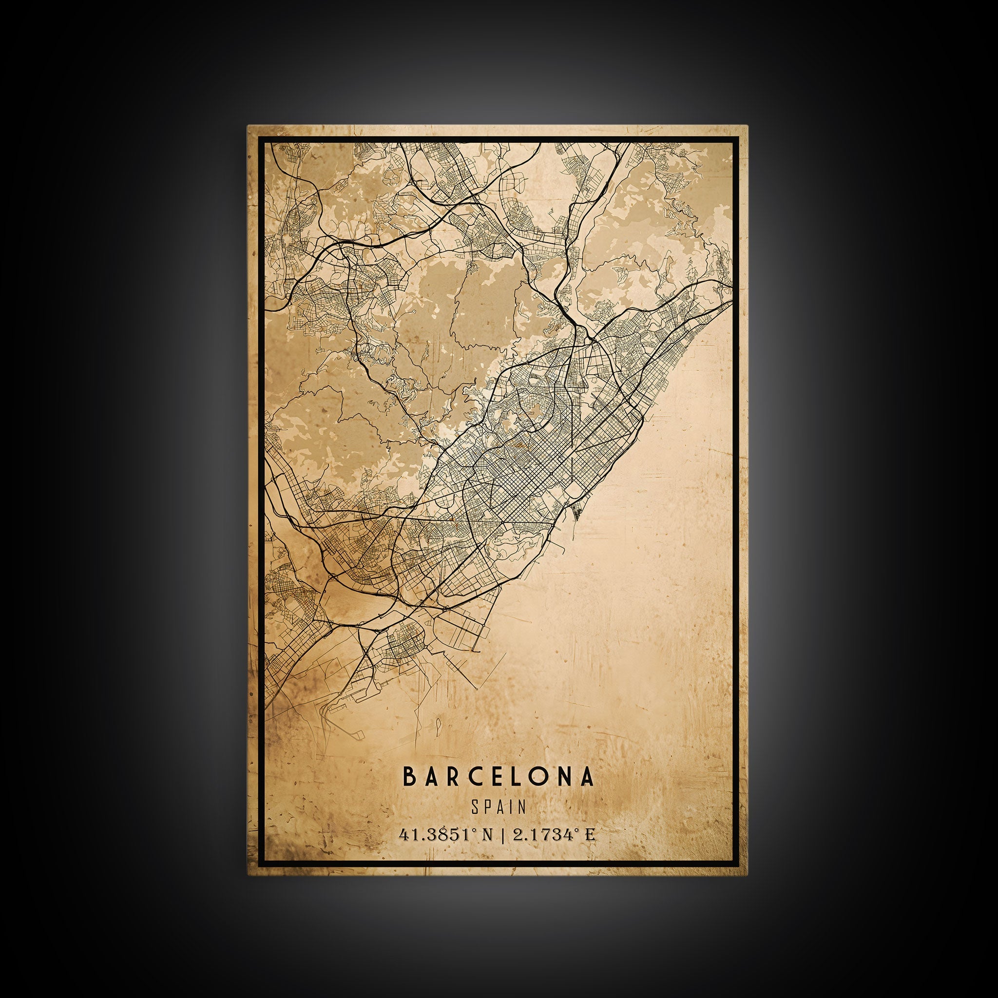 Barcelona Spain map print poster or framed canvas, Barcelona map print poster canvas, Spain city map print poster canvas, Vintage Travel Art