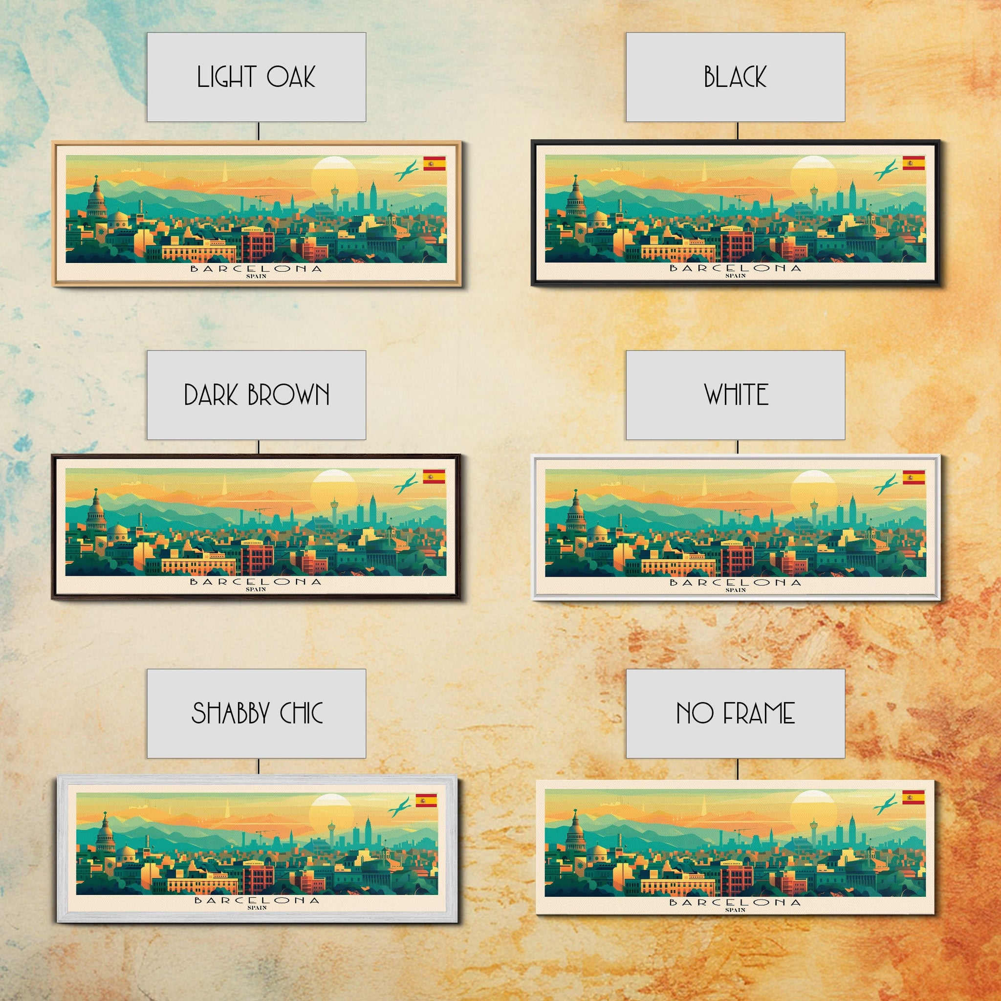 Barcelona Spain Travel Print Wall Art, Panoramic City Art, Travel Art, Wall Decor, Vacation Gift, Framed Canvas Print Or Metal Art