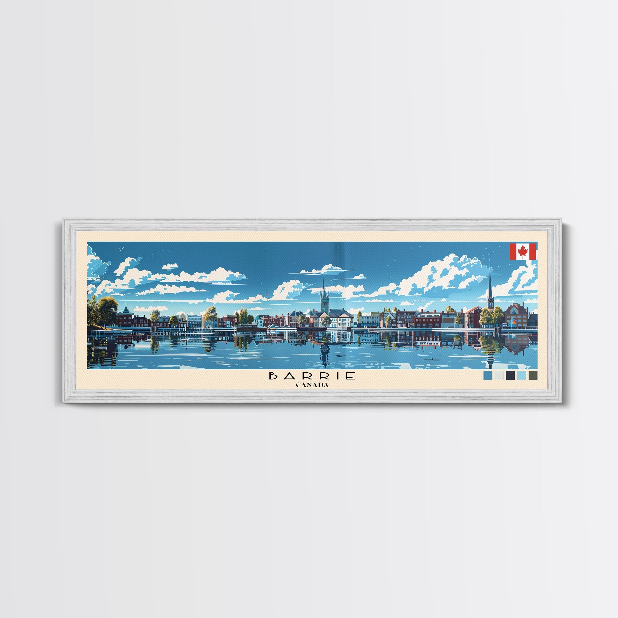Barrie, Canada Panoramic Canvas Print, Barrie, Canada Painting, Canada Art, Barrie Travel Poster, Travel Art, Guest Room Painting