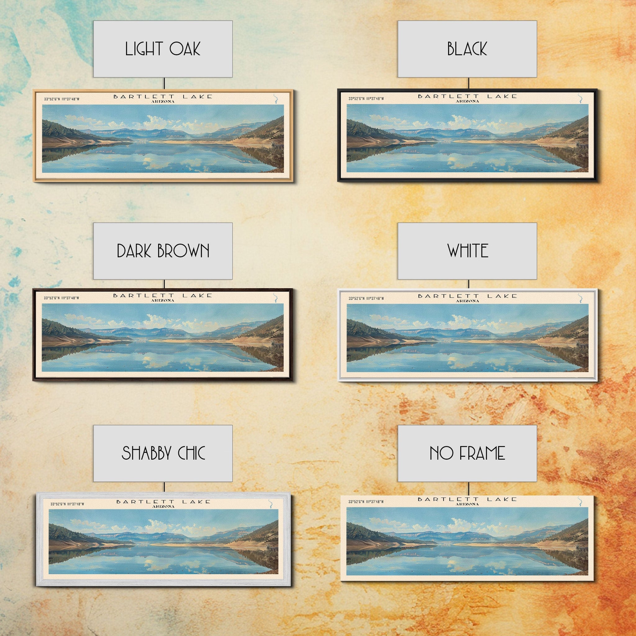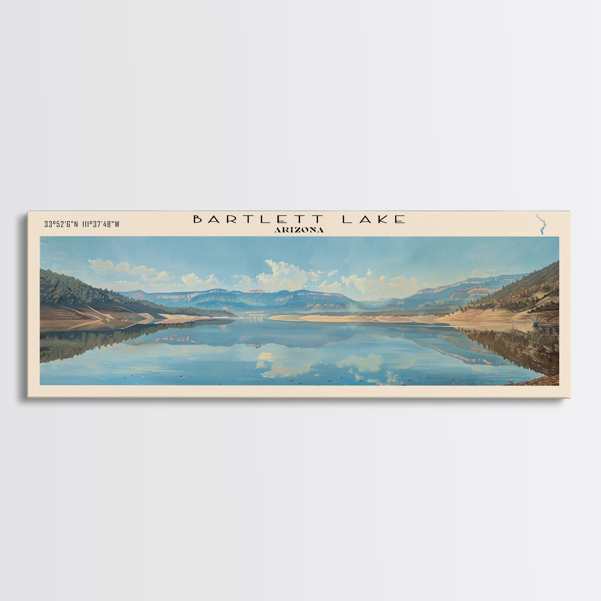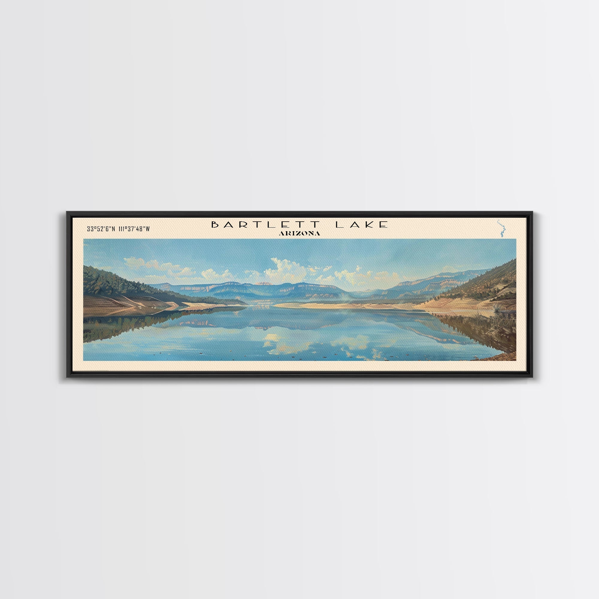 Bartlett Lake Arizona Framed Canvas Print, Panoramic Lake House Art, Scenic Painting, Travel Poster, Minimalist Wall Art, Home Decor