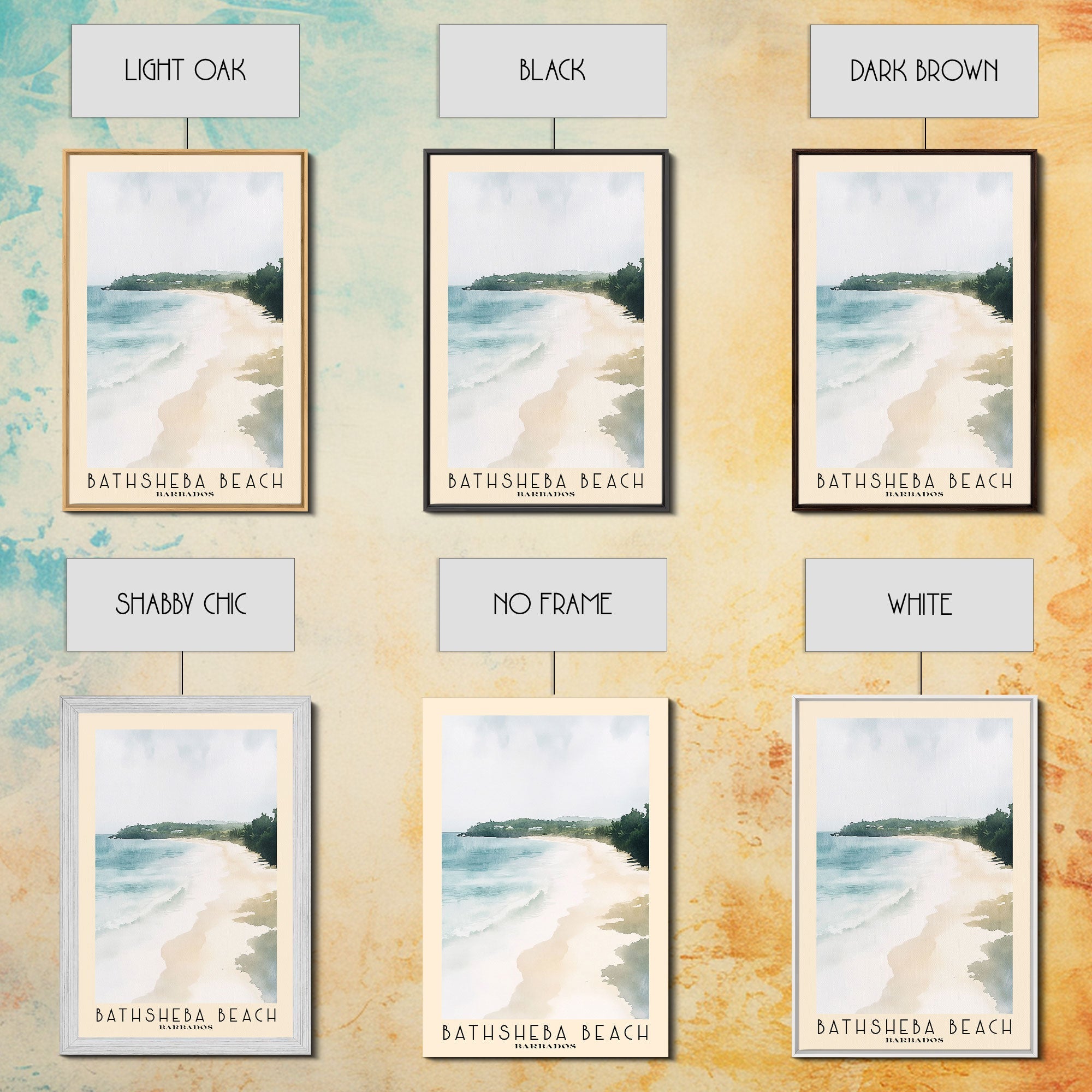 Bathsheba Beach, Barbados Watercolor Print, Vacation Gift, Barbados Wall Art, Beach Painting, Beach Decor, Large Wall Art, Wood Frame Art