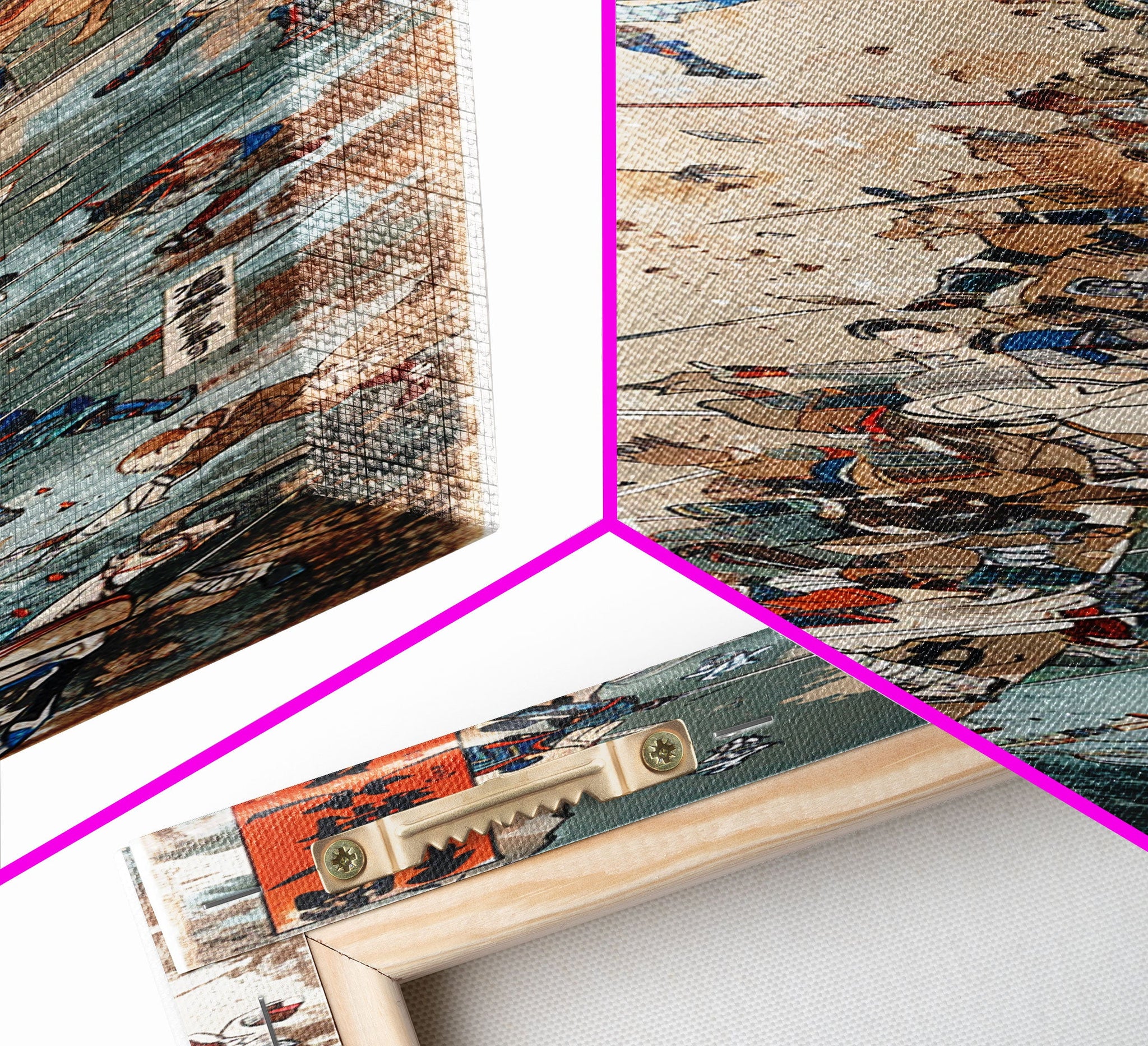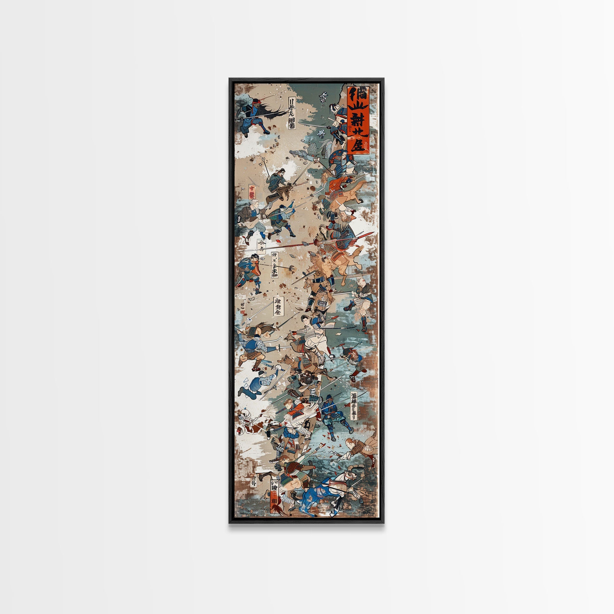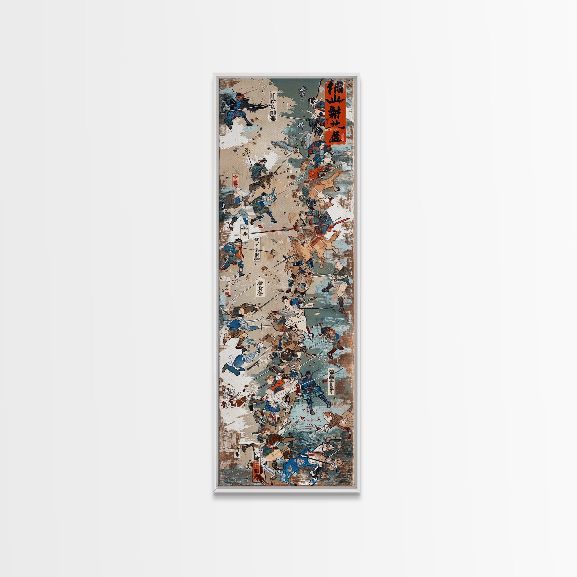 Battle Scene Featuring Warriors in Traditional Japanese Armor Ukiyo-e Art Framed Canvas Print Skinny Tall Art