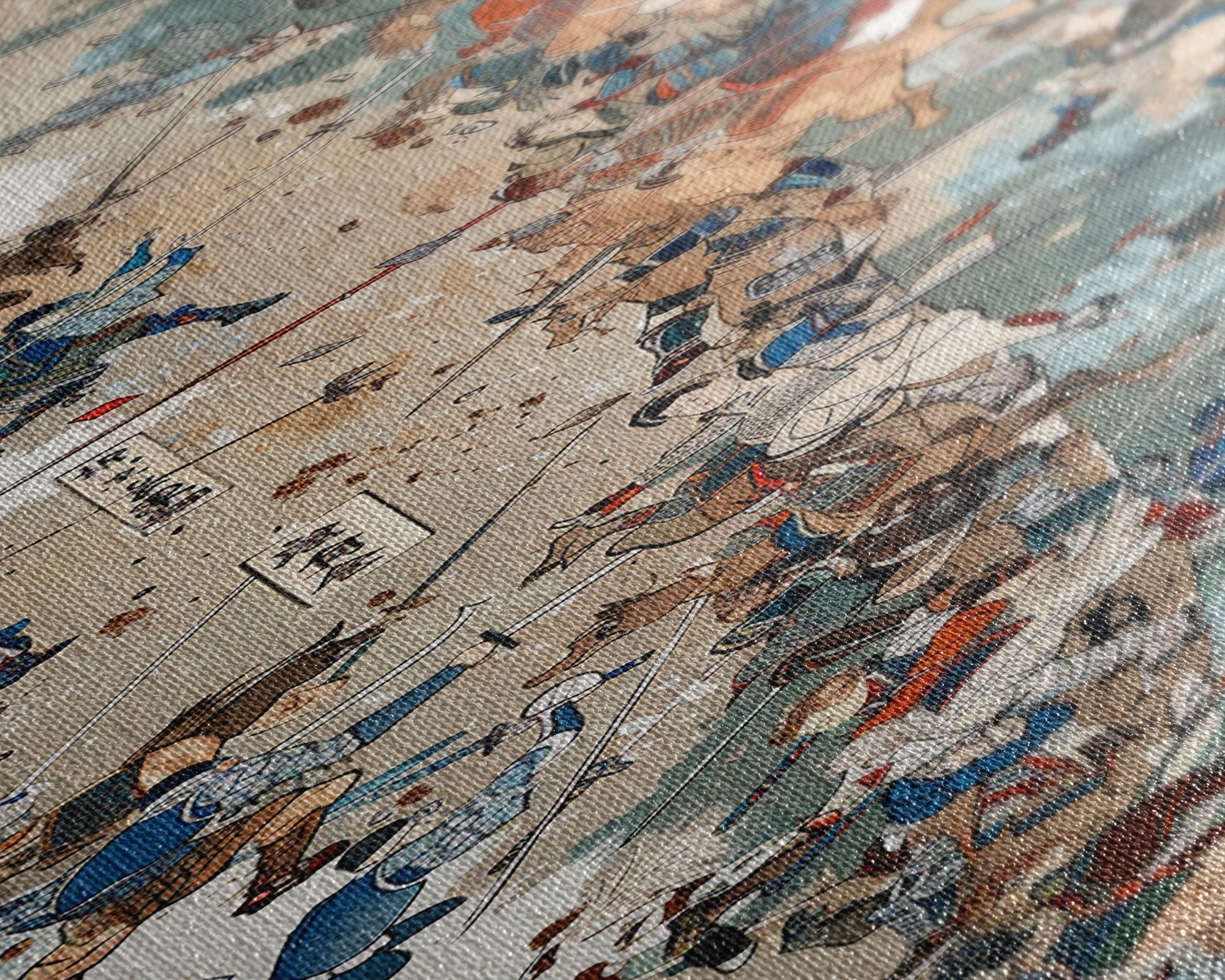 • Load image into Gallery viewer, Battle Scene Featuring Warriors in Traditional Japanese Armor Ukiyo-e Art Framed Canvas Print Skinny Tall Art