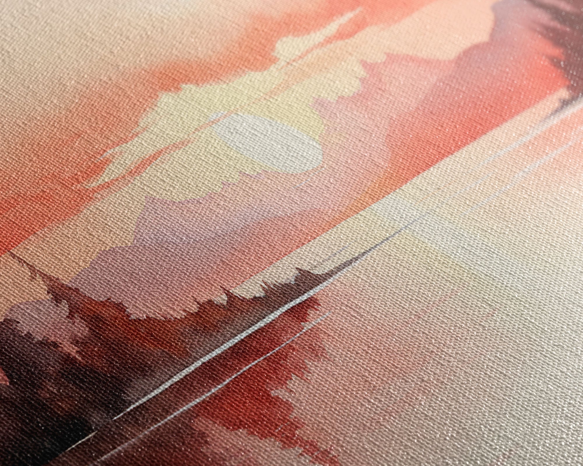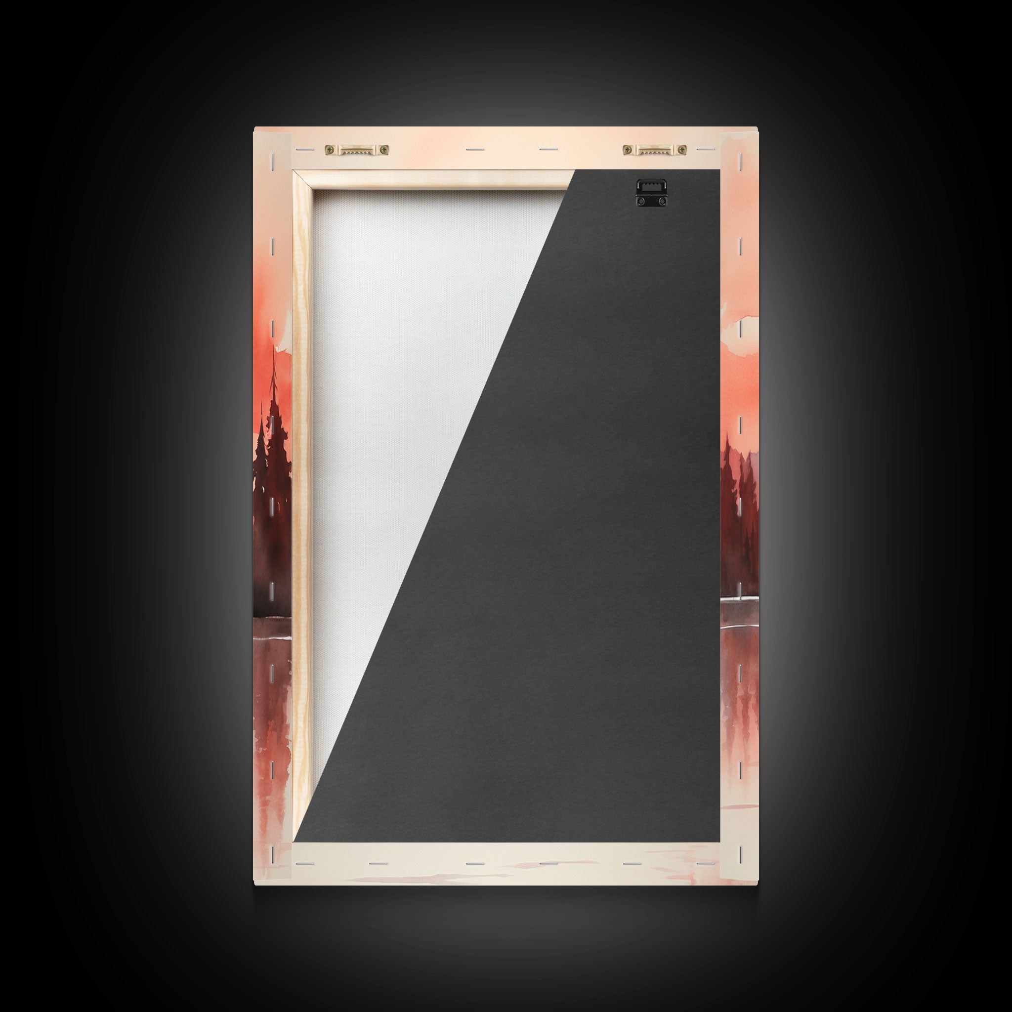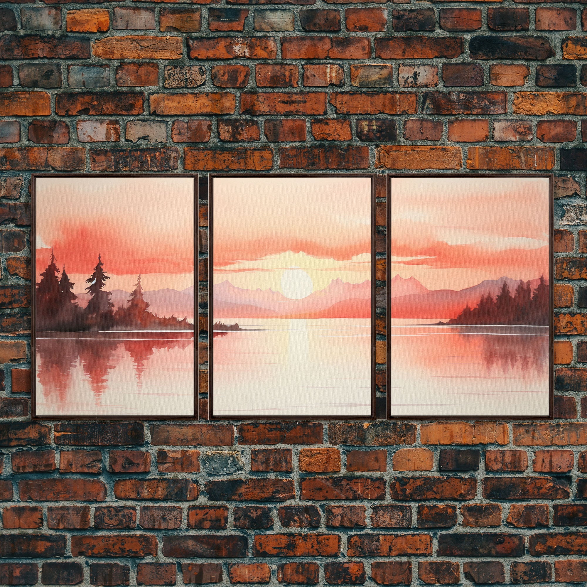 Beautiful Red Lake Sunset 3 Piece Framed Canvas Print Set, Above Sofa Art, Living Room Decor, Beautiful Wall Art, Watercolor Painting