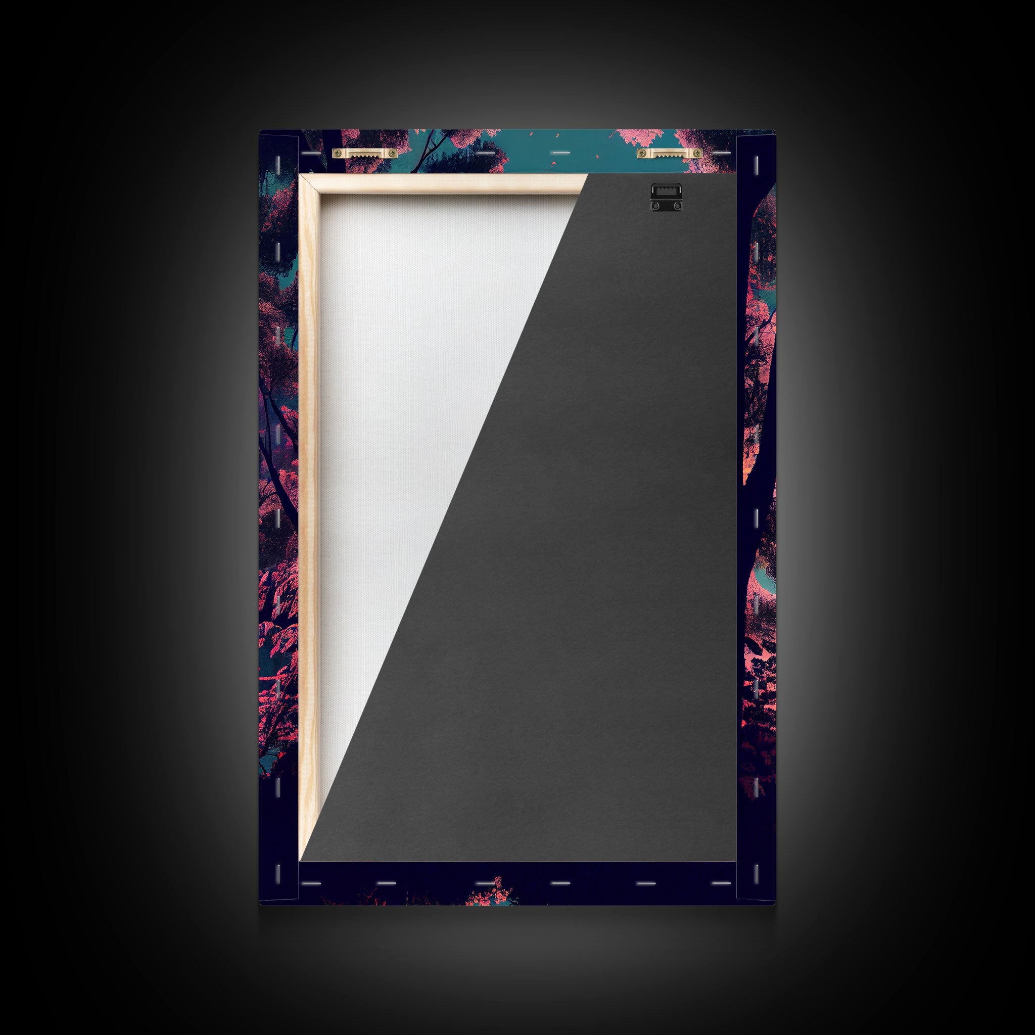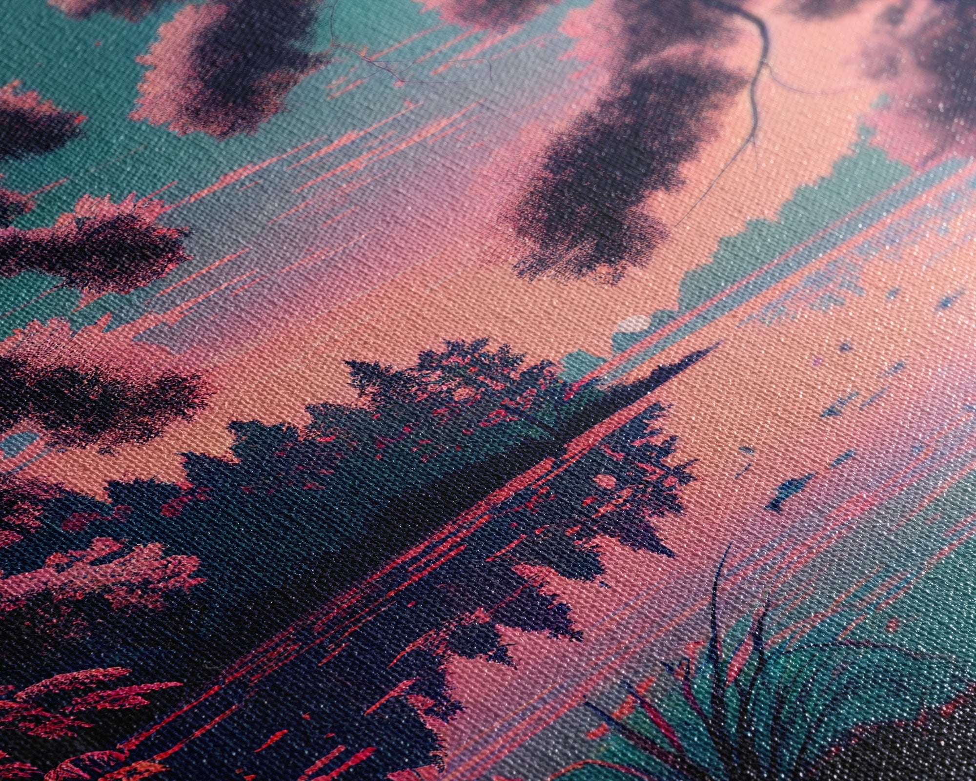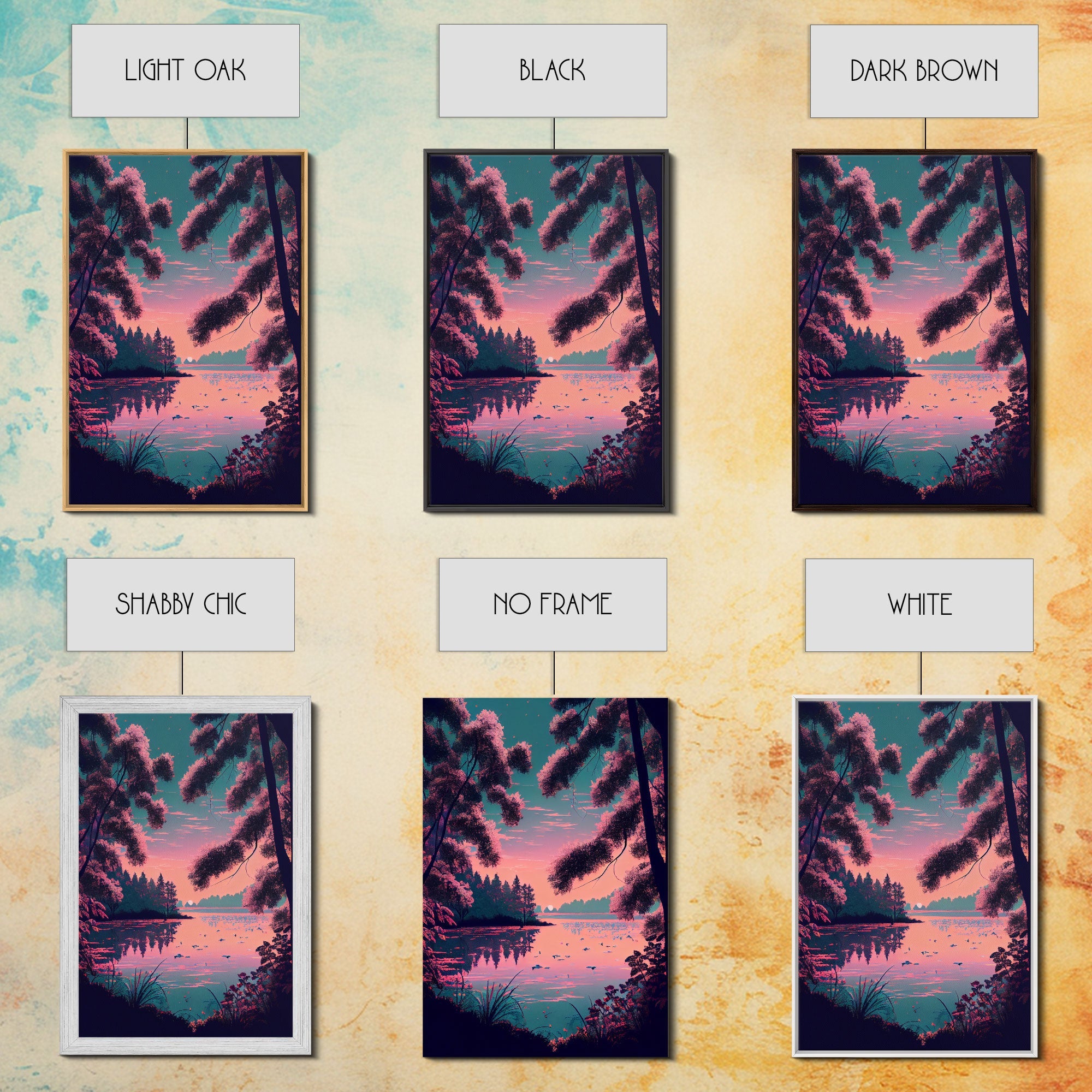 Beautiful Sunset over the lake, My Secret Spot, framed canvas print, Pinkwave retro style landscape art