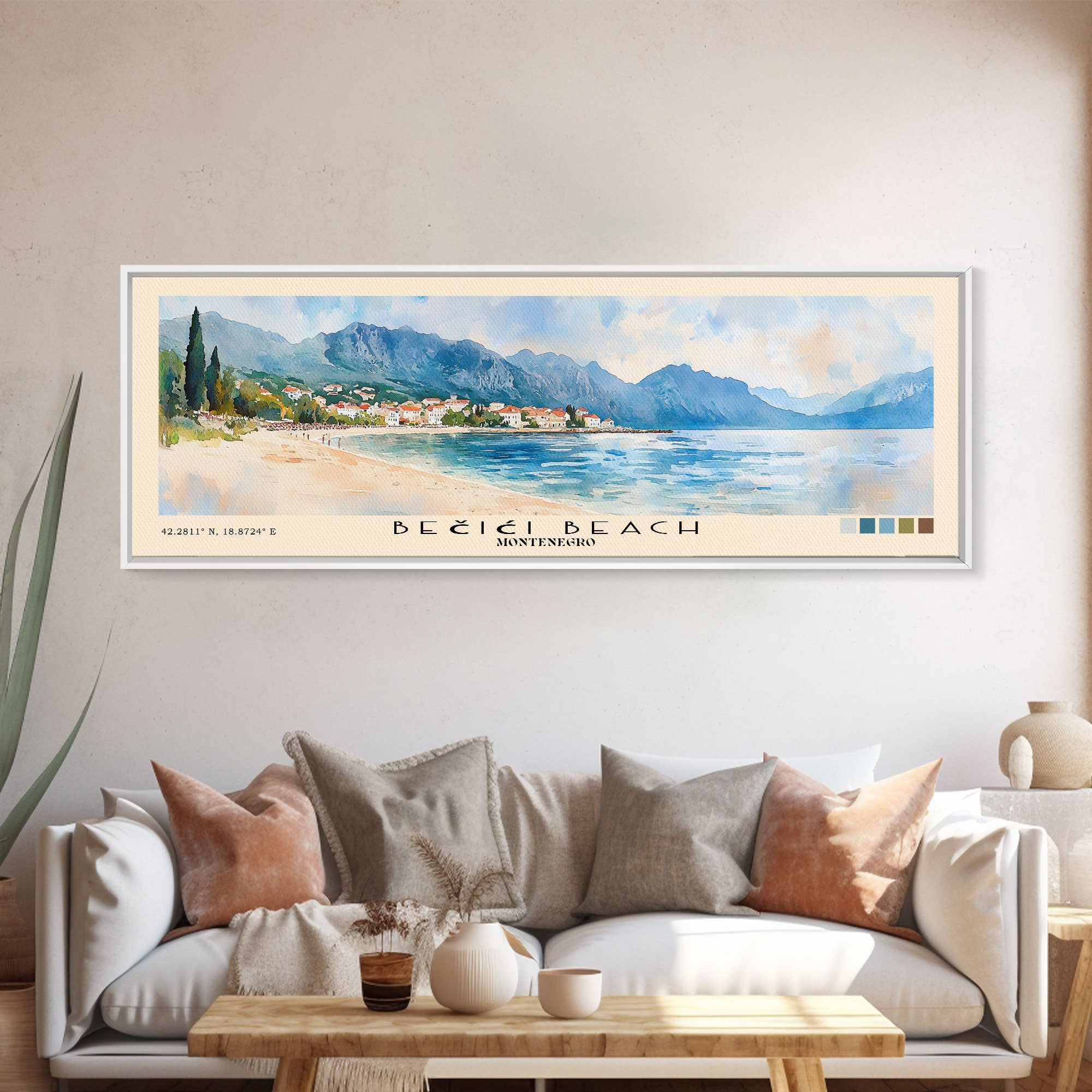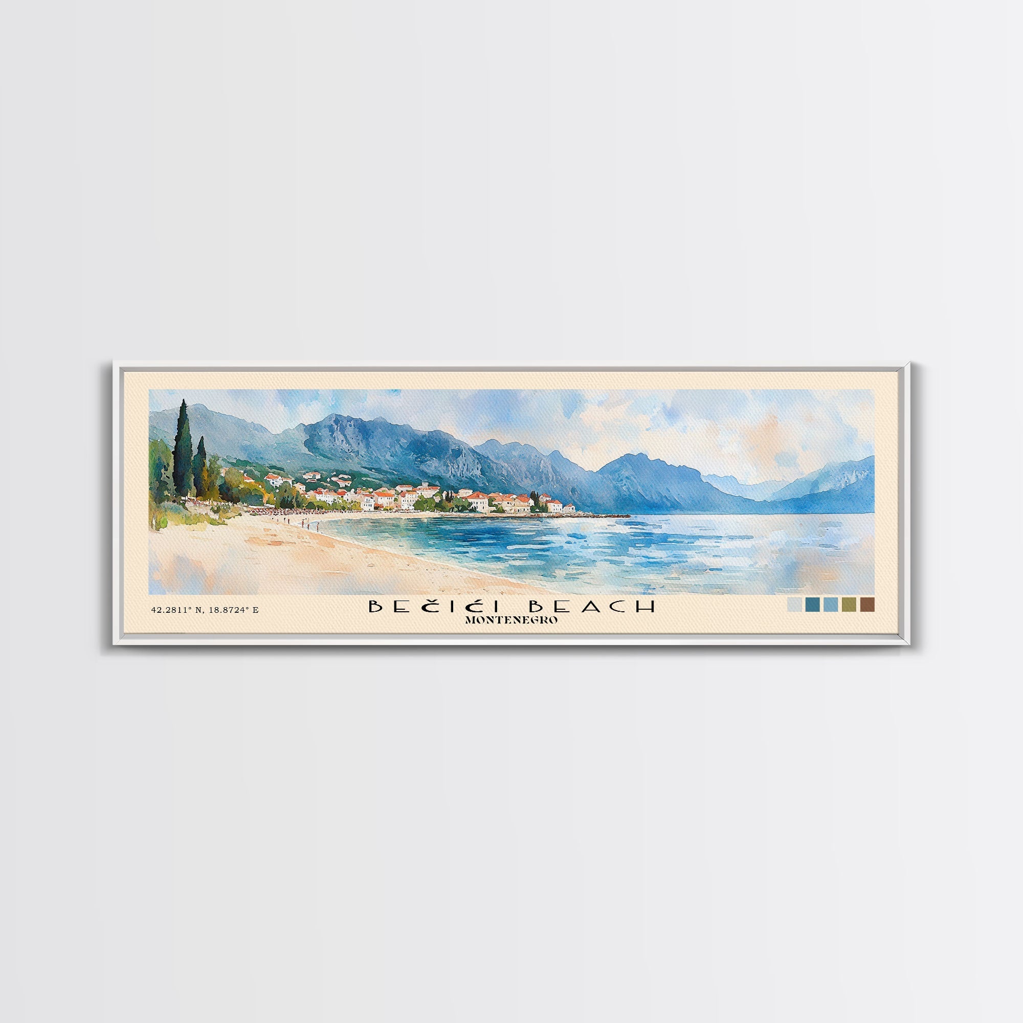 Bečići Beach, Montenegro Watercolor Print, Vacation Gift, Montenegro Wall Art, Beach Painting, Beach Decor, Large Wall Art, Wood Frame Art