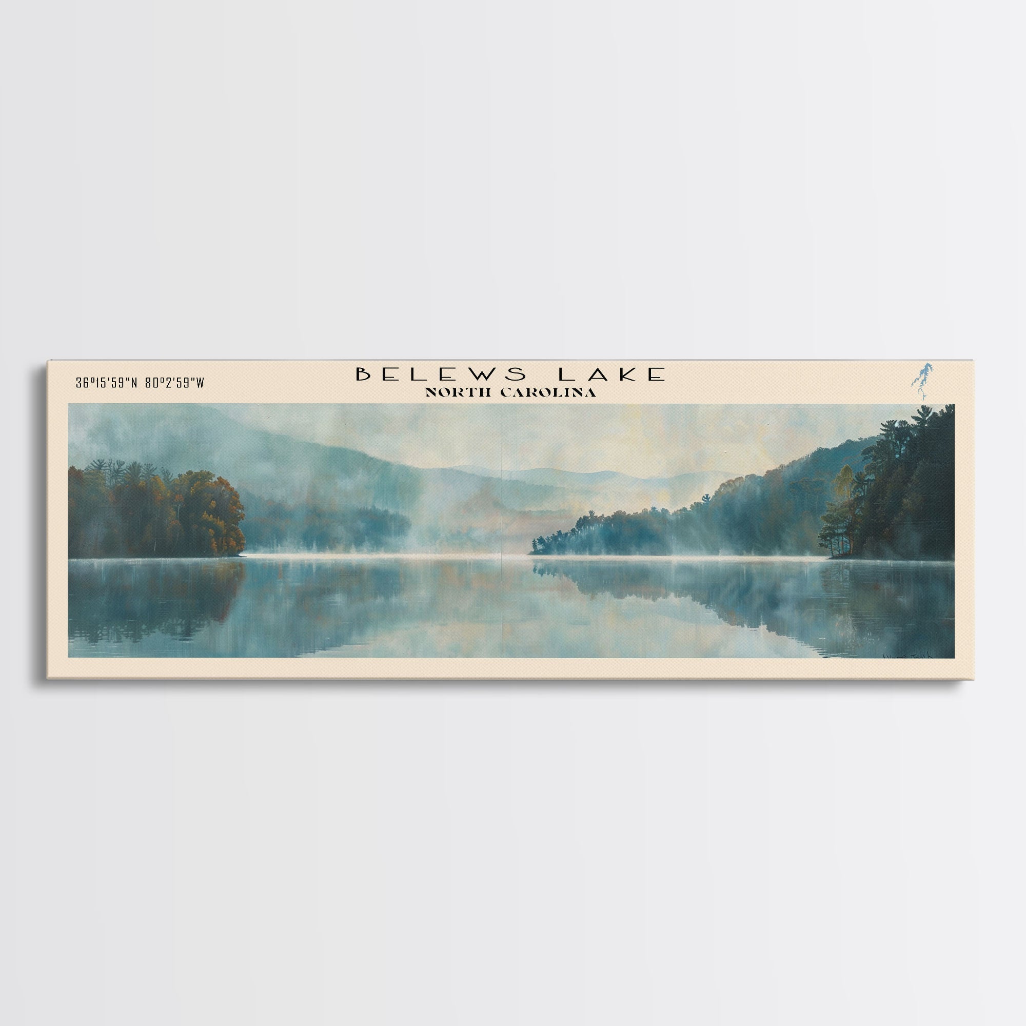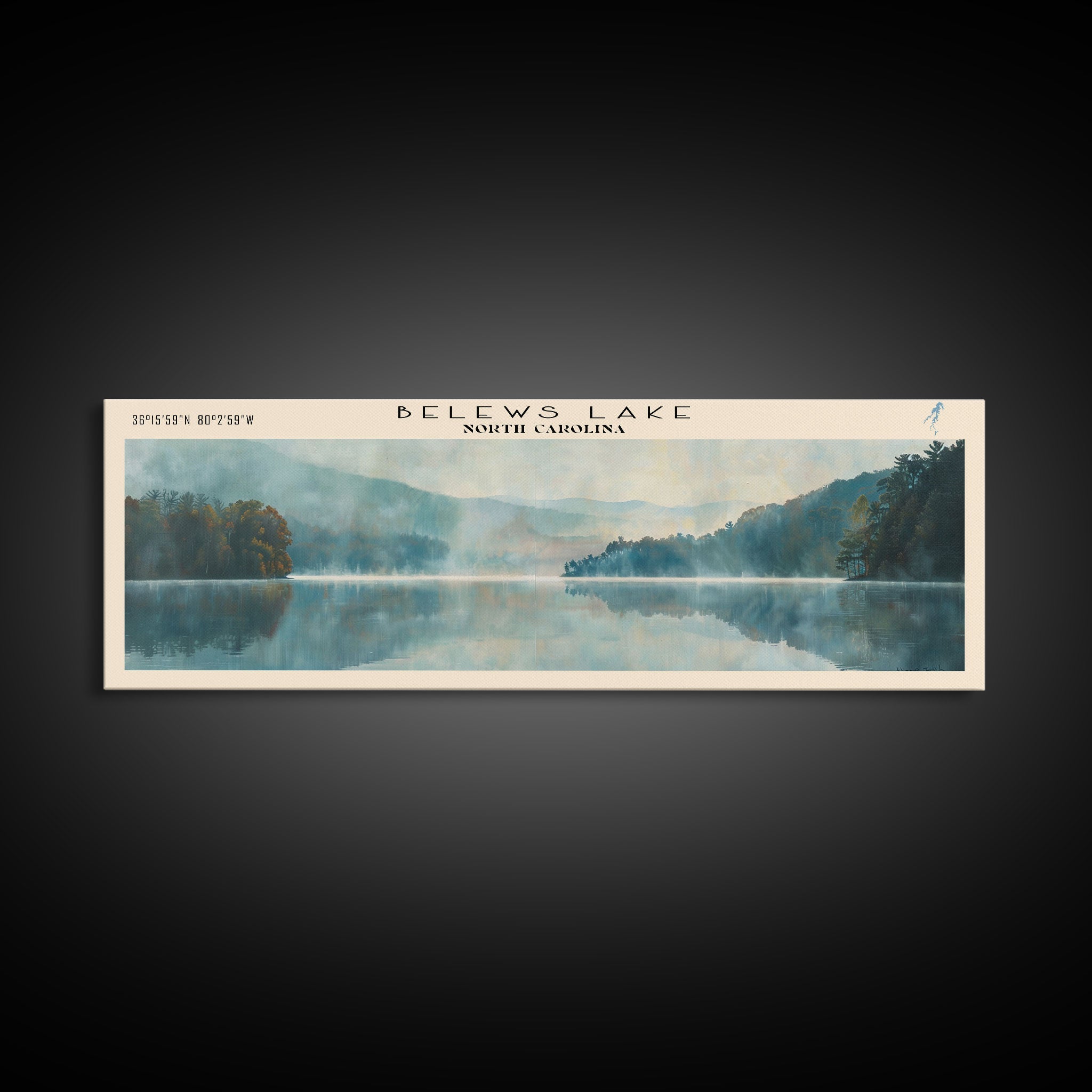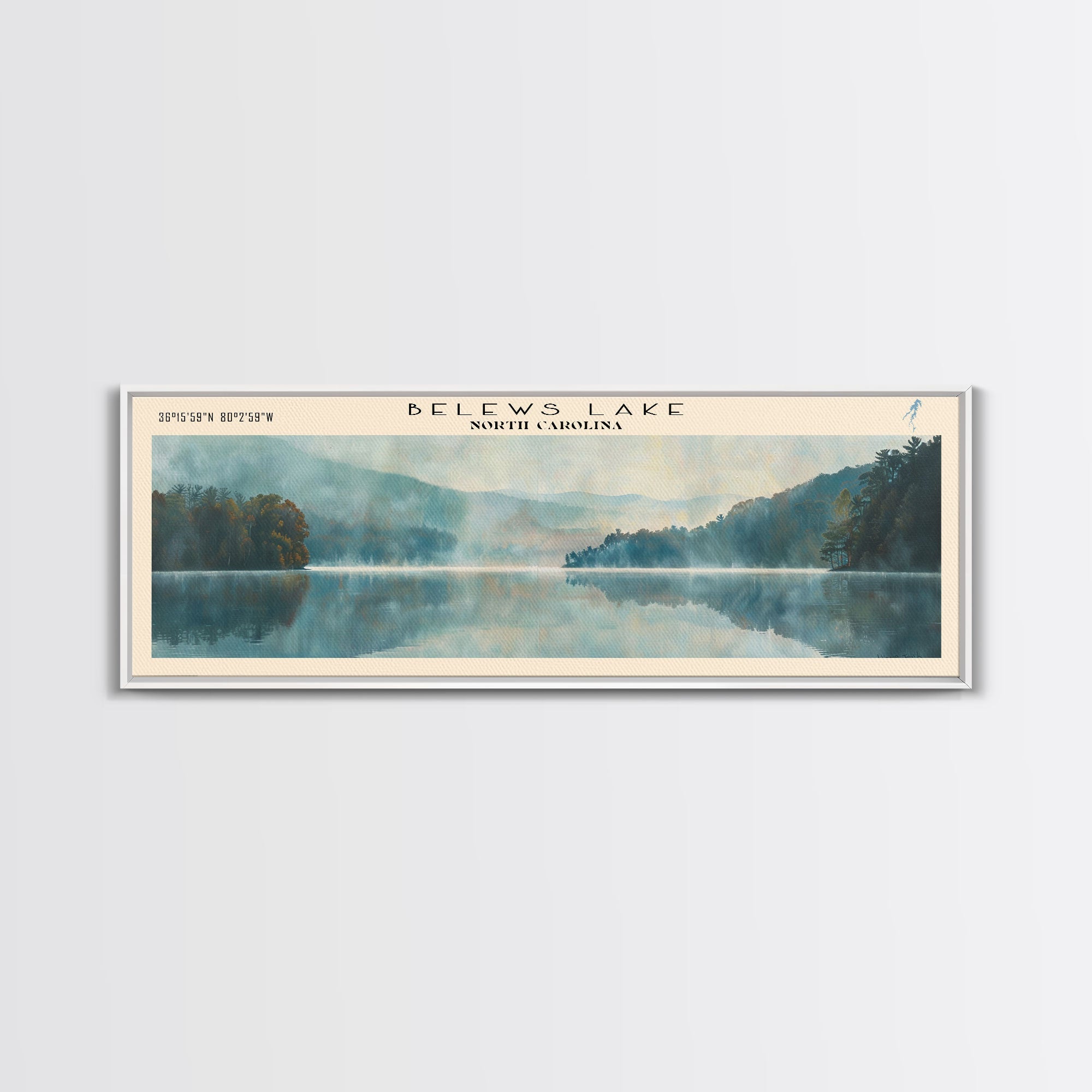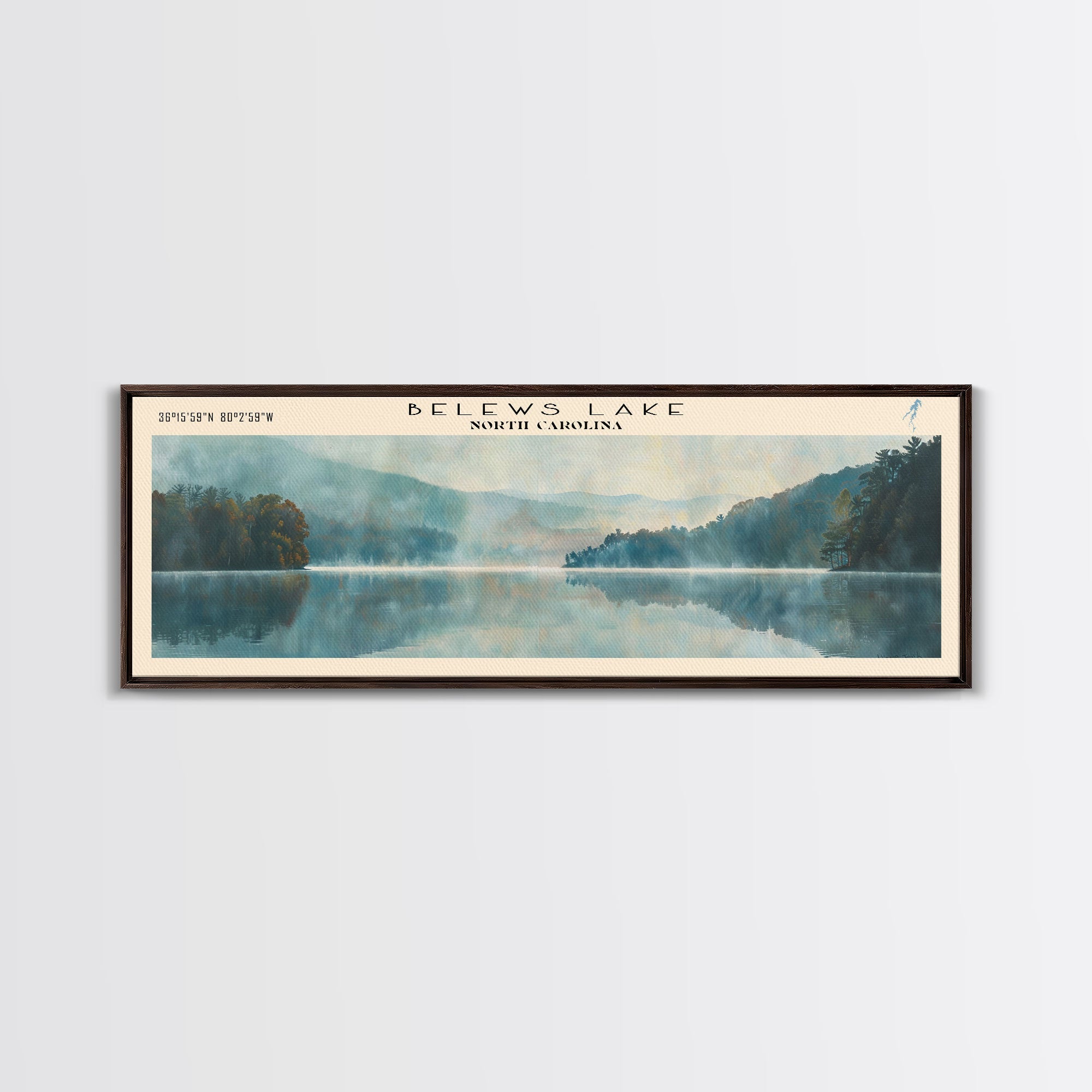 Belews Lake North Carolina Panoramic Framed Canvas Print, Lake House Decor, Scenic View, Travel Poster, Minimalist Art, Home Decor