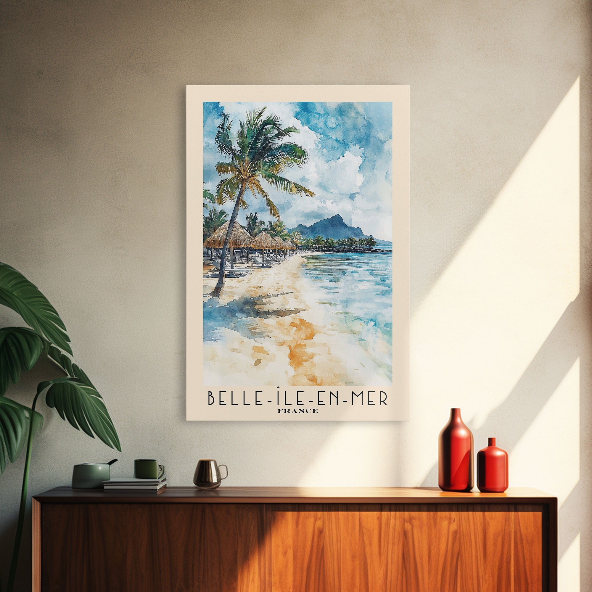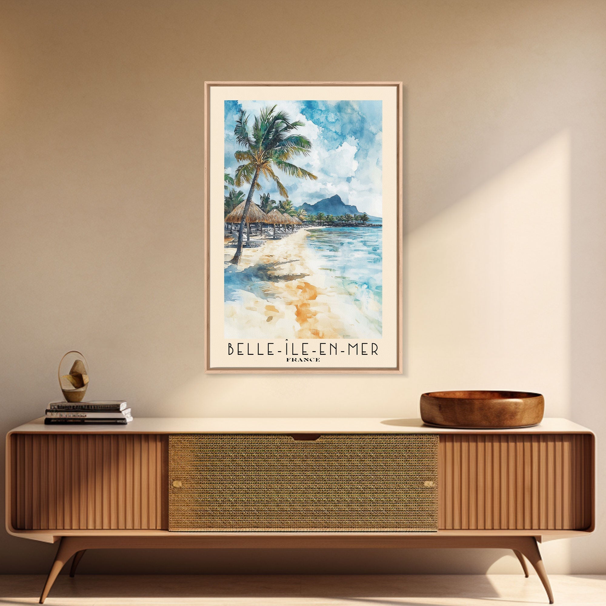 Belle-Île-en-Mer, France Watercolor Print, Vacation Gift, France Wall Art, Beach Painting, Beach Decor, Large Wall Art, Wood Frame Art