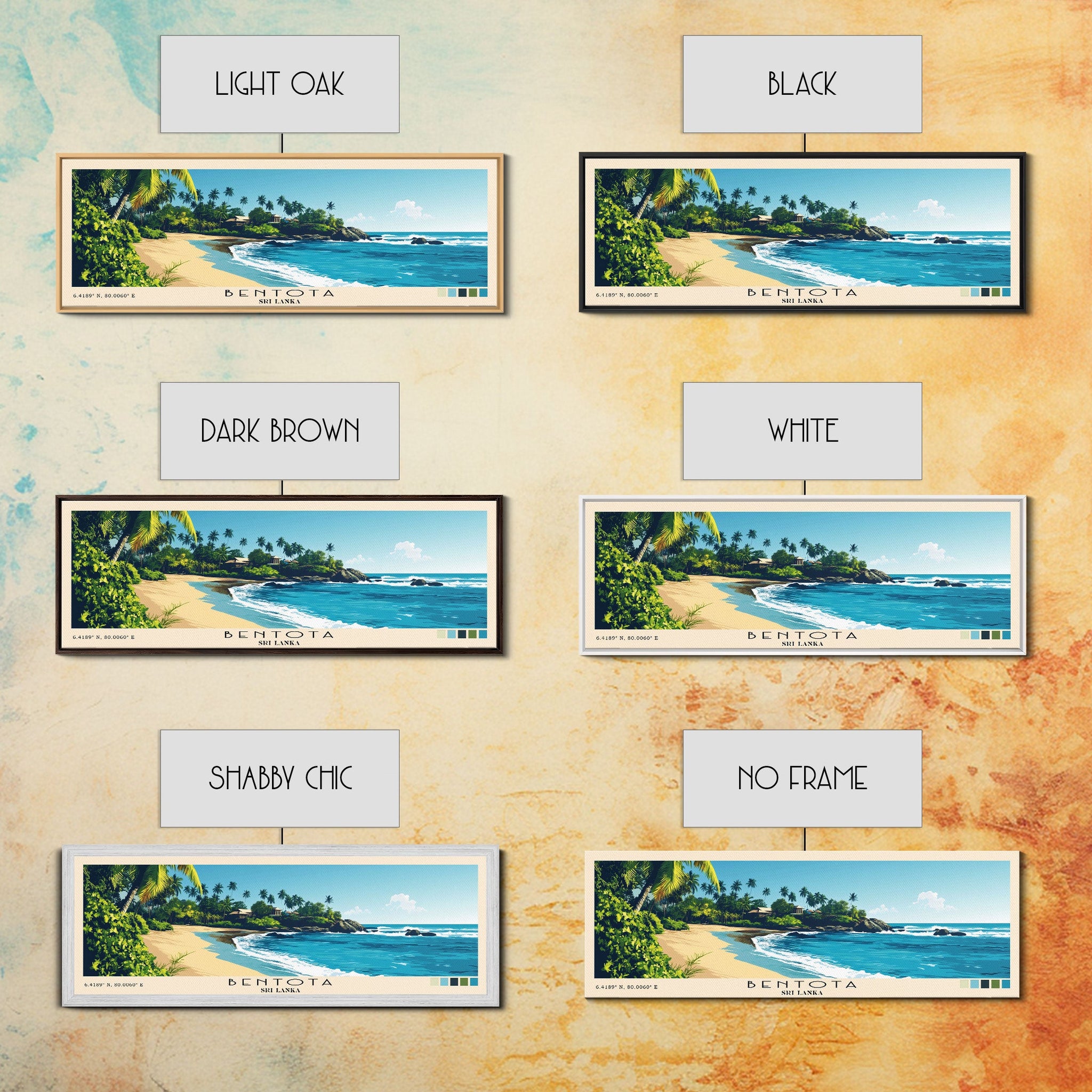 Bentota, Sri Lanka Panoramic Beach Print, Vacation Gift, Sri Lanka Wall Art, Framed Canvas Print, Framed Beach Painting