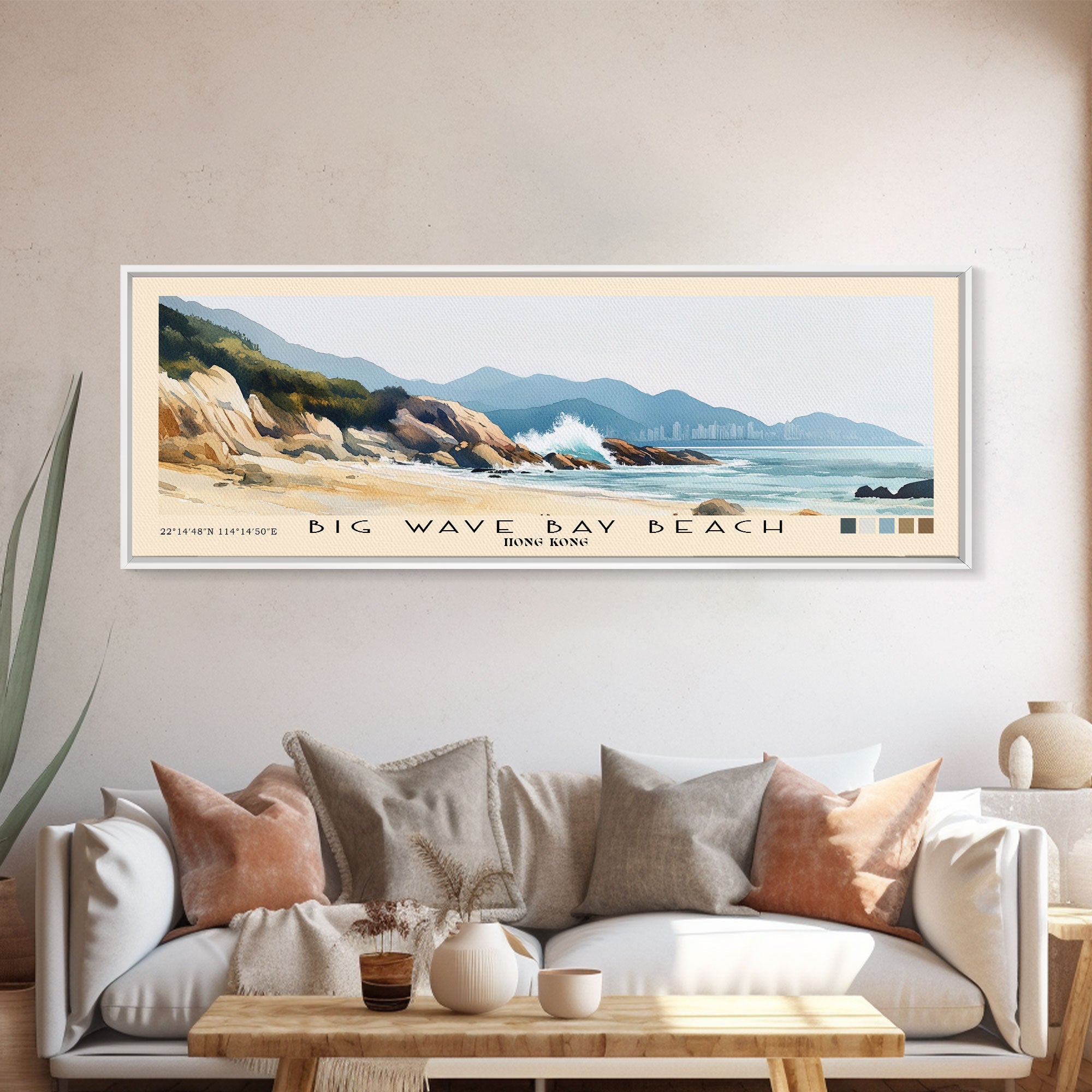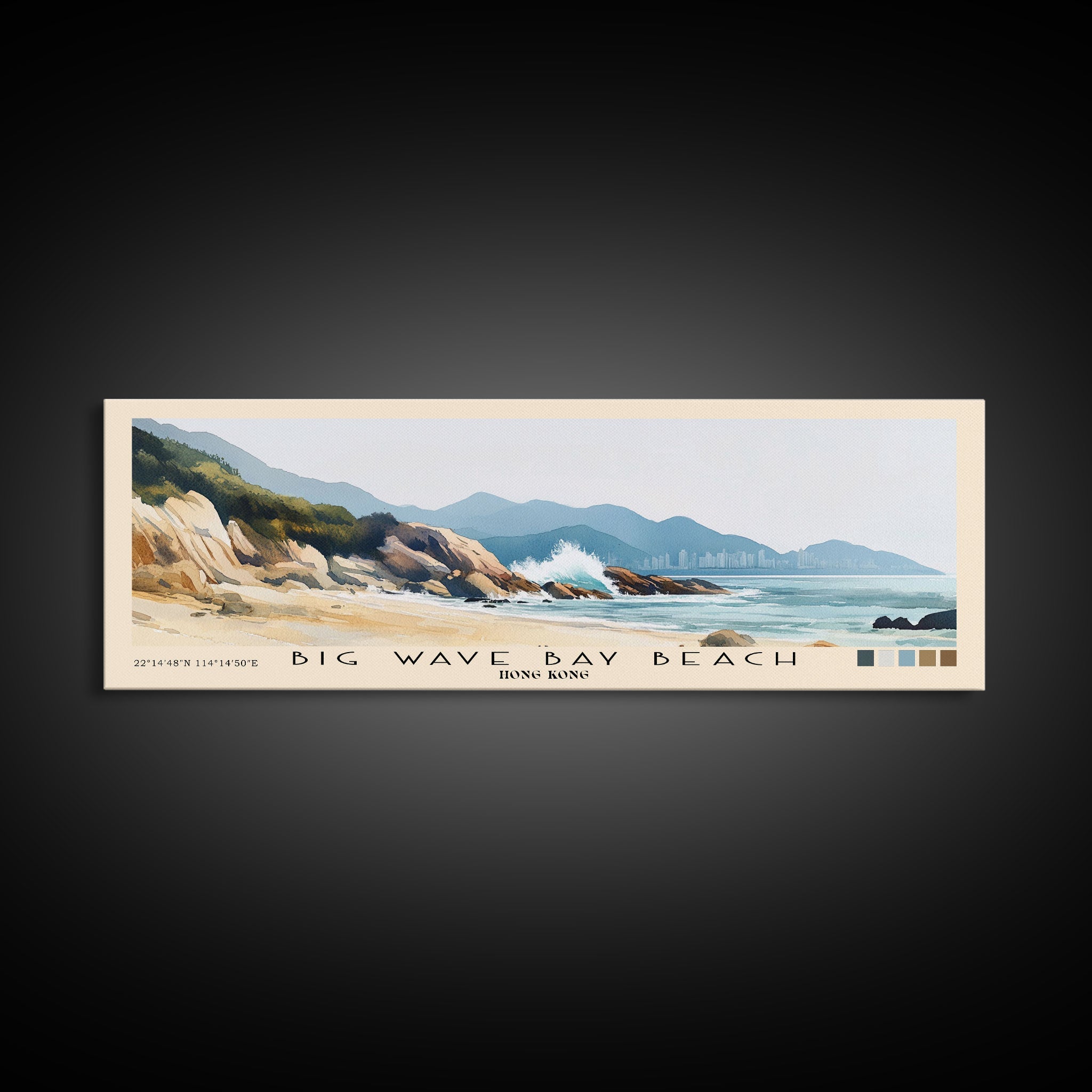 Big Wave Bay Beach, Hong Kong Watercolor Print, Vacation Gift, Hong Kong Wall Art, Beach Painting, Beach Decor, Large Wall Art, Wood Frame Art