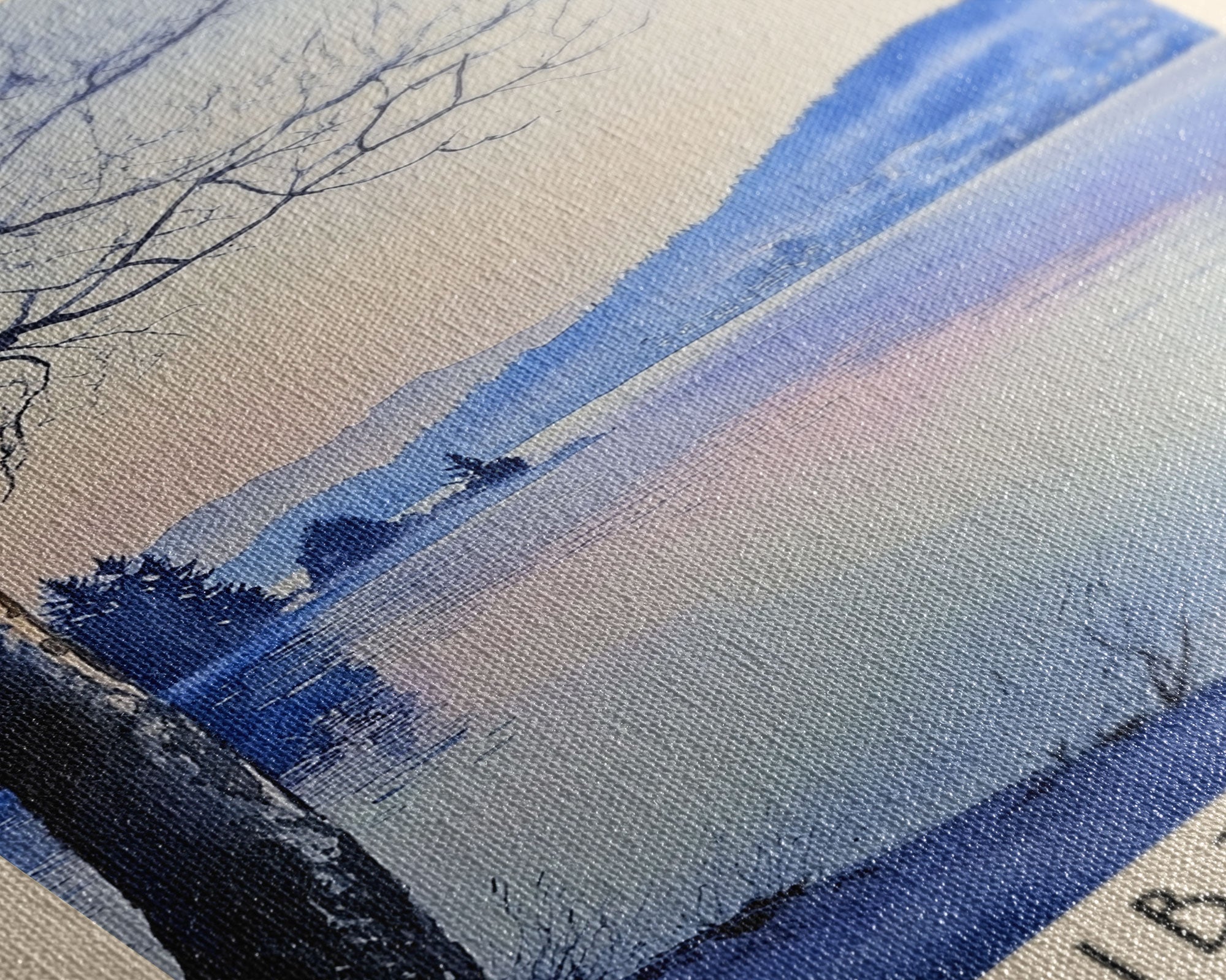 Most of our canvases are made in the USA, with the exception of canvases ordered with the light oak unstained frames, and any large canvases (24x48, 30x60, 16x48 and 20x60) ordered WITH a frame. These are temporarily made in and shipped from Europe, while we try to find a more consistent supplier in the USA.