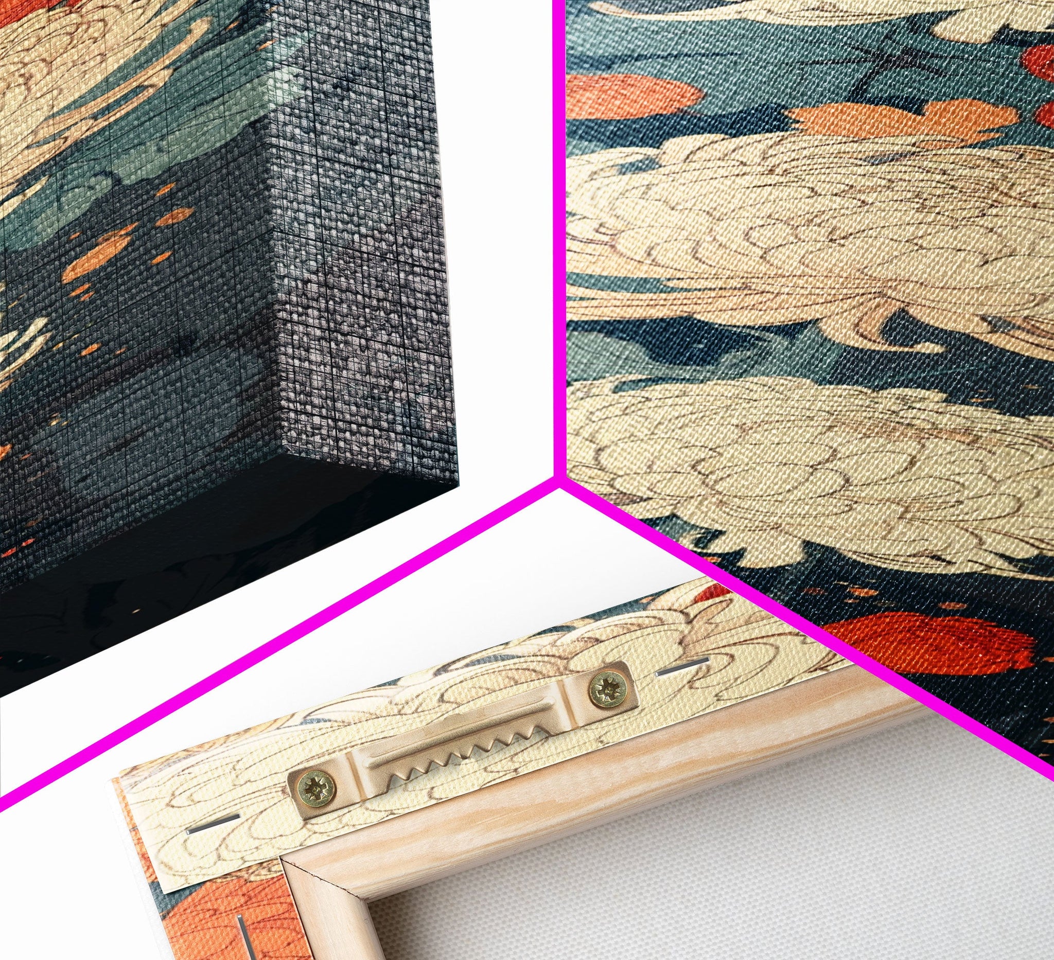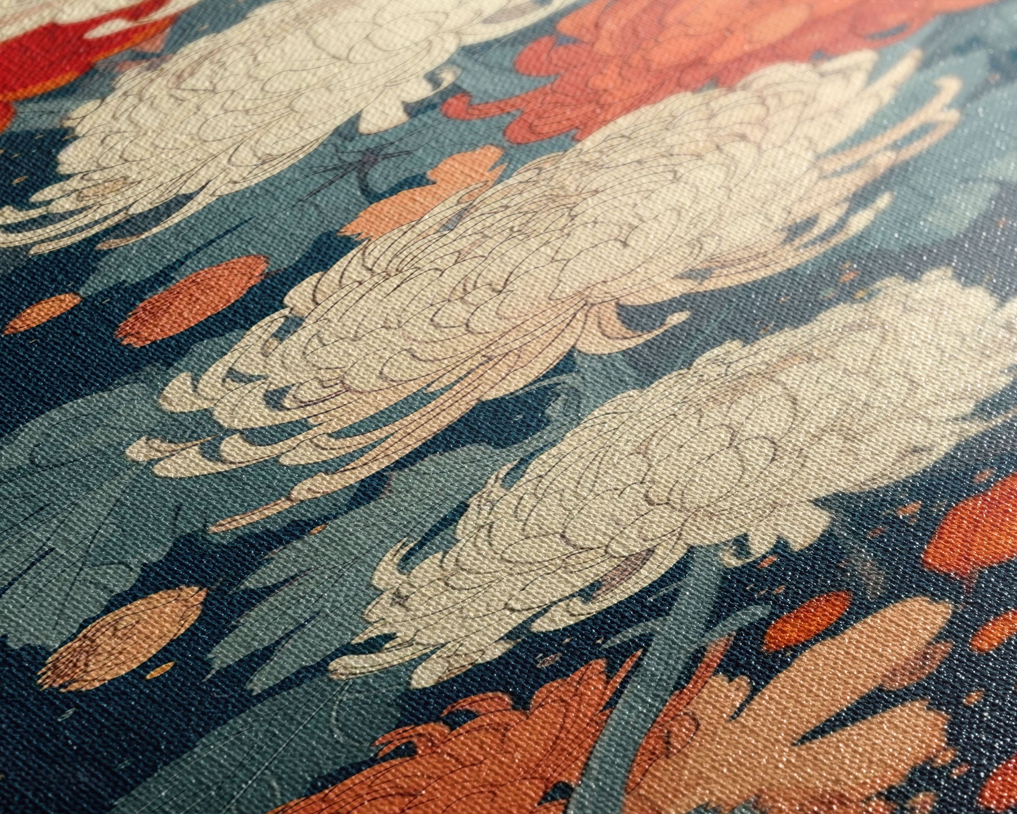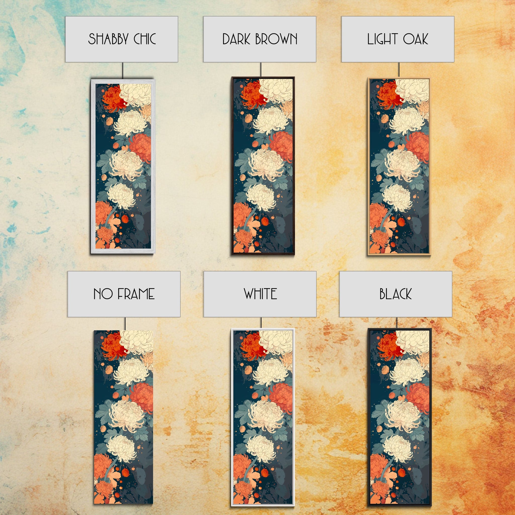 Blooming Chrysanthemums in Rich Autumn Colors - Skinny Art, Japanese Wall Decor, Framed Canvas Print, Ukiyo-e Style
