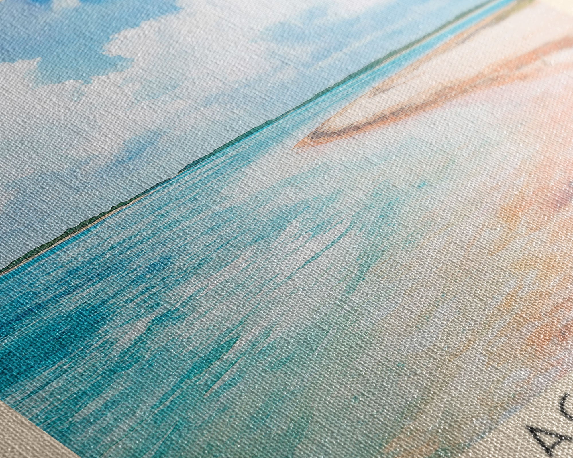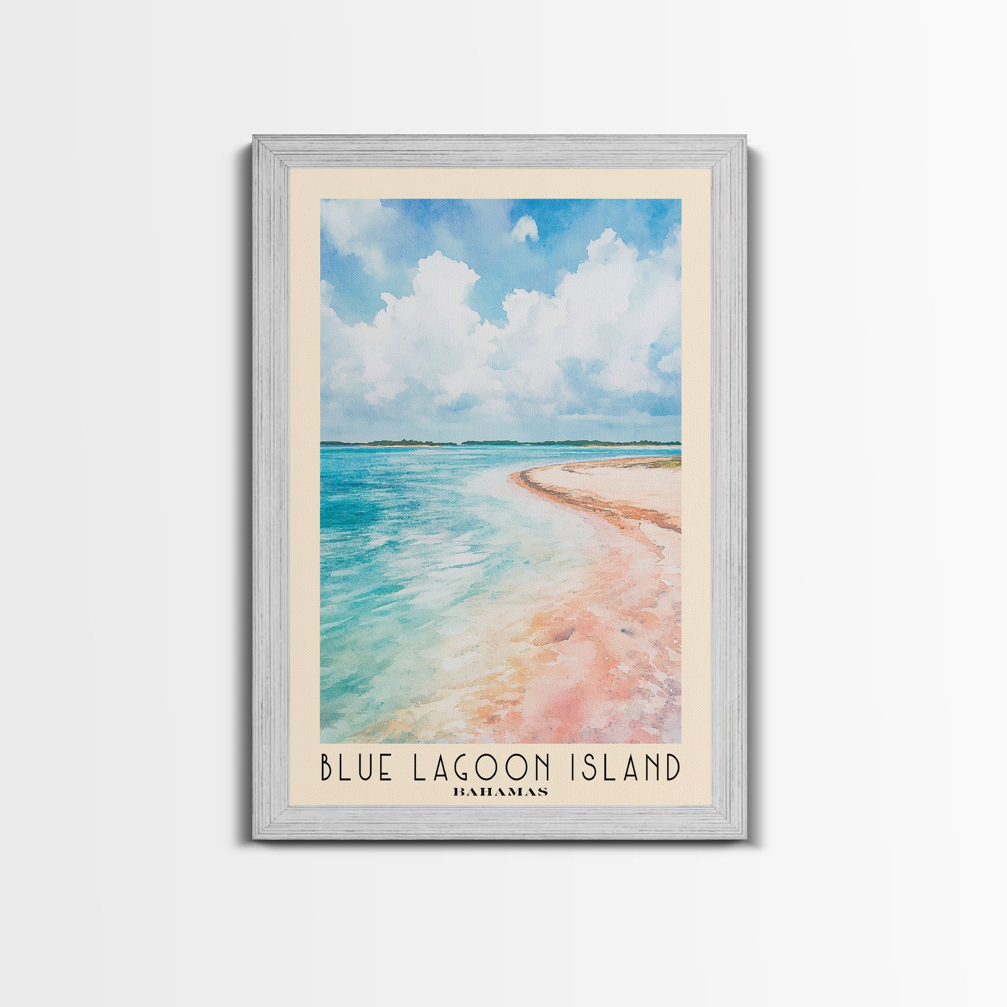 Blue Lagoon Island, Bahamas Watercolor Print, Vacation Gift, Bahamas Wall Art, Beach Painting, Beach Decor, Large Wall Art, Wood Frame Art