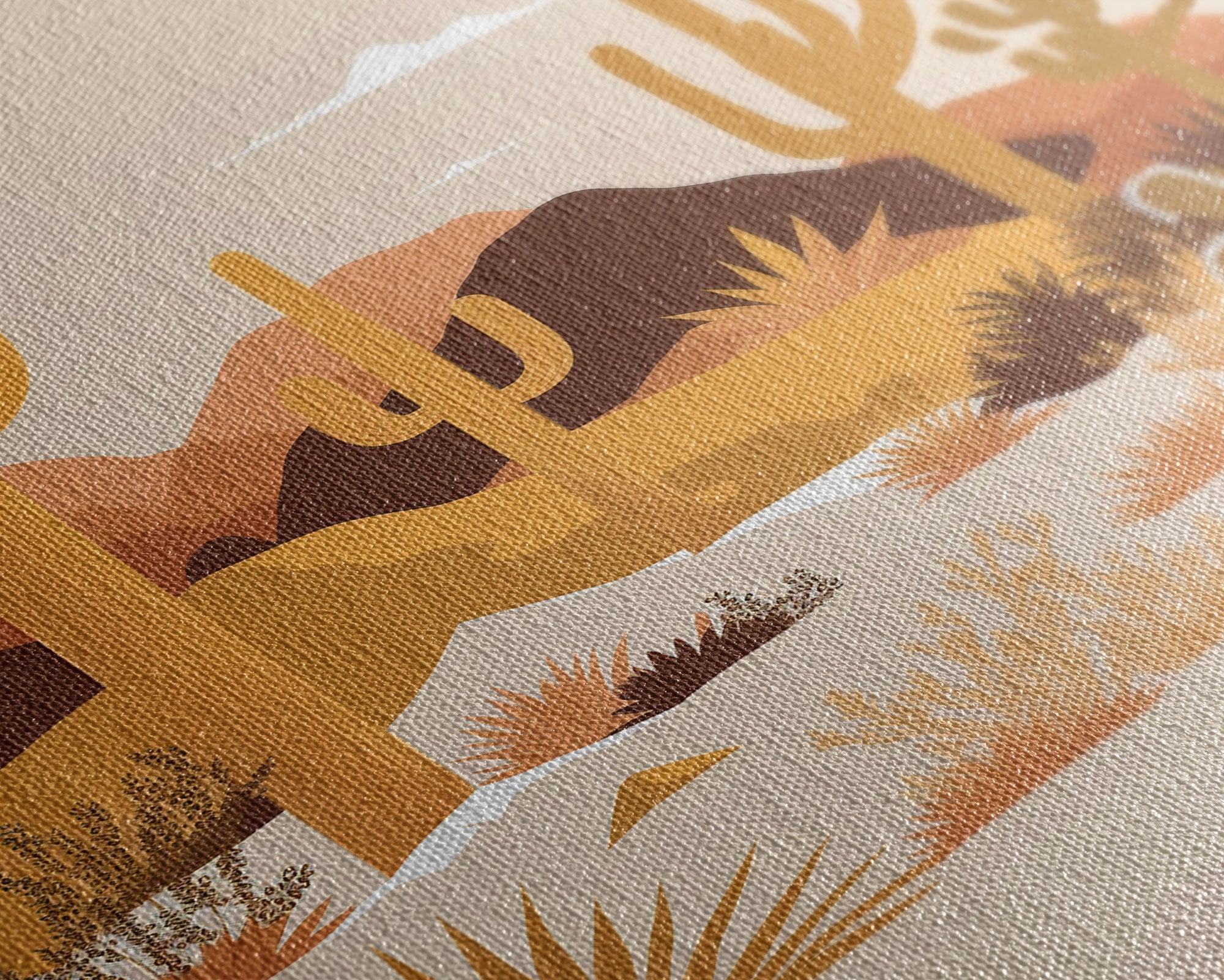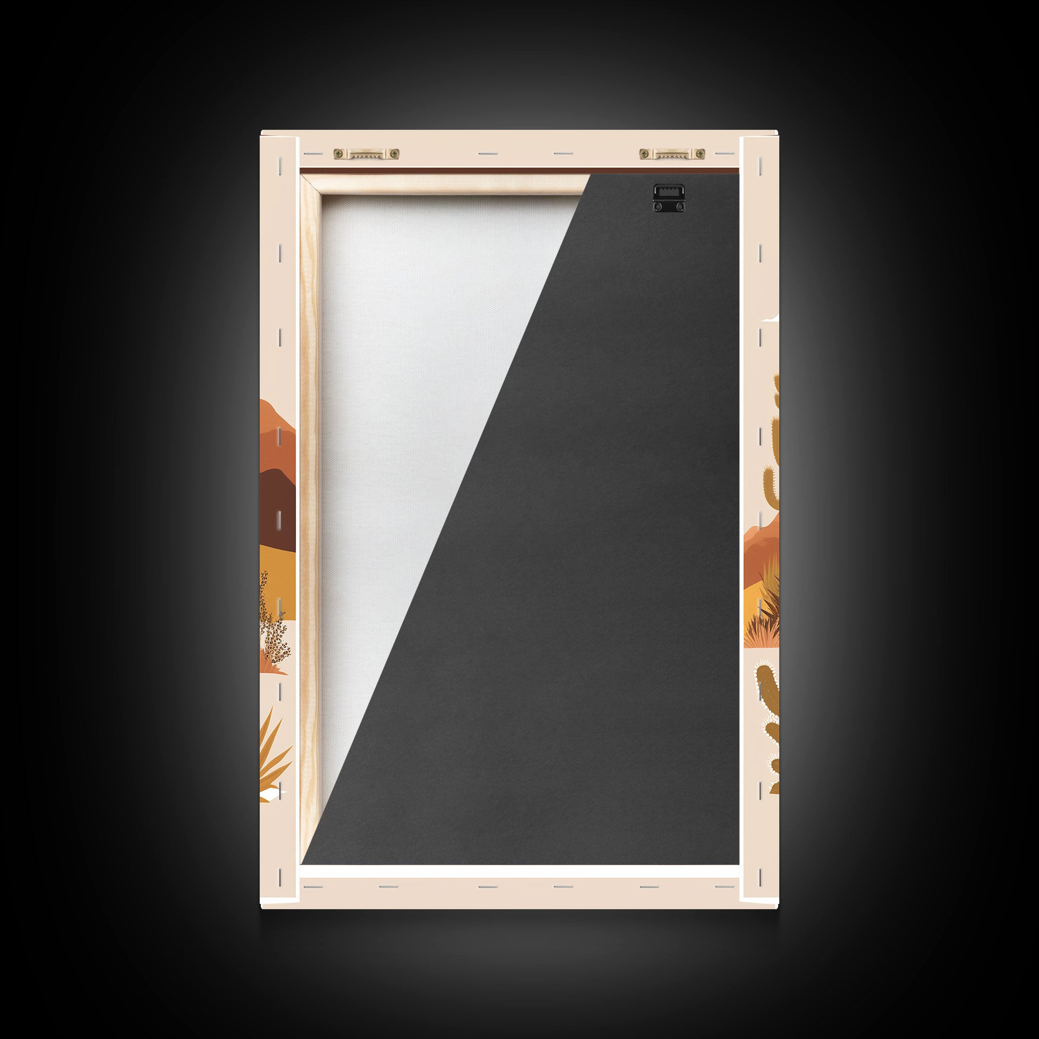 Boho Style Desert Art, Framed Canvas Print, Pueblo Style Cactus and Desert Landscape Art