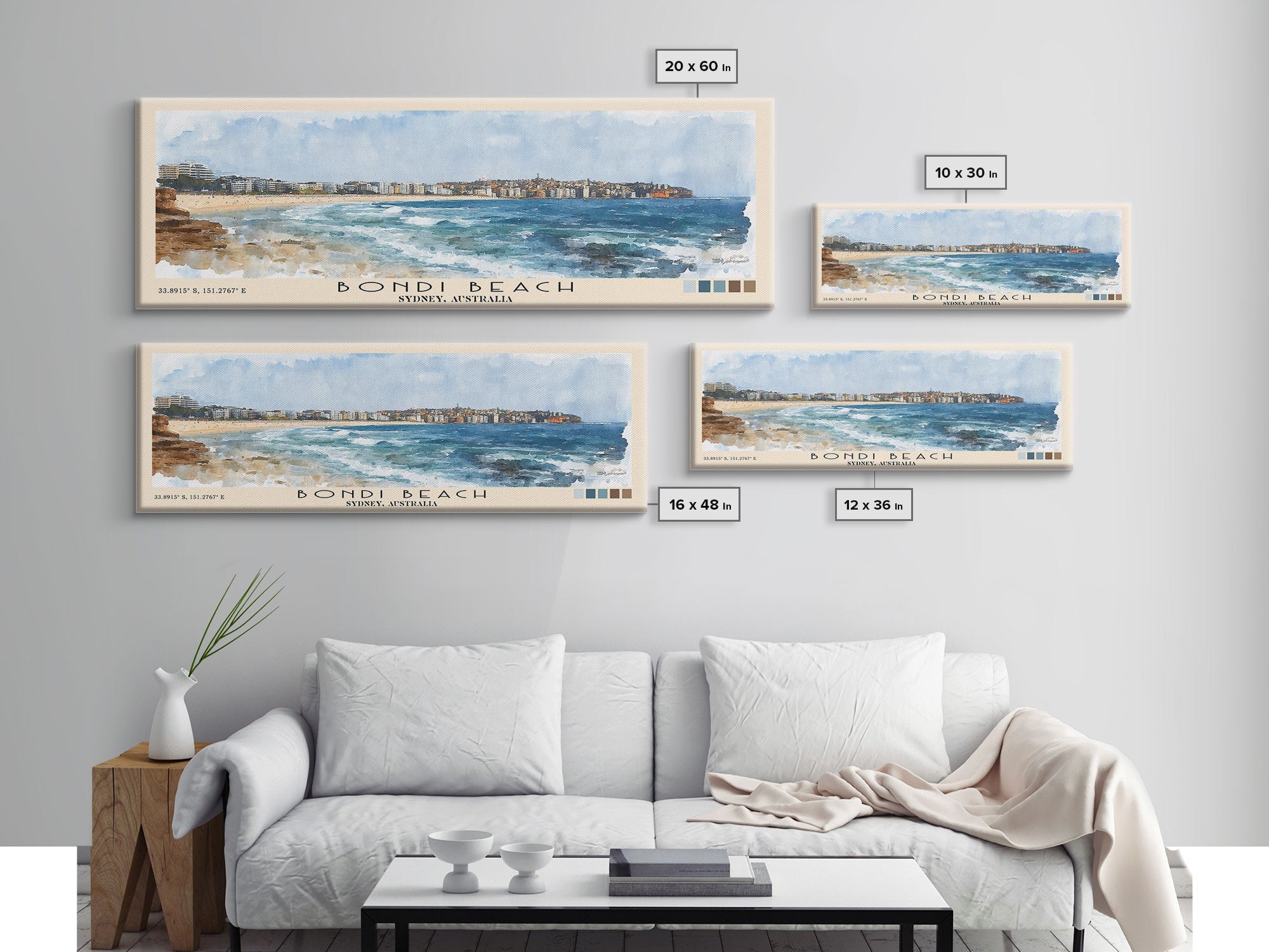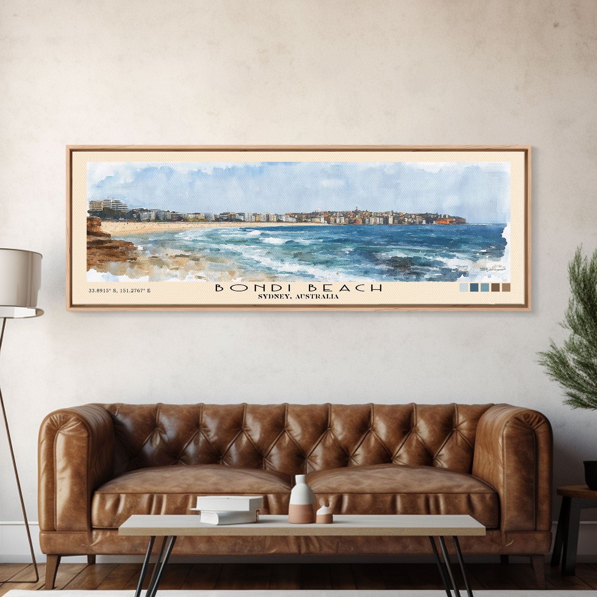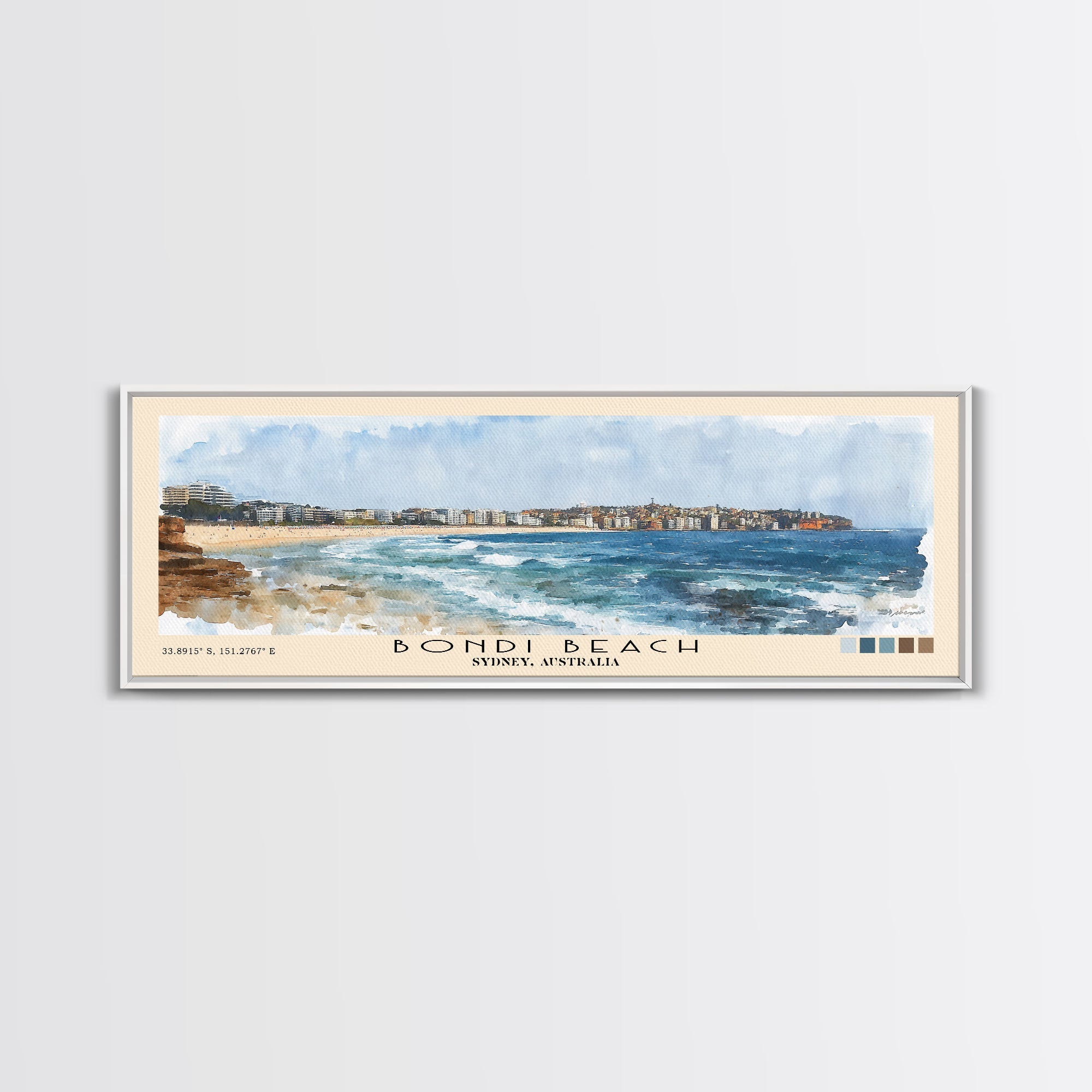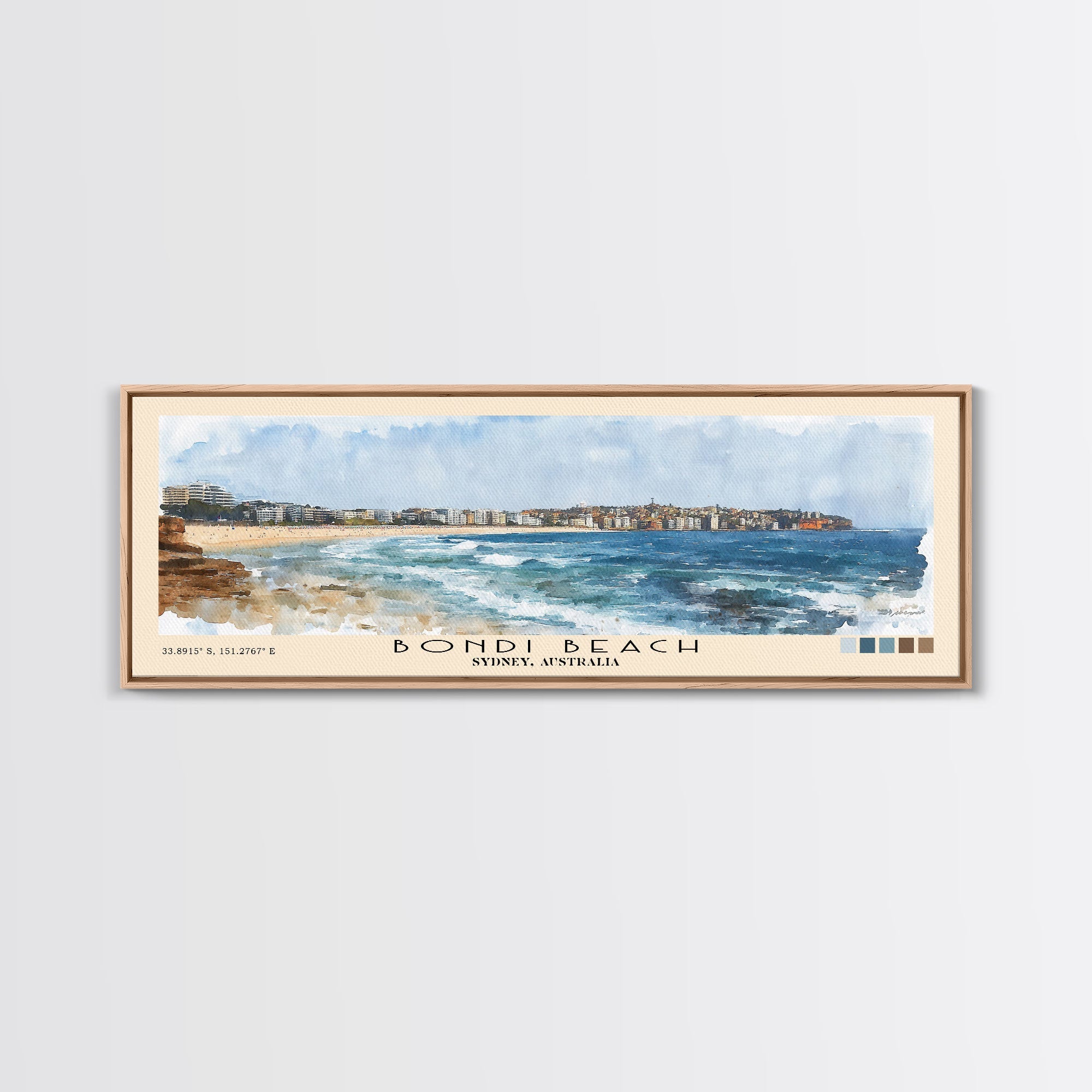 Bondi Beach, Sydney, Australia Watercolor Print, Vacation Gift, Sydney, Australia Wall Art, Beach Painting, Beach Decor, Large Wall Art, Wood Frame Art