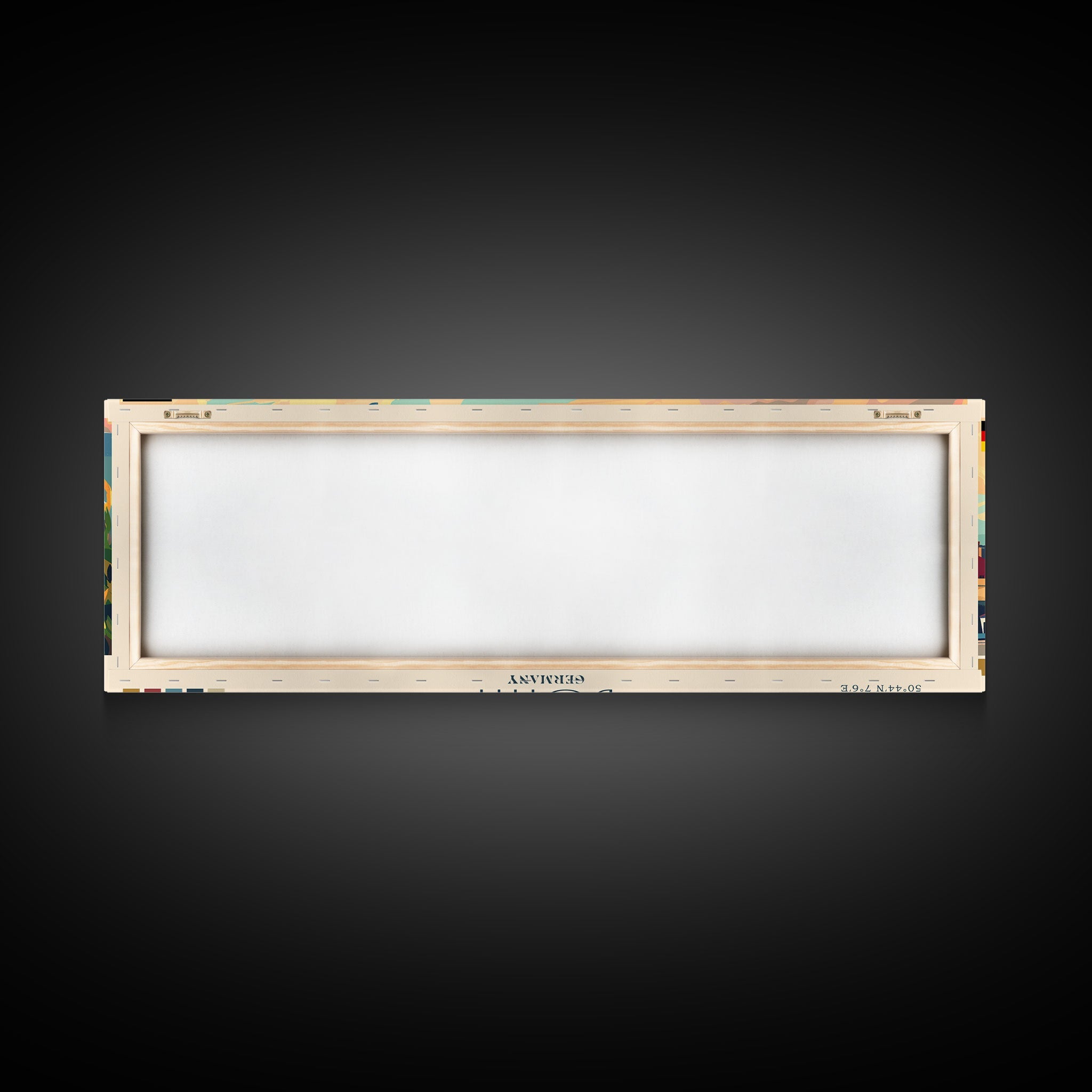 Most of our canvases are made in the USA, with the exception of canvases ordered with the light oak unstained frames, and any large canvases (24x48, 30x60, 16x48 and 20x60) ordered WITH a frame. These are temporarily made in and shipped from Europe, while we try to find a more consistent supplier in the USA.