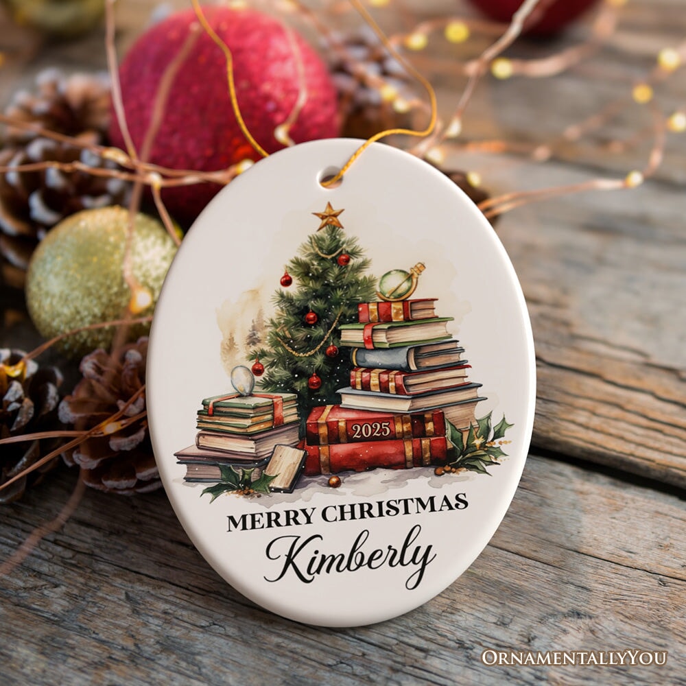 Book Lovers Christmas Tree Vintage Style Personalized Ornament