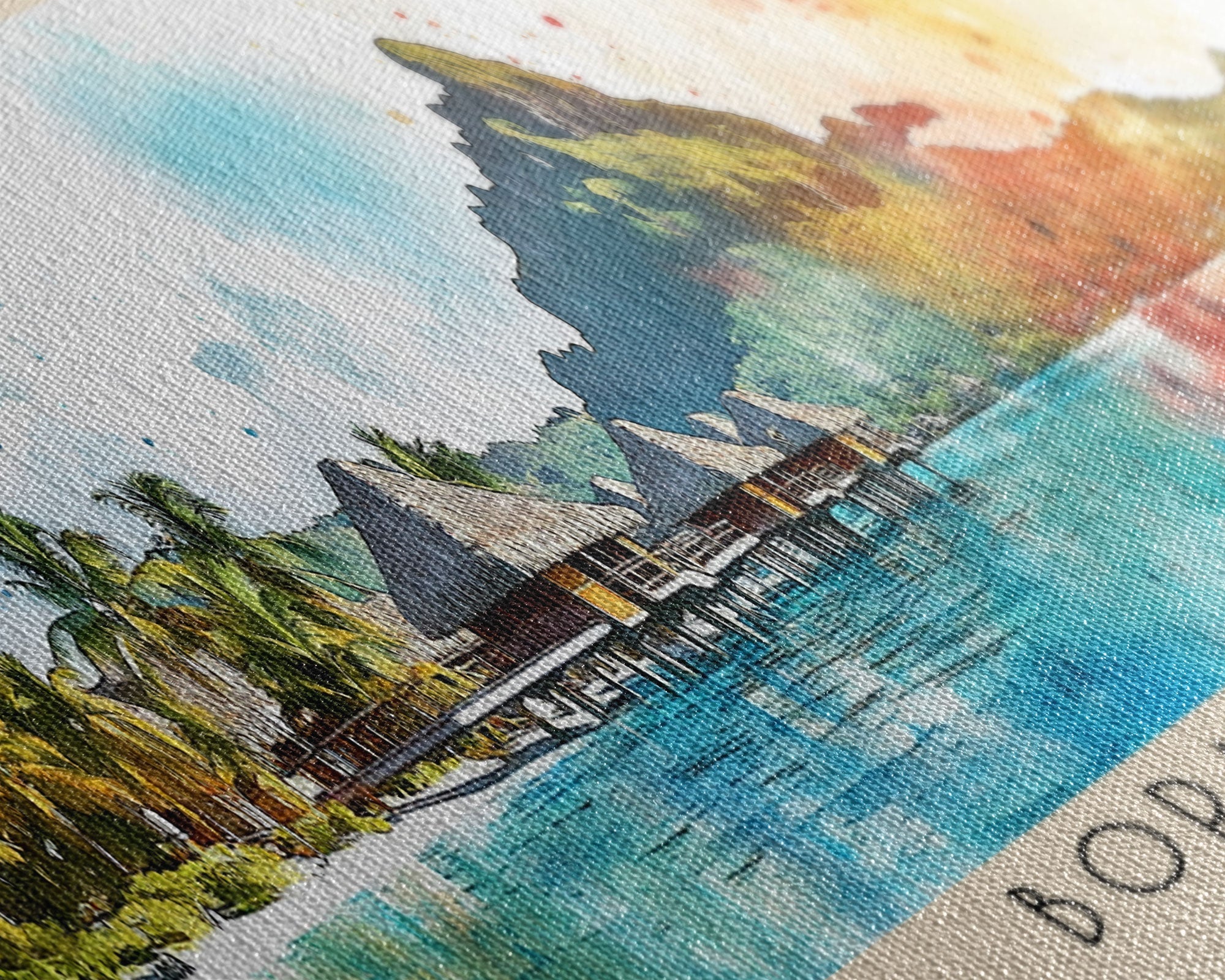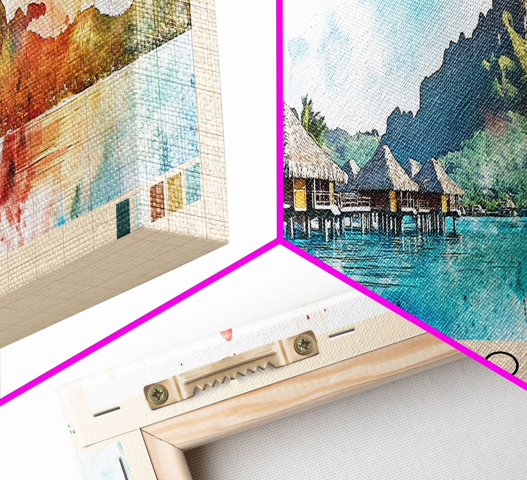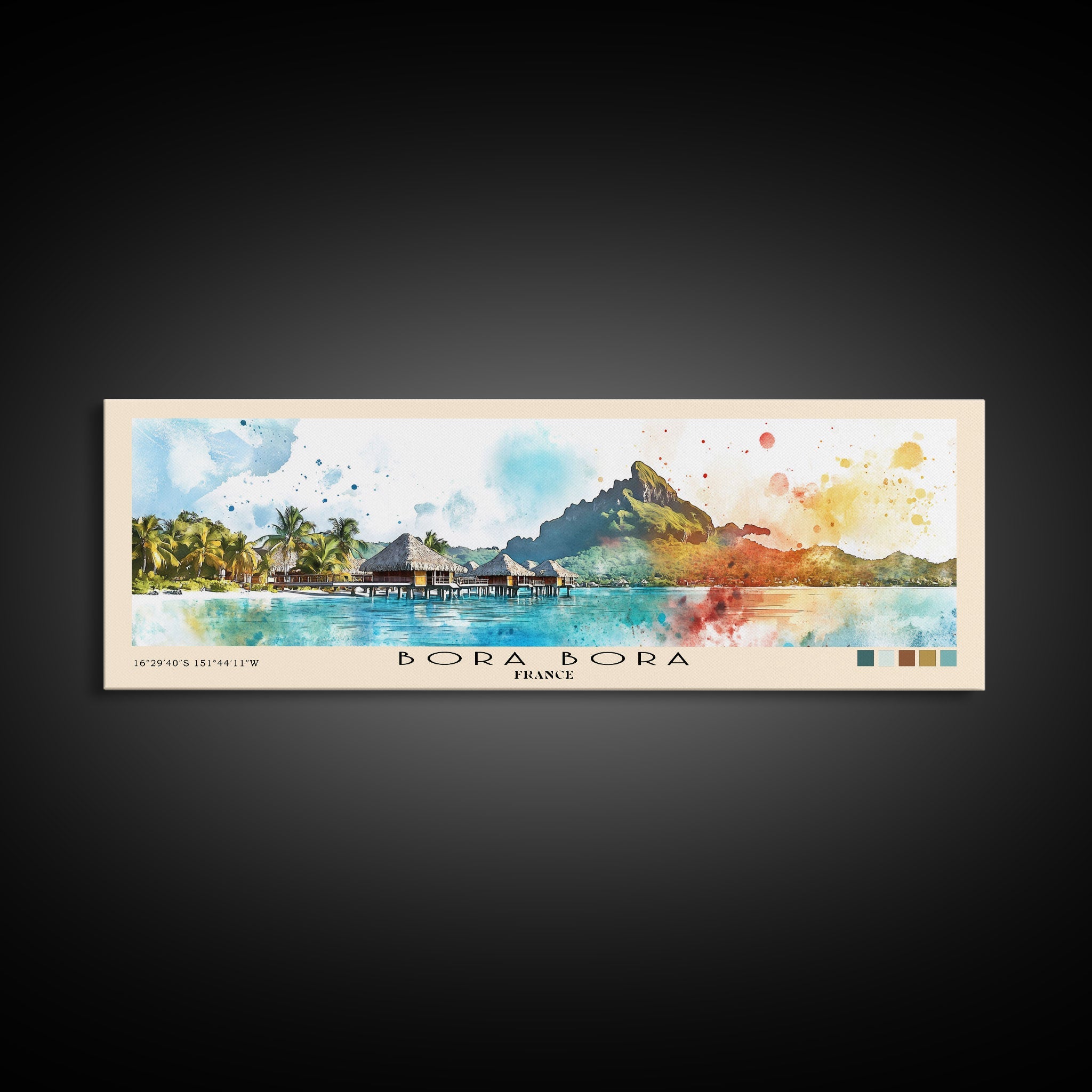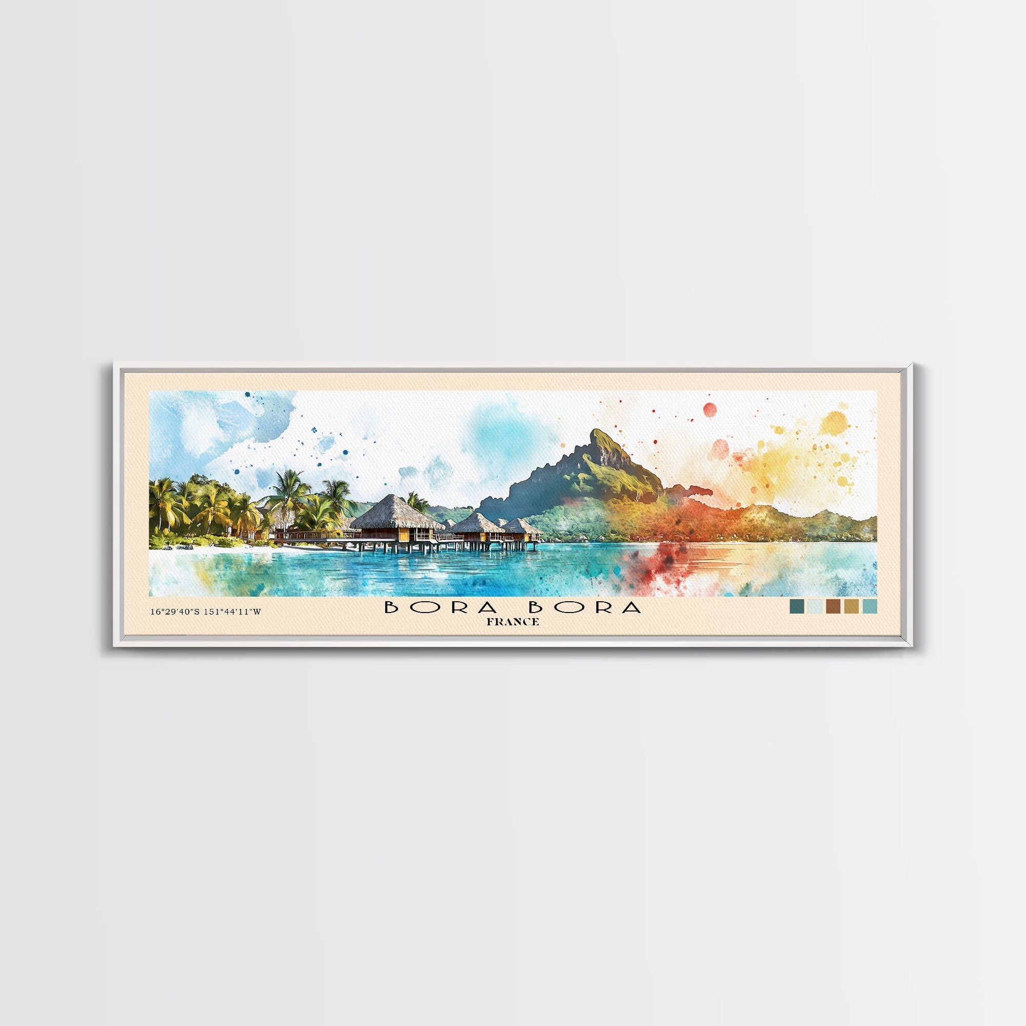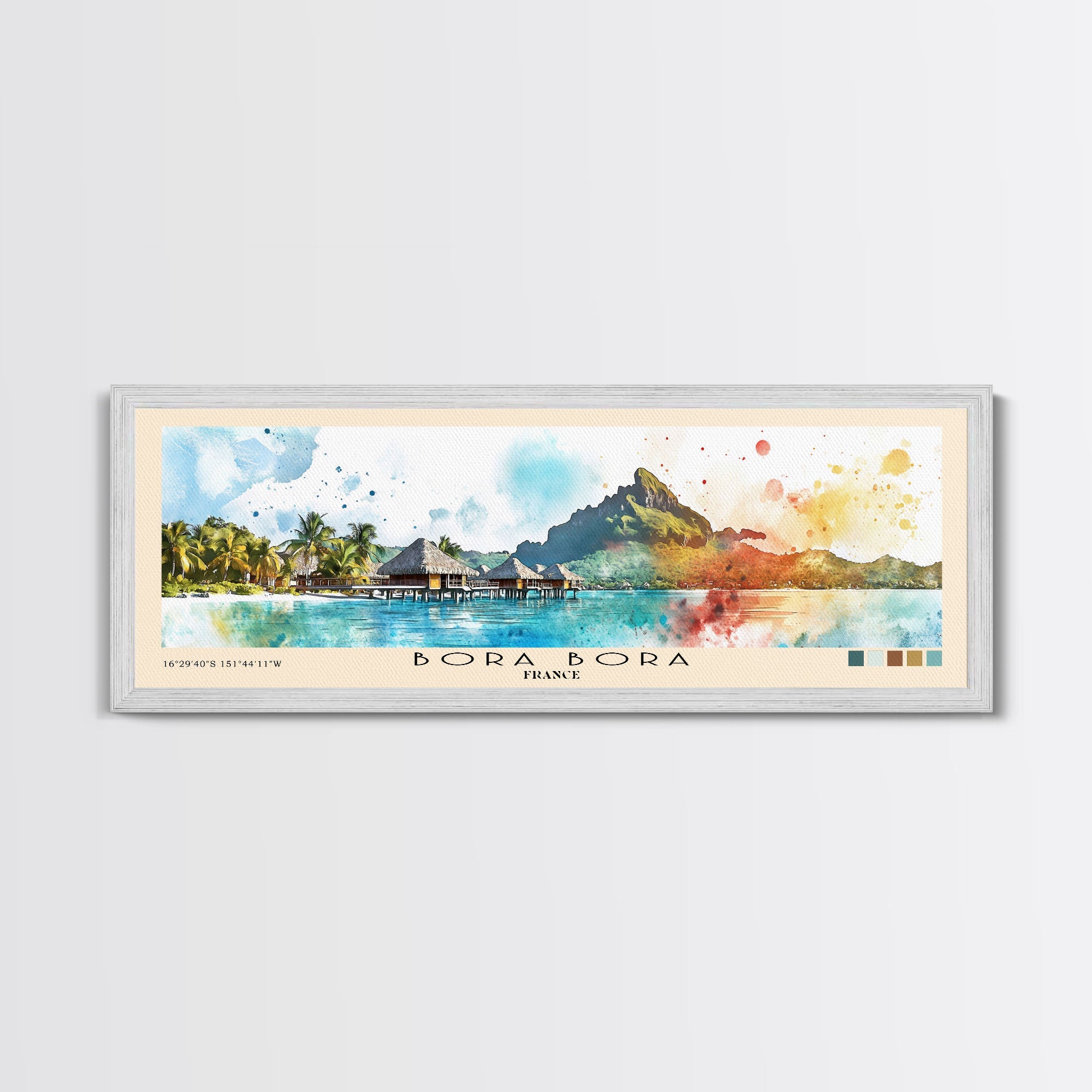 Bora Bora, France Watercolor Beach Print, Vacation Gift, France Wall Art, Framed Canvas Print, Framed Beach Painting