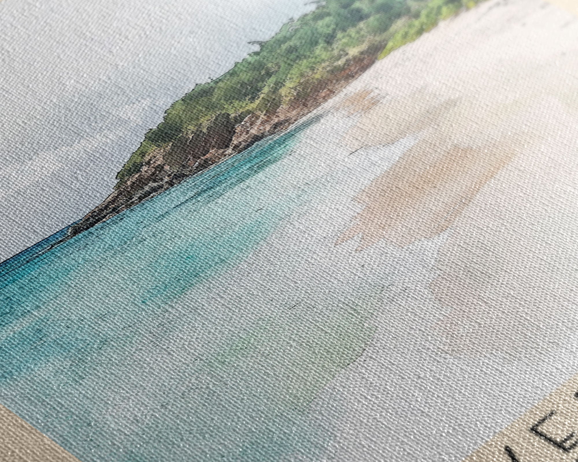 Most of our canvases are made in the USA, with the exception of canvases ordered with the light oak unstained frames, and any large canvases (24x48, 30x60, 16x48 and 20x60) ordered WITH a frame. These are temporarily made in and shipped from Europe, while we try to find a more consistent supplier in the USA.