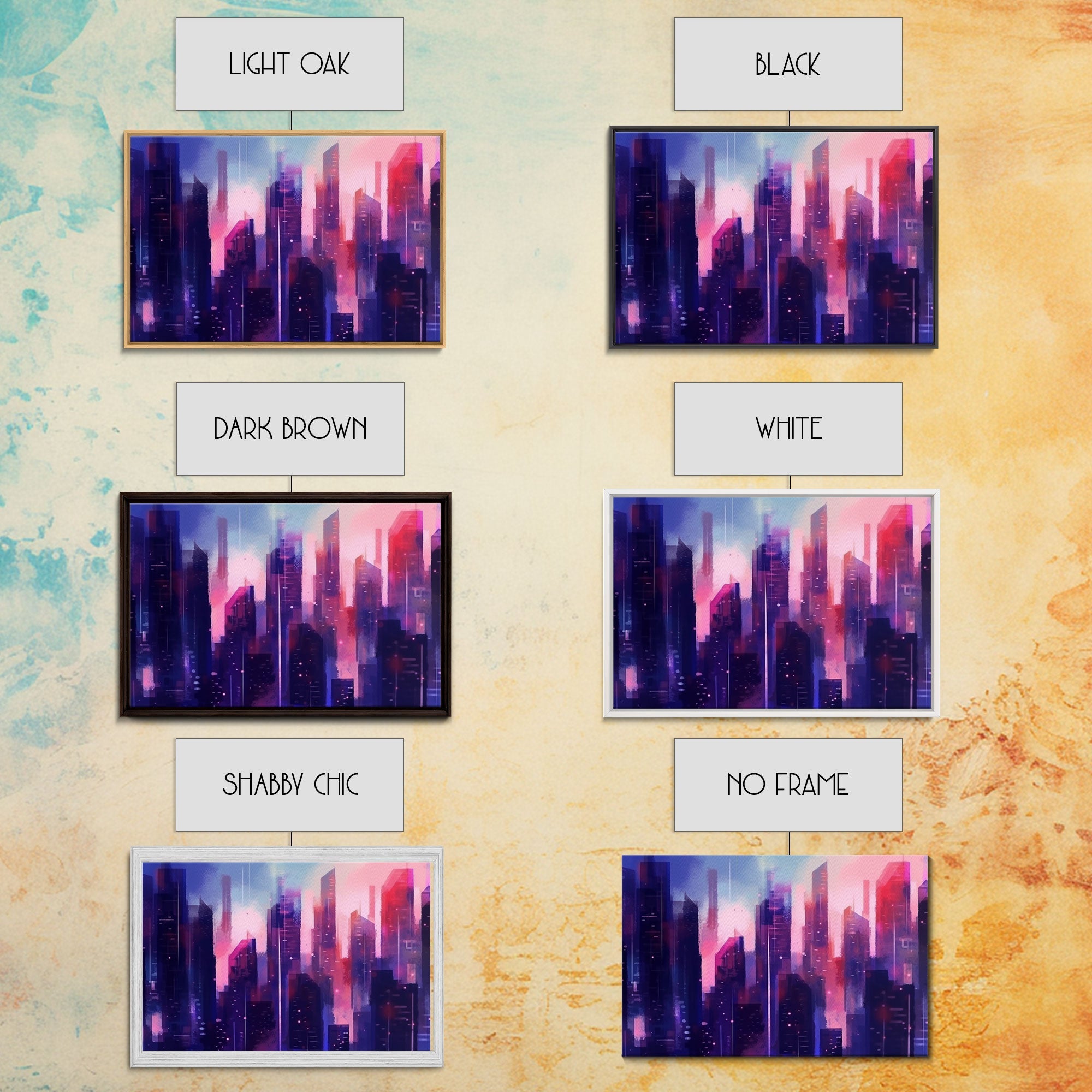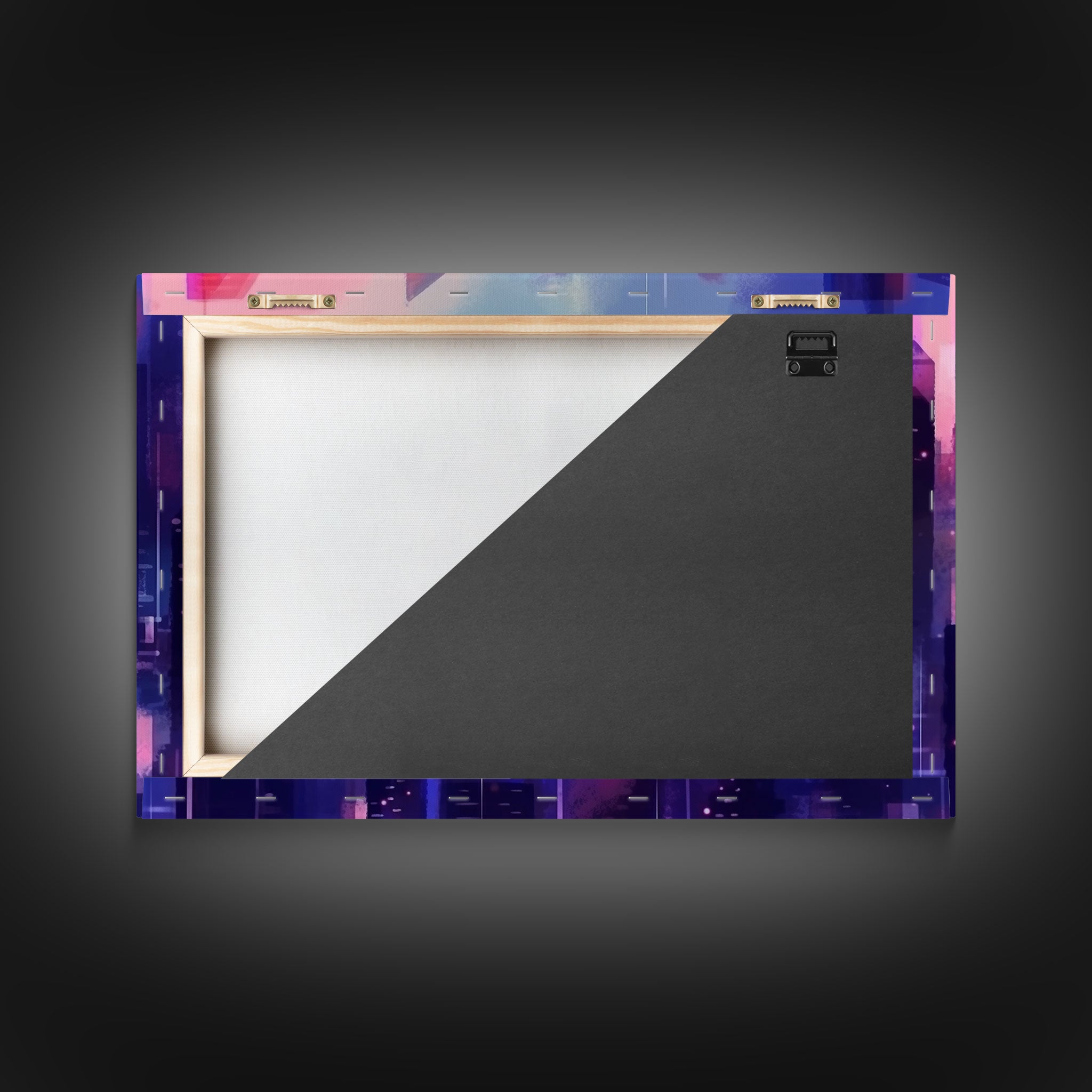 Buildings Wall Art - Framed Canvas Print - Original painting - Vaporwave Style - Watercolor colors - Pop Art Style - Living room art