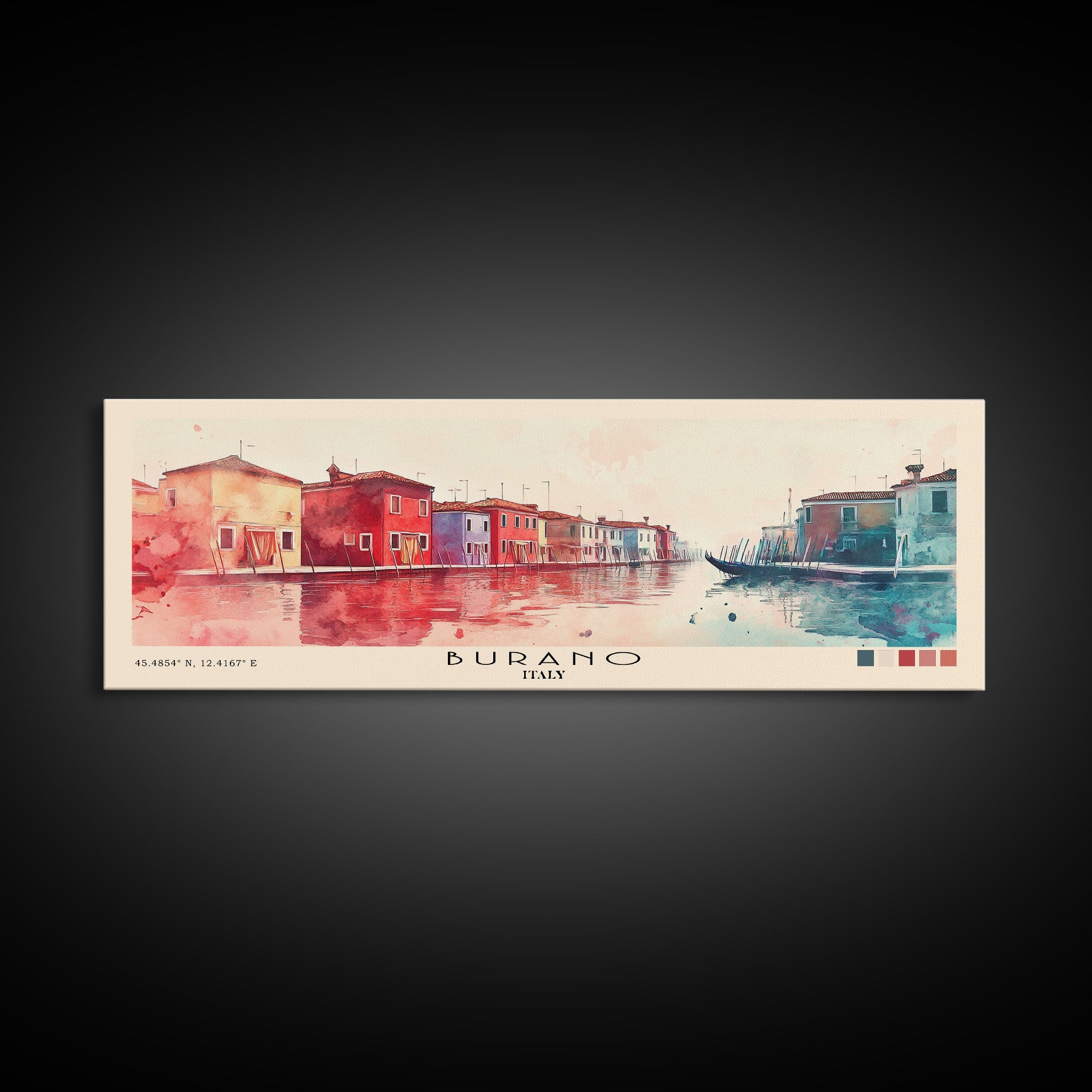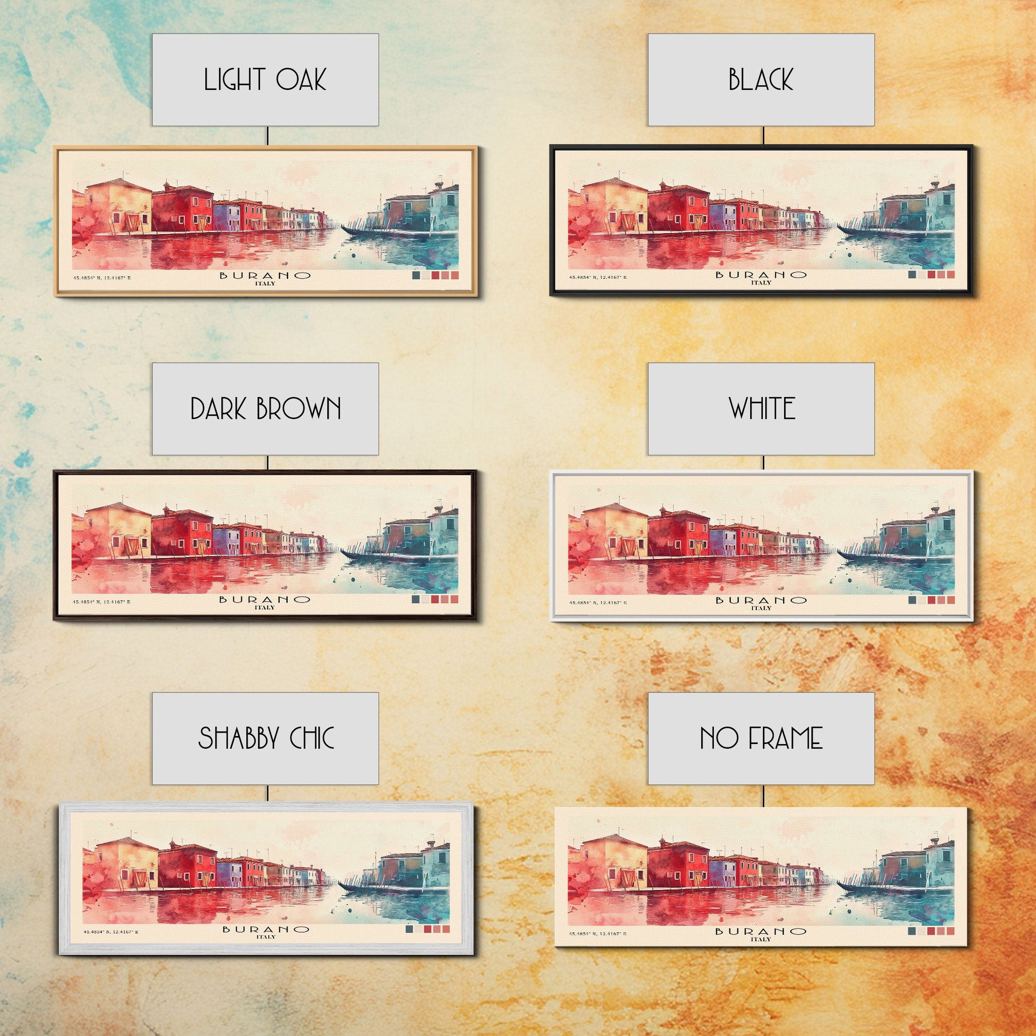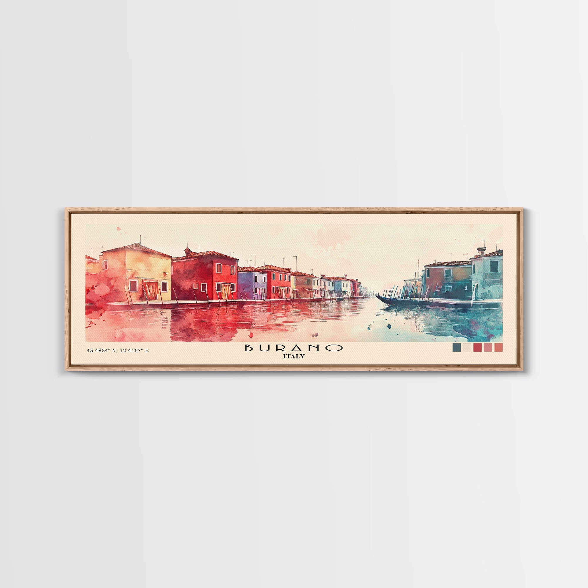 Burano, Italy Watercolor Print, Vacation Gift, Italy Wall Art, Beach Painting, Beach Decor, Large Wall Art, Wood Frame Art