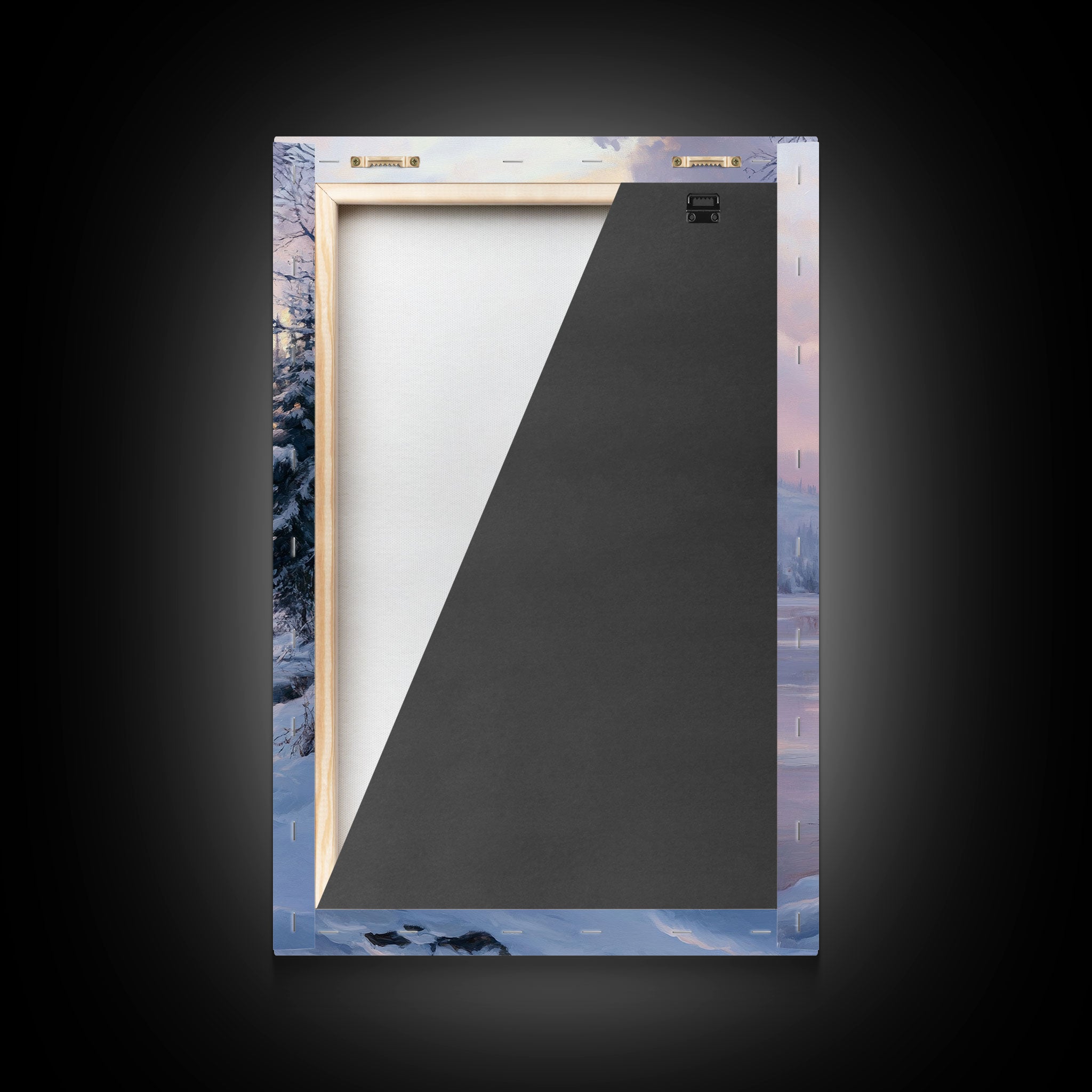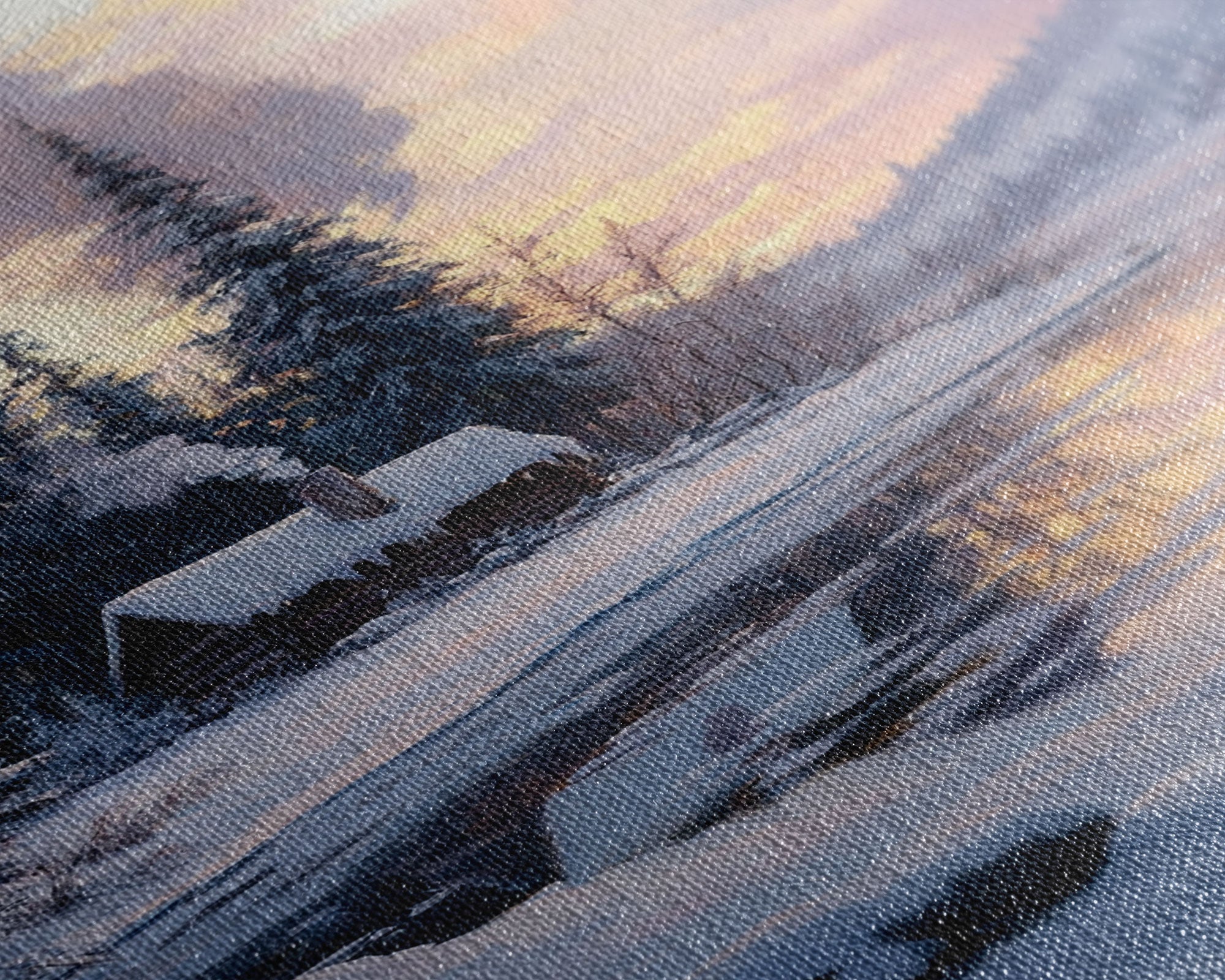 Cabin In Snowy Forest Framed Canvas Print Wall Art Winter Landscape Decor, Cozy Christmas Art Gift, Rustic Winter Wonderland Art