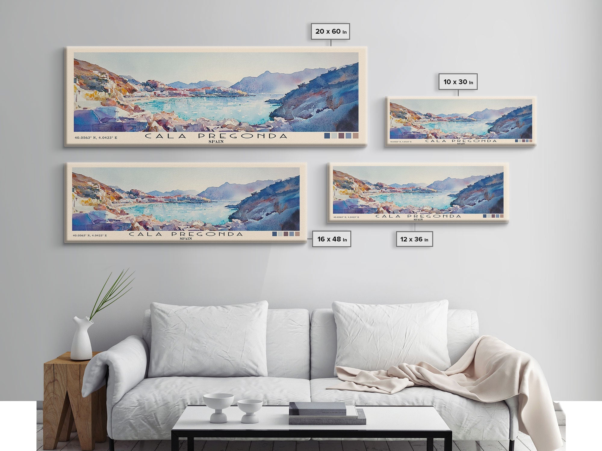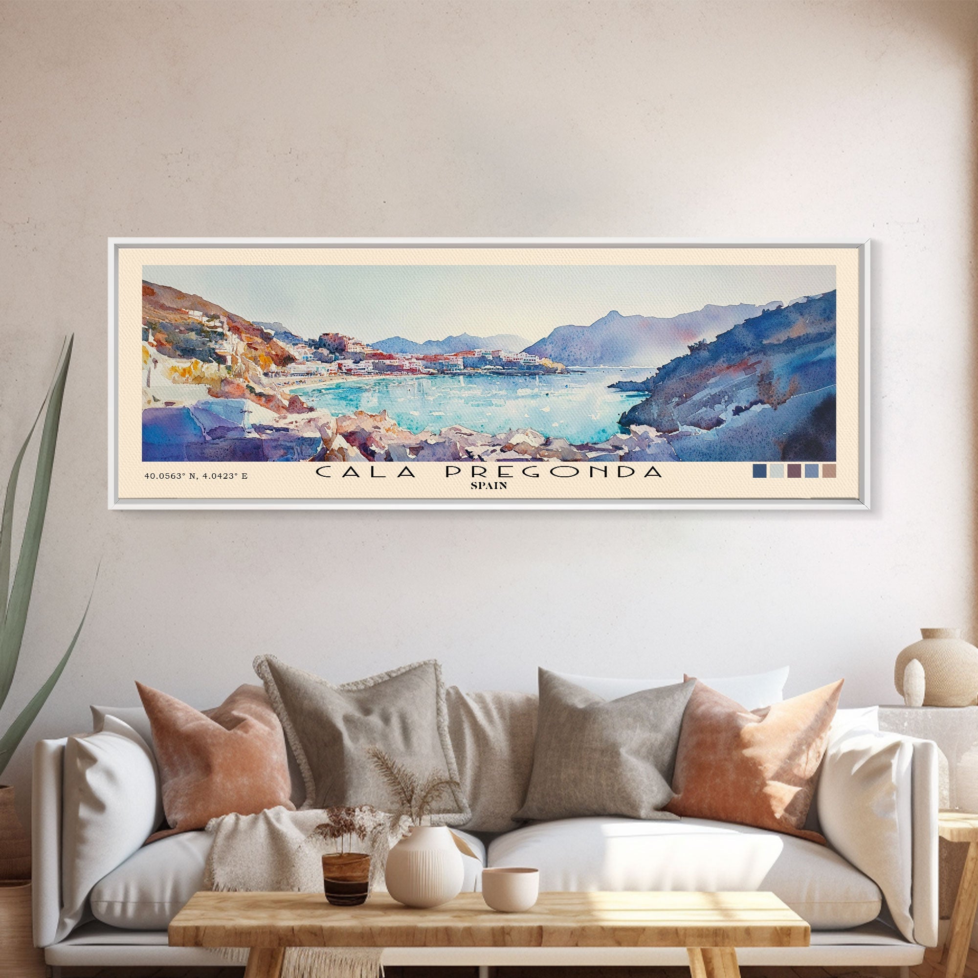 Cala Pregonda, Spain Watercolor Print, Vacation Gift, Spain Wall Art, Beach Painting, Beach Decor, Large Wall Art, Wood Frame Art