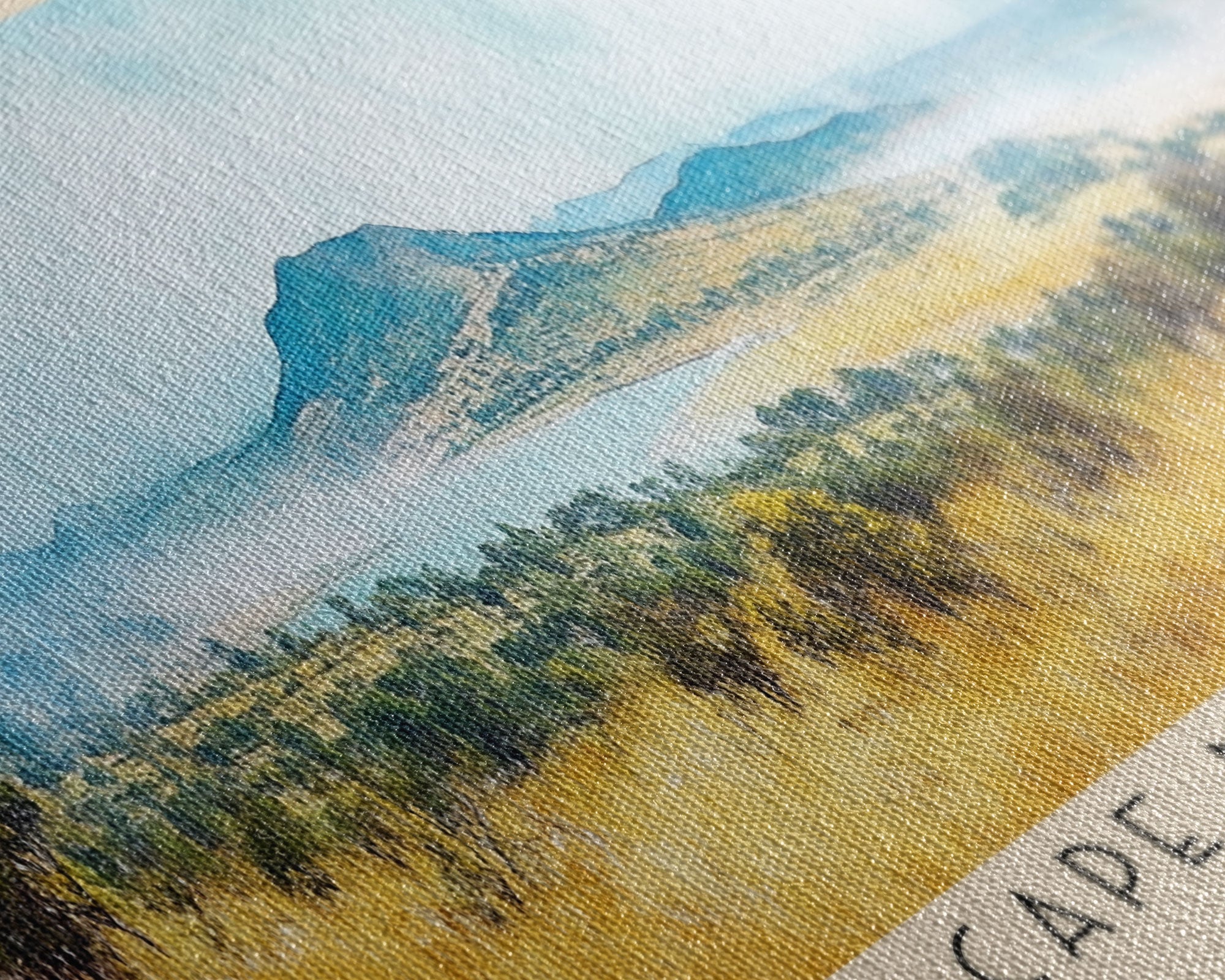 Most of our canvases are made in the USA, with the exception of canvases ordered with the light oak unstained frames, and any large canvases (24x48, 30x60, 16x48 and 20x60) ordered WITH a frame. These are temporarily made in and shipped from Europe, while we try to find a more consistent supplier in the USA.