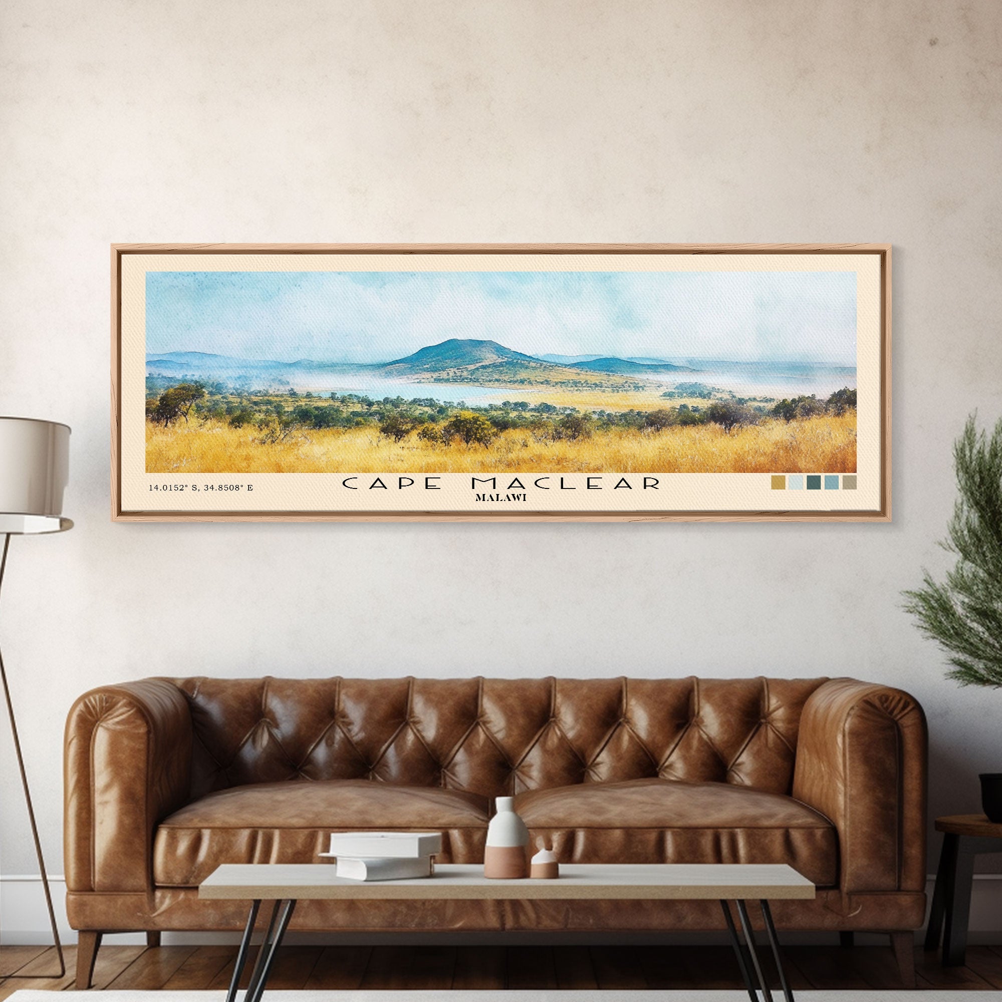 Cape Maclear, Malawi Watercolor Print, Vacation Gift, Malawi Wall Art, Beach Painting, Beach Decor, Large Wall Art, Wood Frame Art