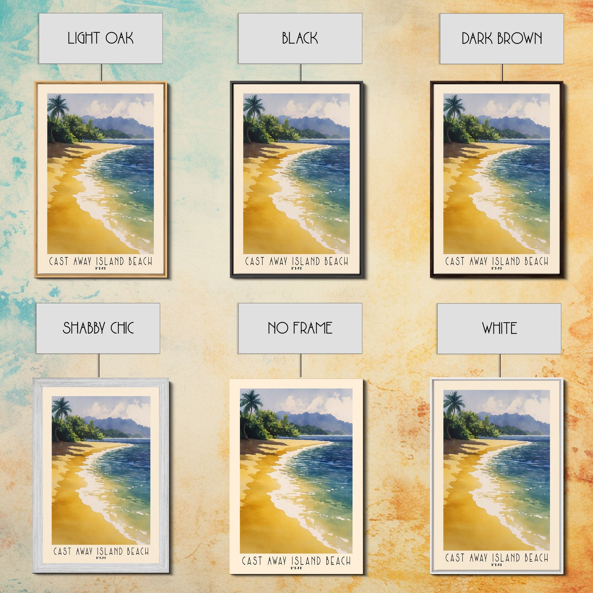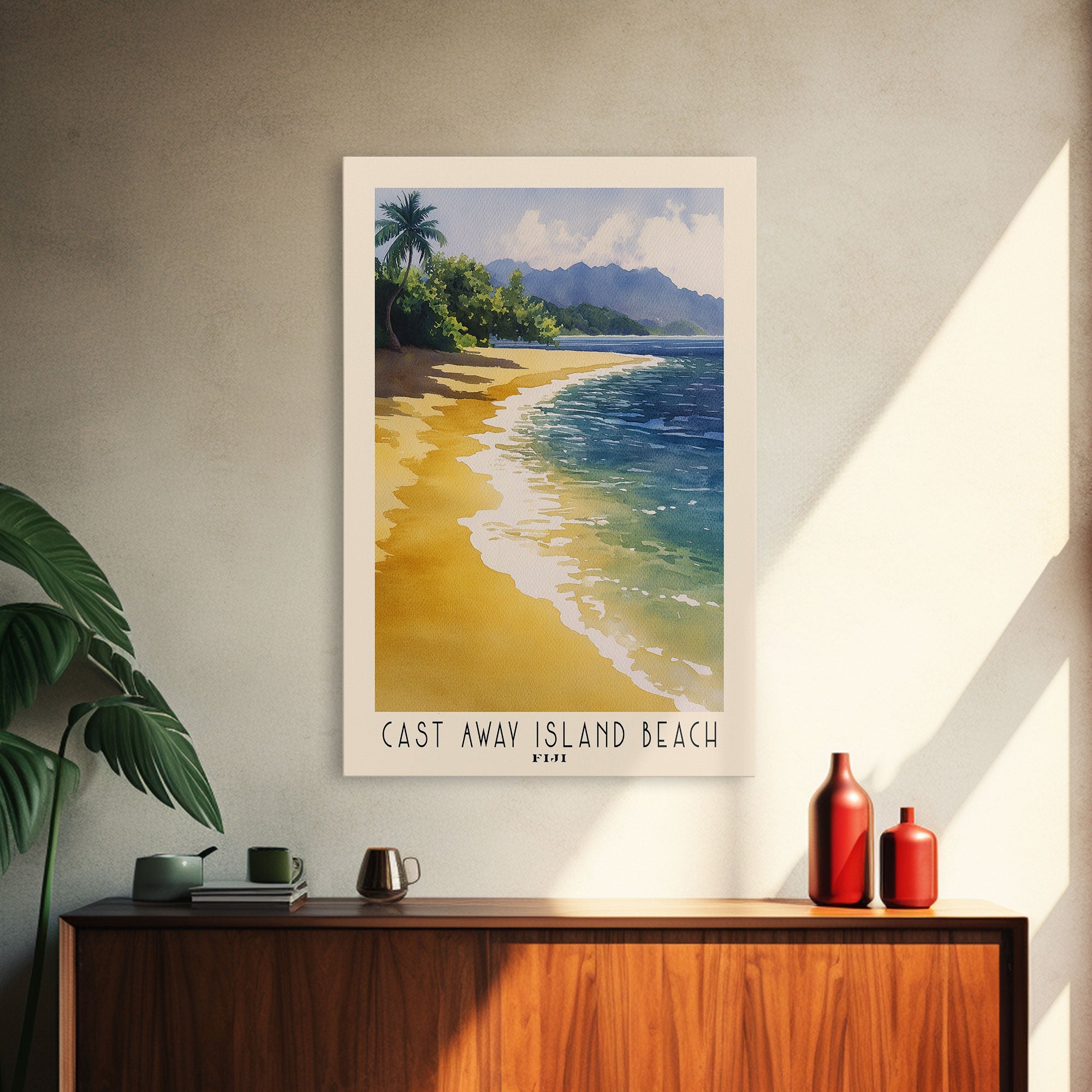 Cast Away Island Beach, Fiji Watercolor Print, Vacation Gift, Fiji Wall Art, Beach Painting, Beach Decor, Large Wall Art, Wood Frame Art
