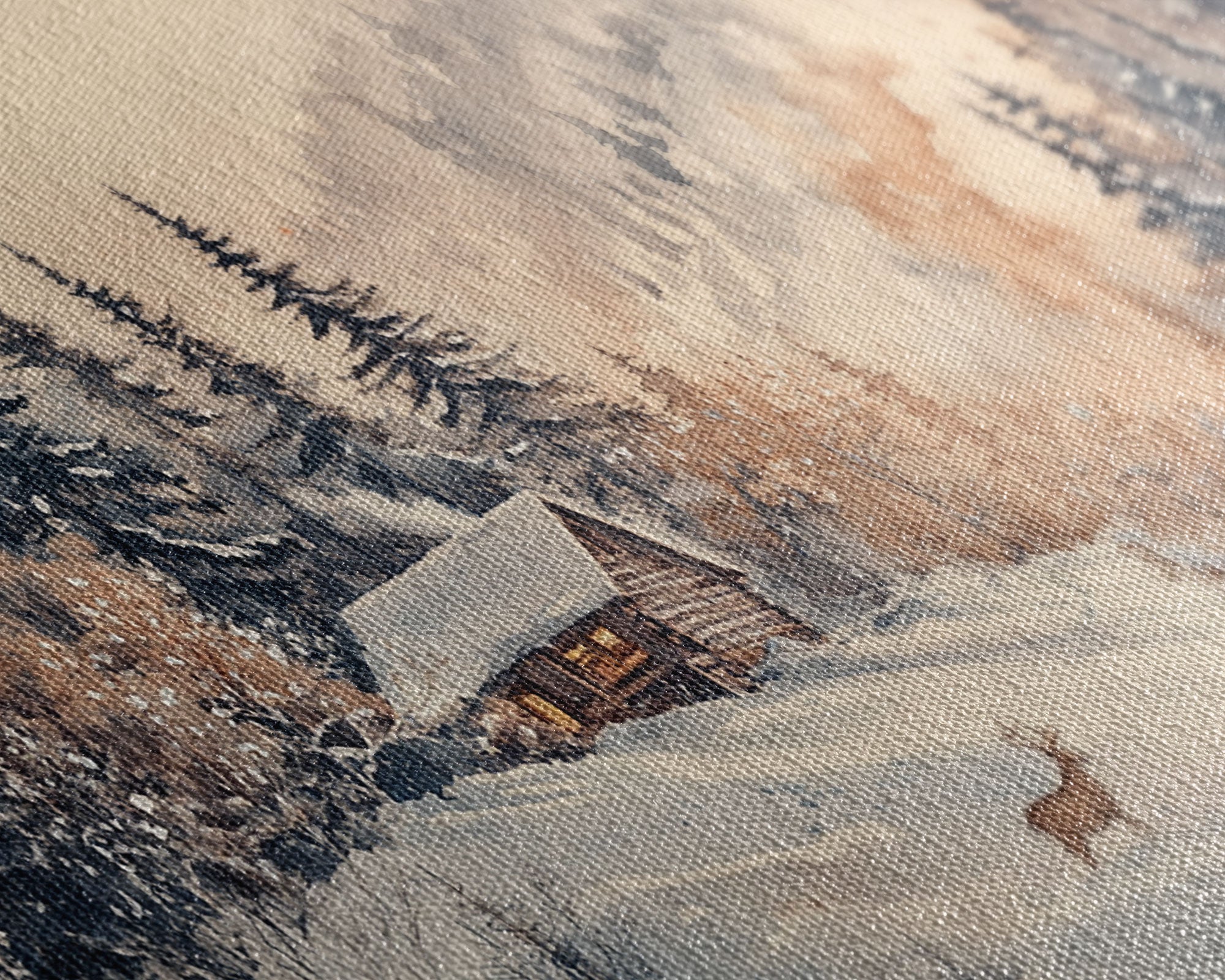 Christmas winter cabin Canvas Print snowy mountain cabin deer cozy holiday wall art winter wonderland seasonal decor Christmas gift idea