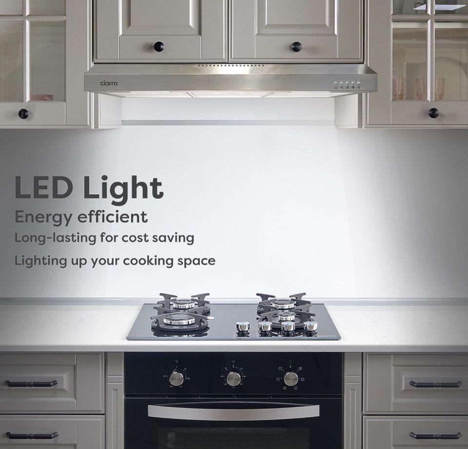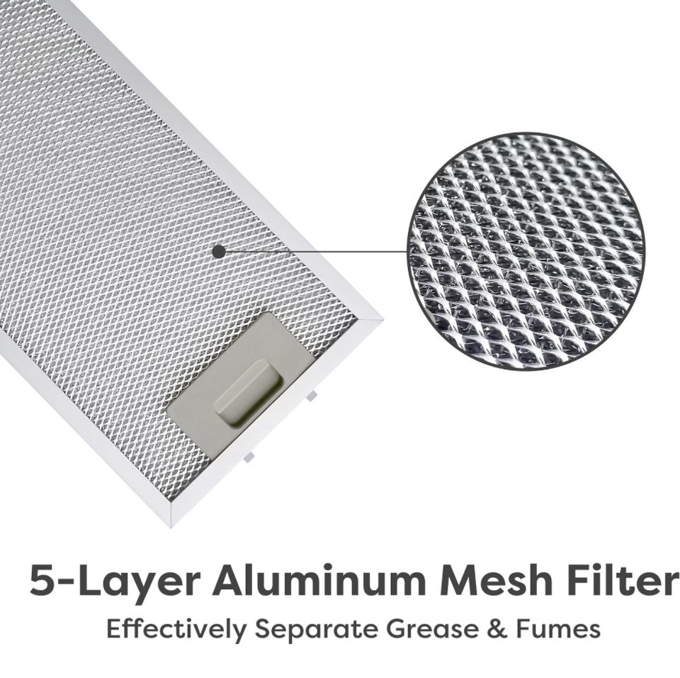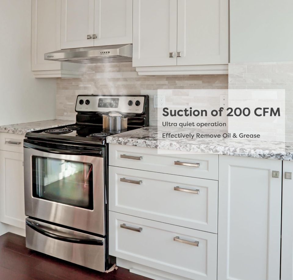 Features & details ULTRA SLIM: Under cabinet range hood 30 inch with low profile design, extremely space saving, great for condos and apartments. USER-FRIENDLY DESIGN: 30 inch vent hood for kitchen with mechanical push button for convenient control. Quiet operation, 6.5 Sones max at the highest speed. SUPERIOR FILTRATION: Slim range hood with mesh filters, trap cooking grease and oil with ease, preventing smells and odors spreading in your kitchen. CONVERTIBLLE VENTILATION MODE: The kitchen exhaust hood in stainless steel can be converted with ducted or ductless. Ductless mode need to operation with the optional purchase of CACF006 carbon filter for recirculating.