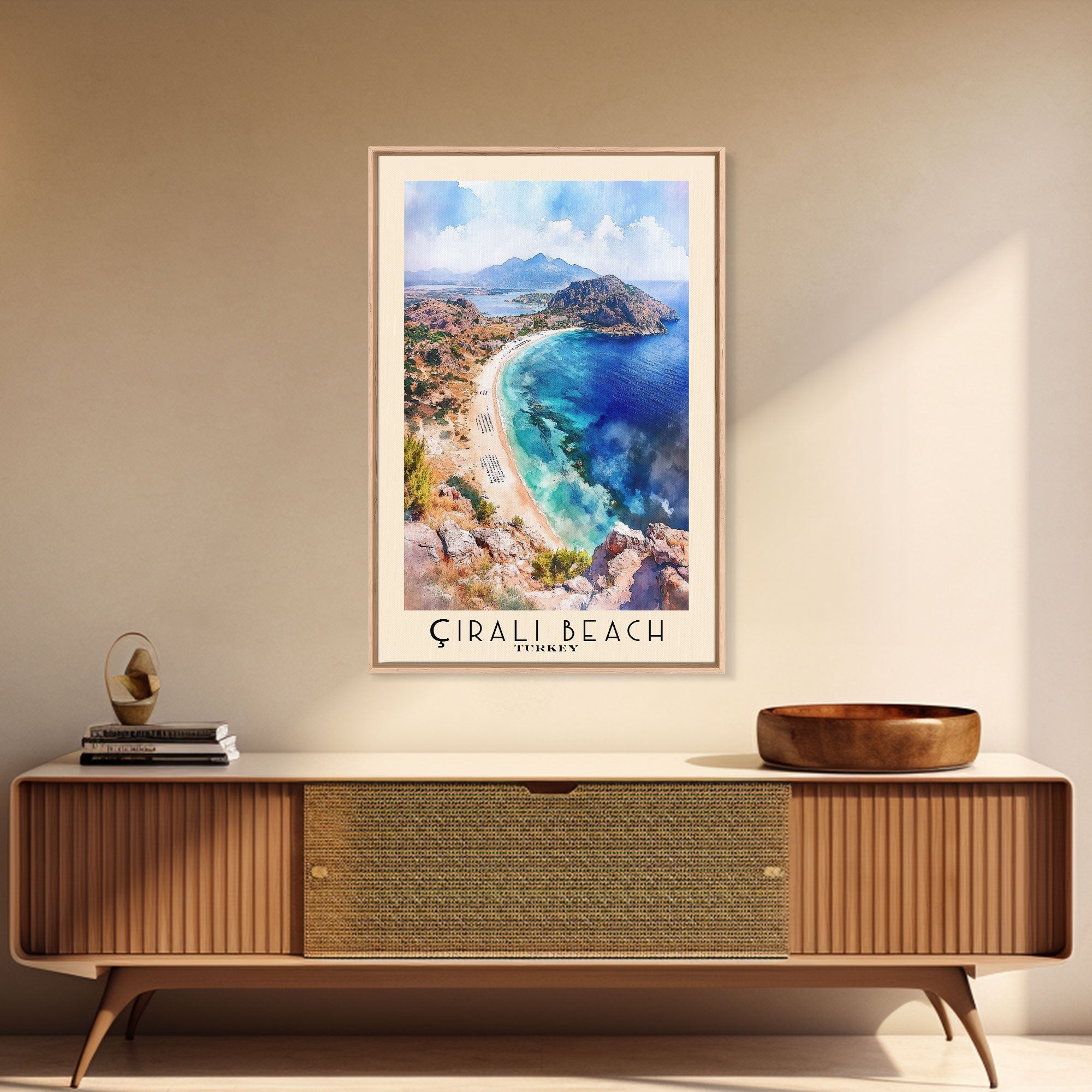 Çıralı Beach, Turkey Watercolor Print, Vacation Gift, Turkey Wall Art, Beach Painting, Beach Decor, Large Wall Art, Wood Frame Art