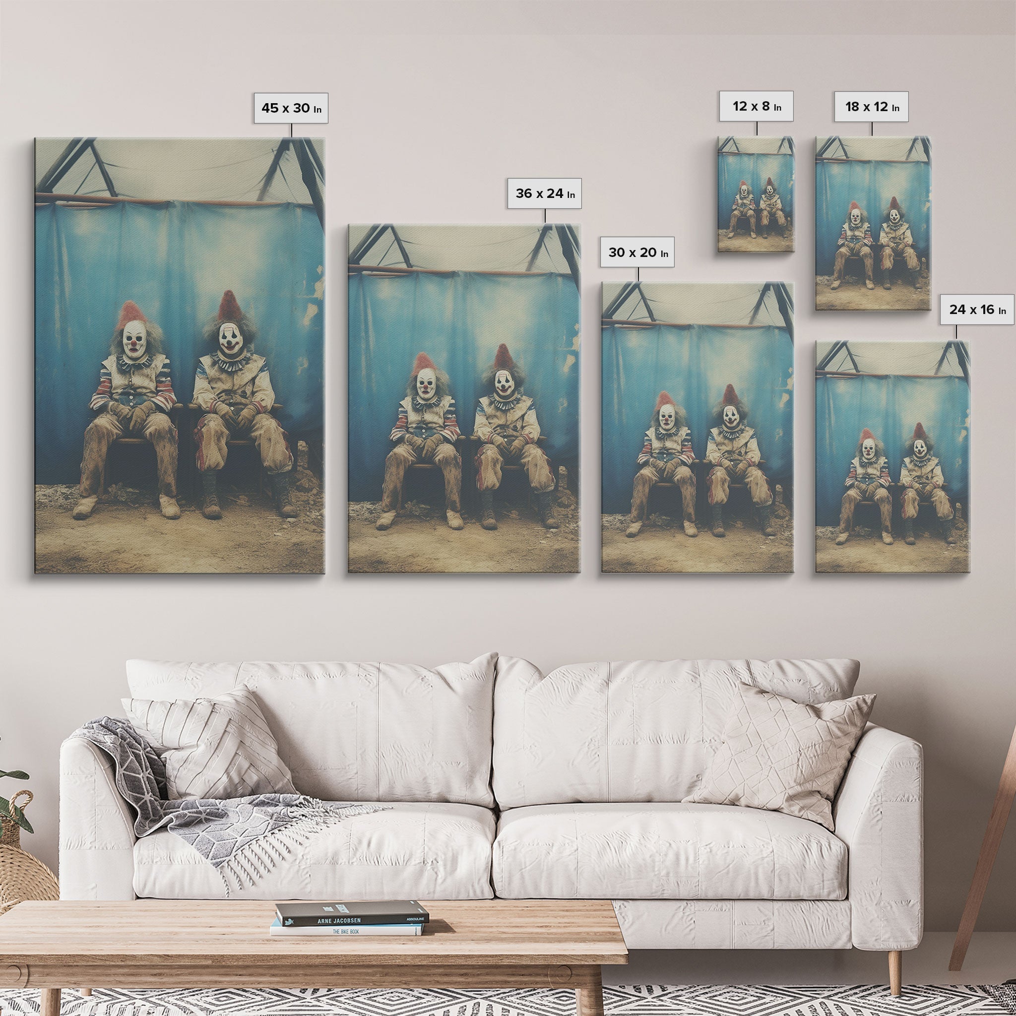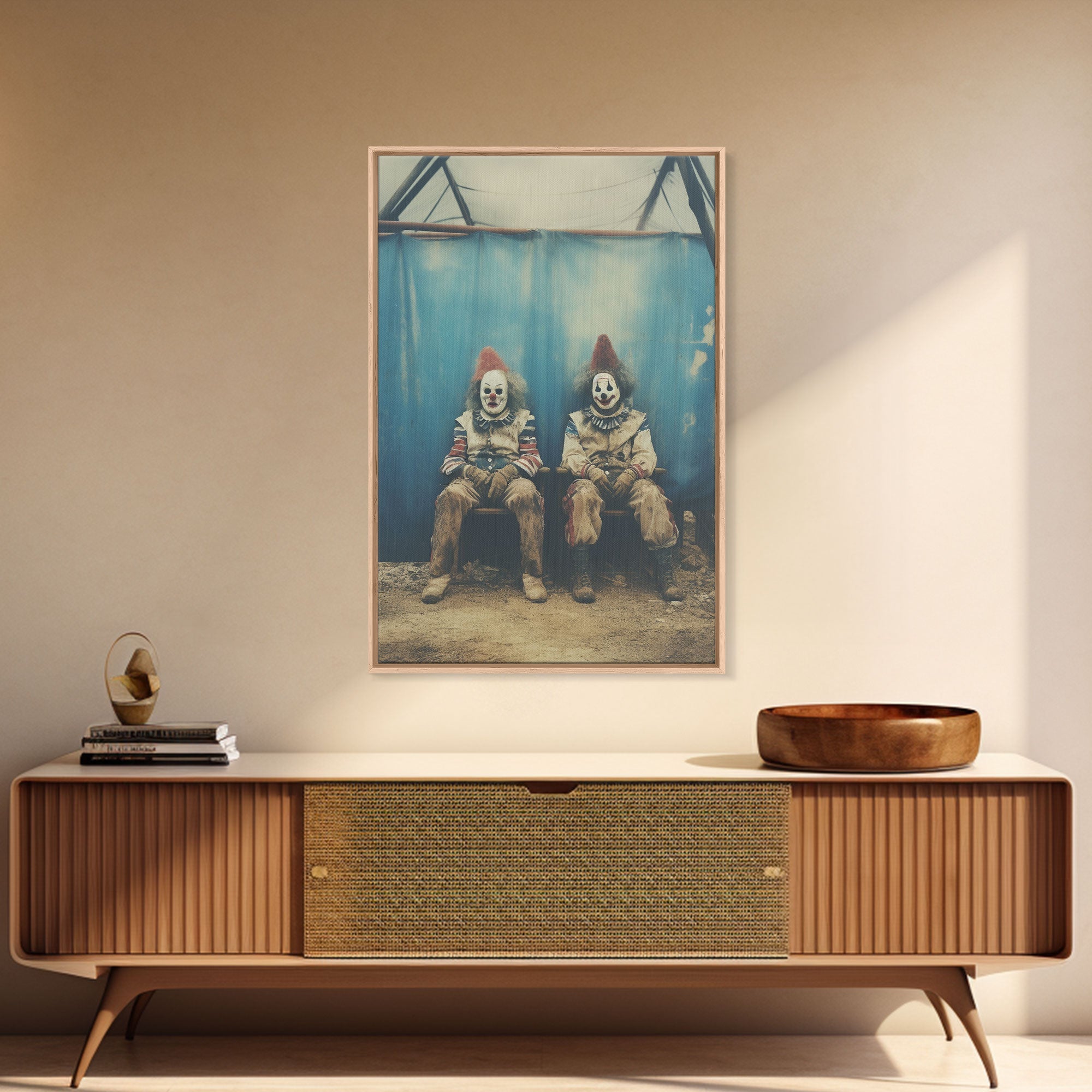 Clown Art, Clown Print, Canvas Print, Wall Hanging, Portrait Art, Halloween Wall Decor, Spooky Room Decor, Moody Wall Art, Horror Decor