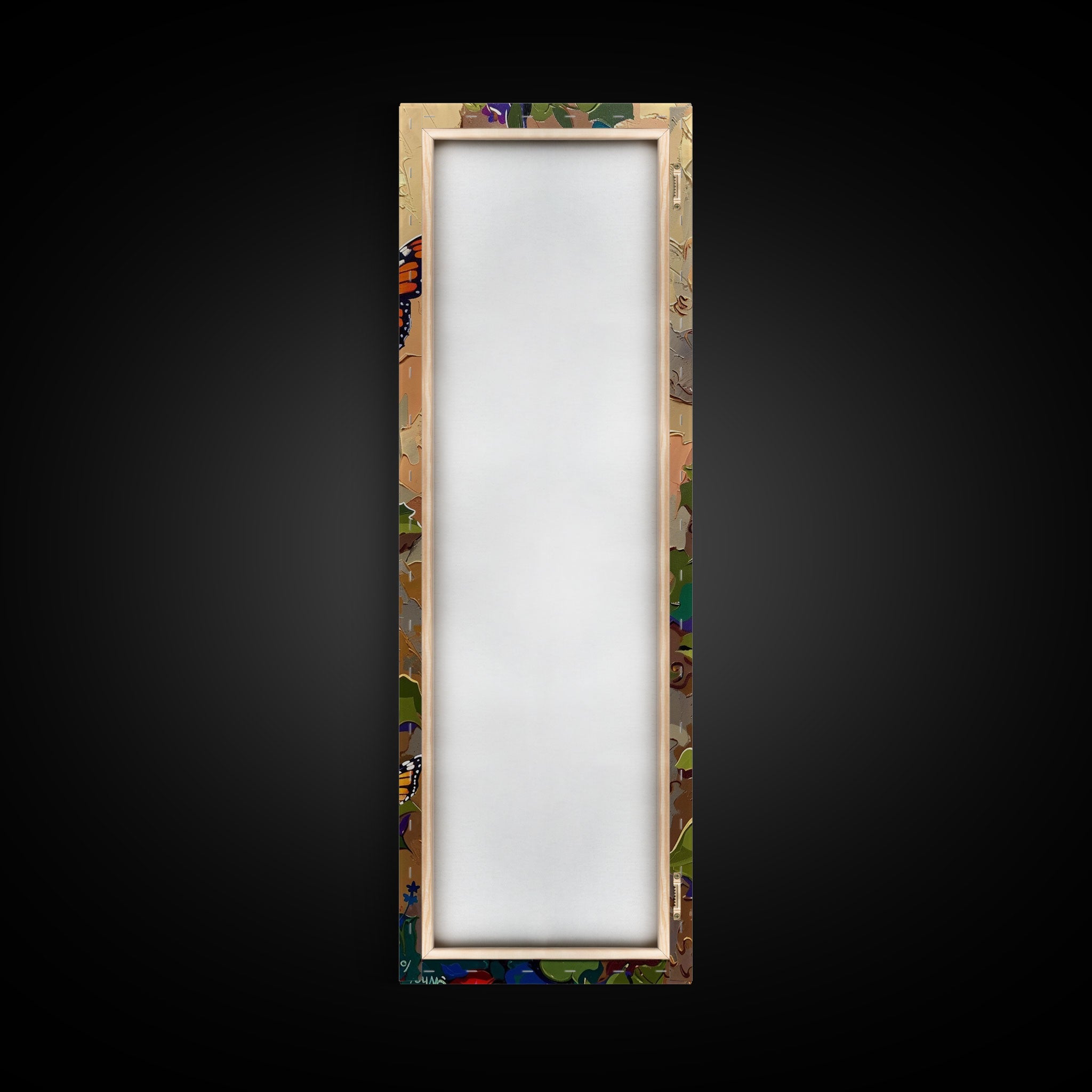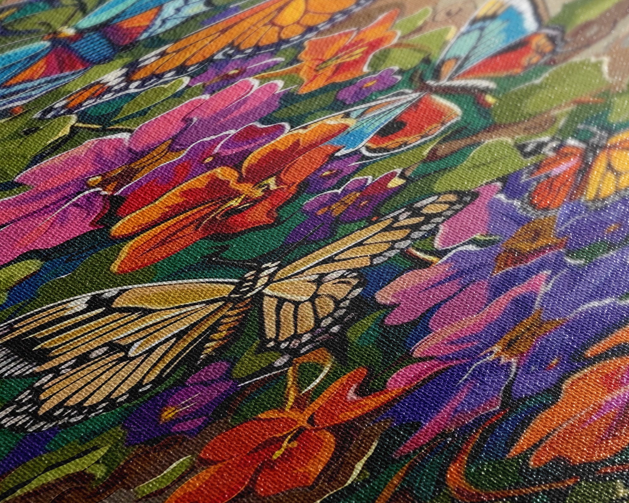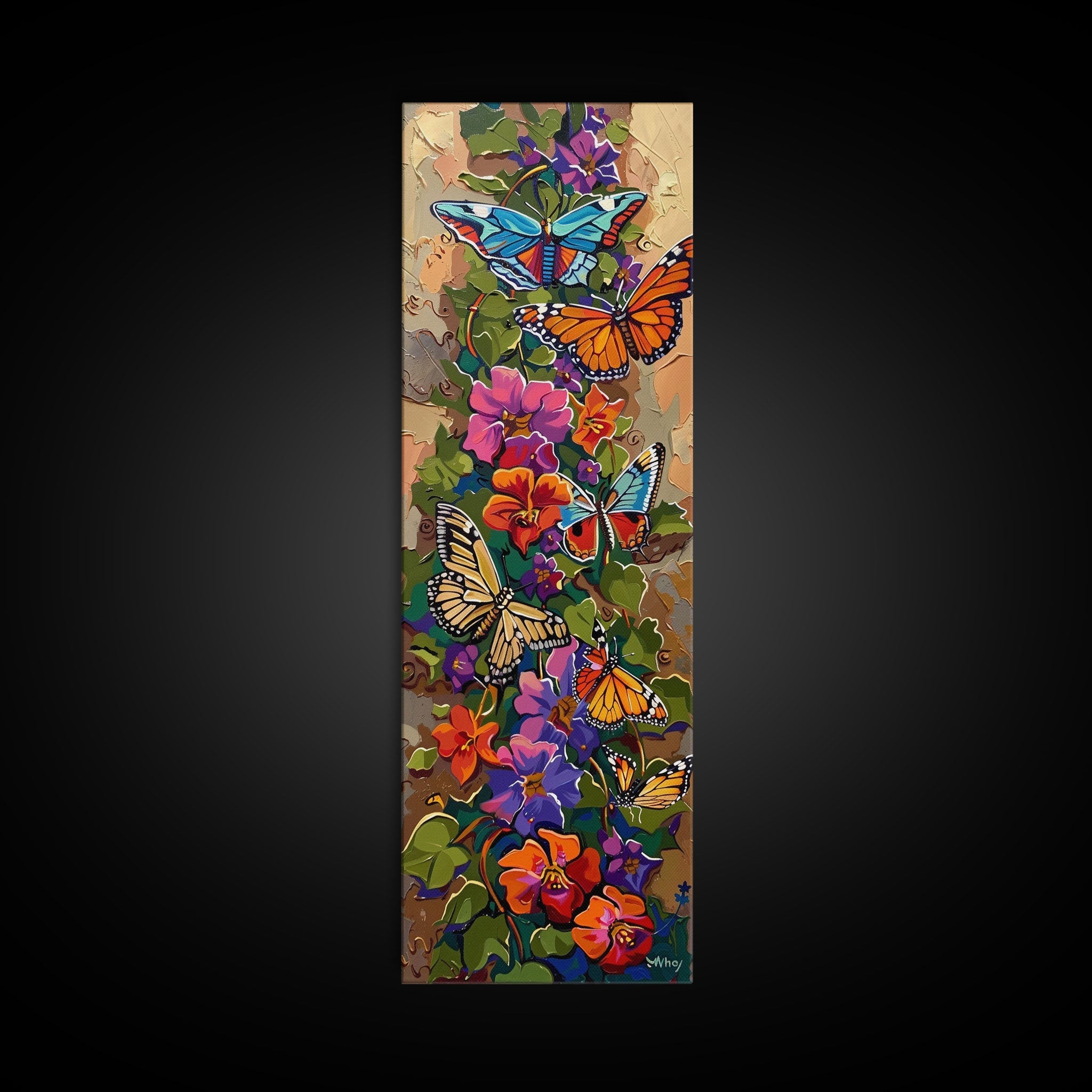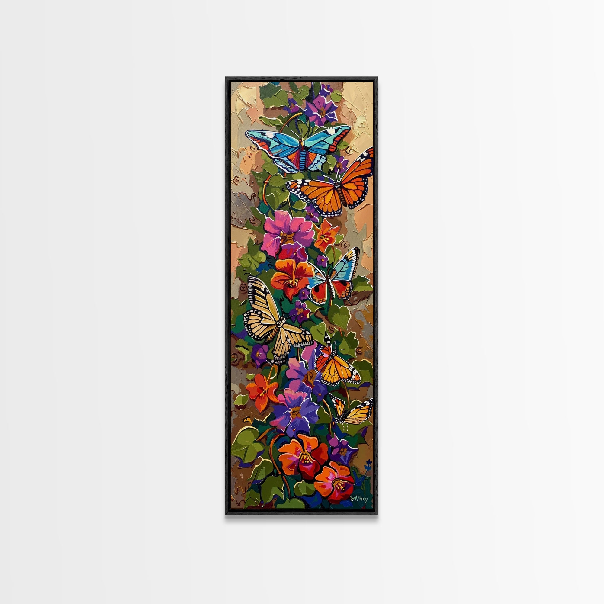 Colorful Abstract Framed Butterfly Canvas Art, Gouache Style Painting, Botanical Wall Art, Oversized Long Narrow Wall Art for Bedroom