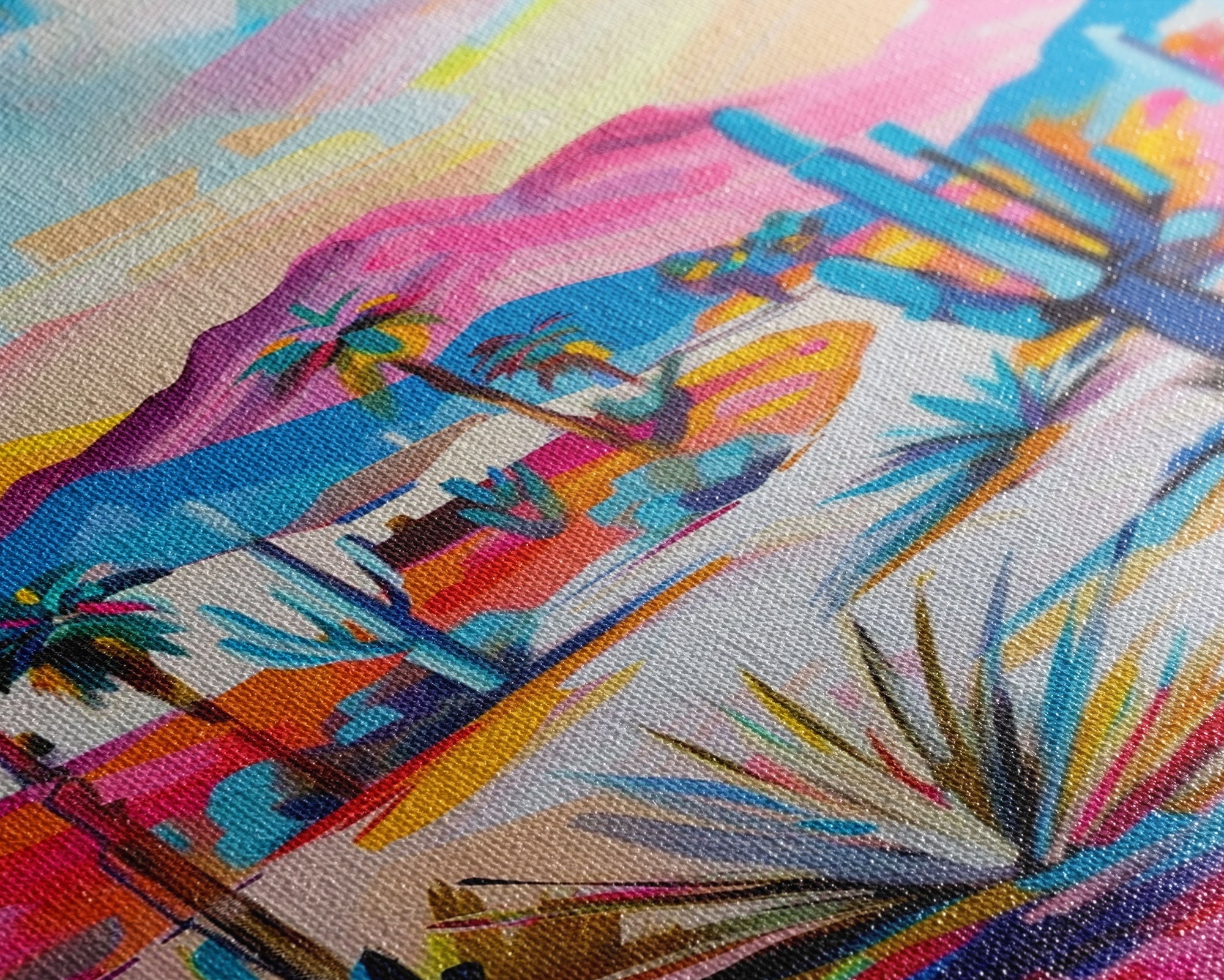Colorful Desert Pathway Art - Framed Canvas Print, Southwestern Decor, Vibrant Living Room Wall Art, Modern Desert Landscape