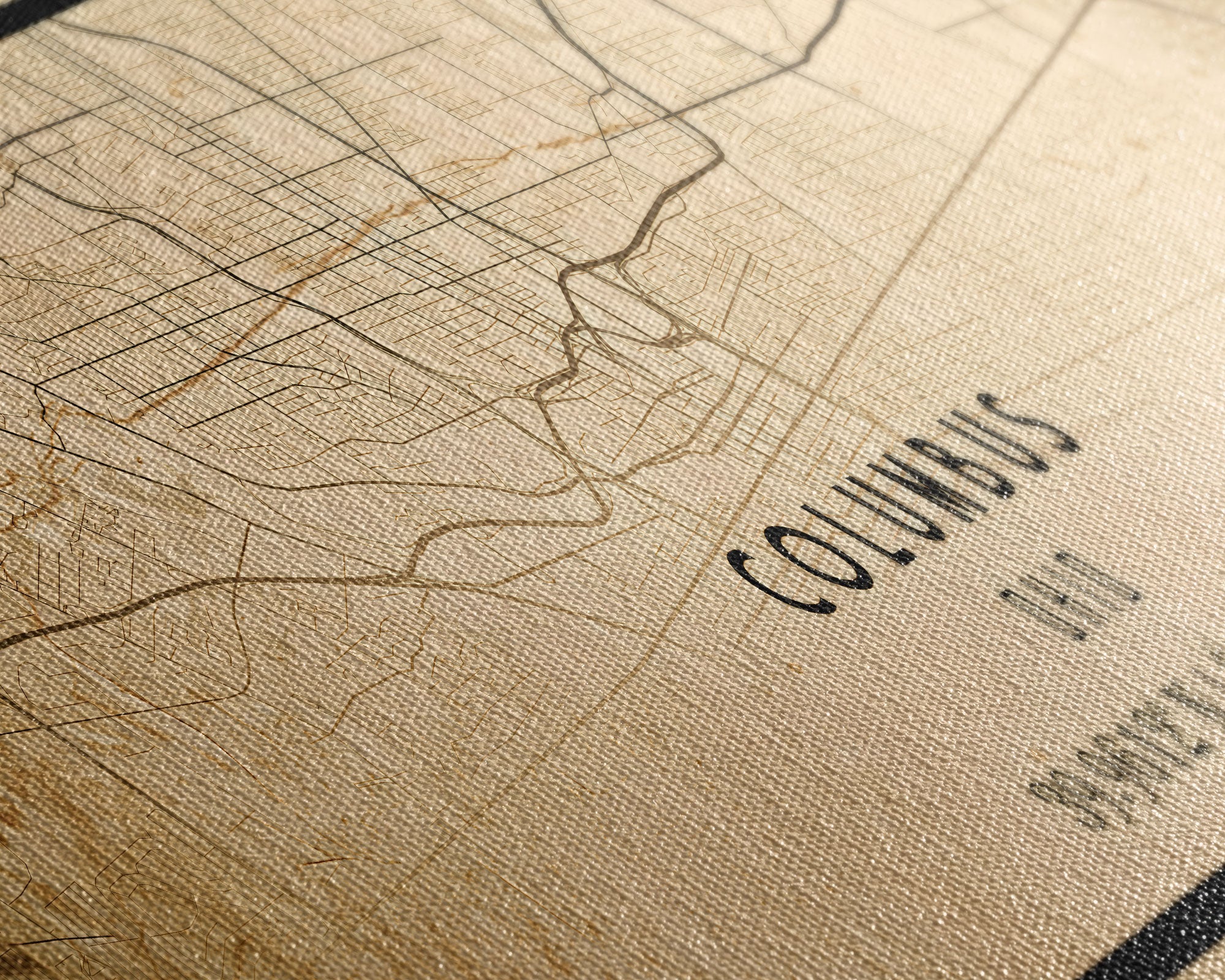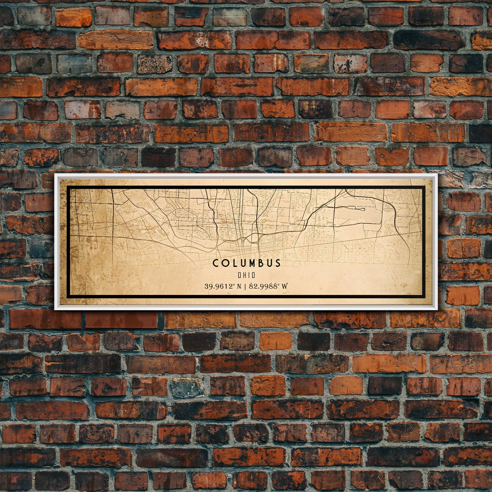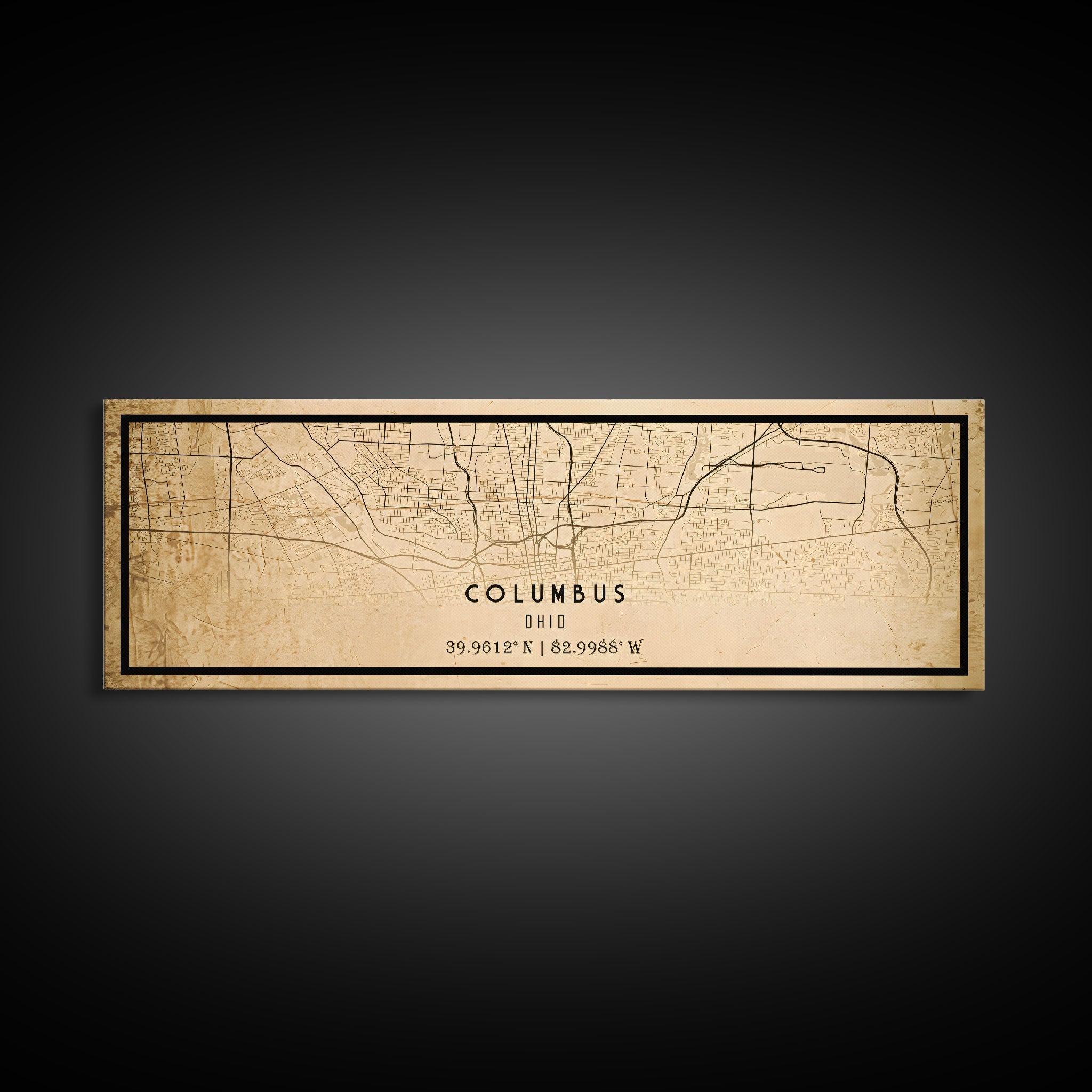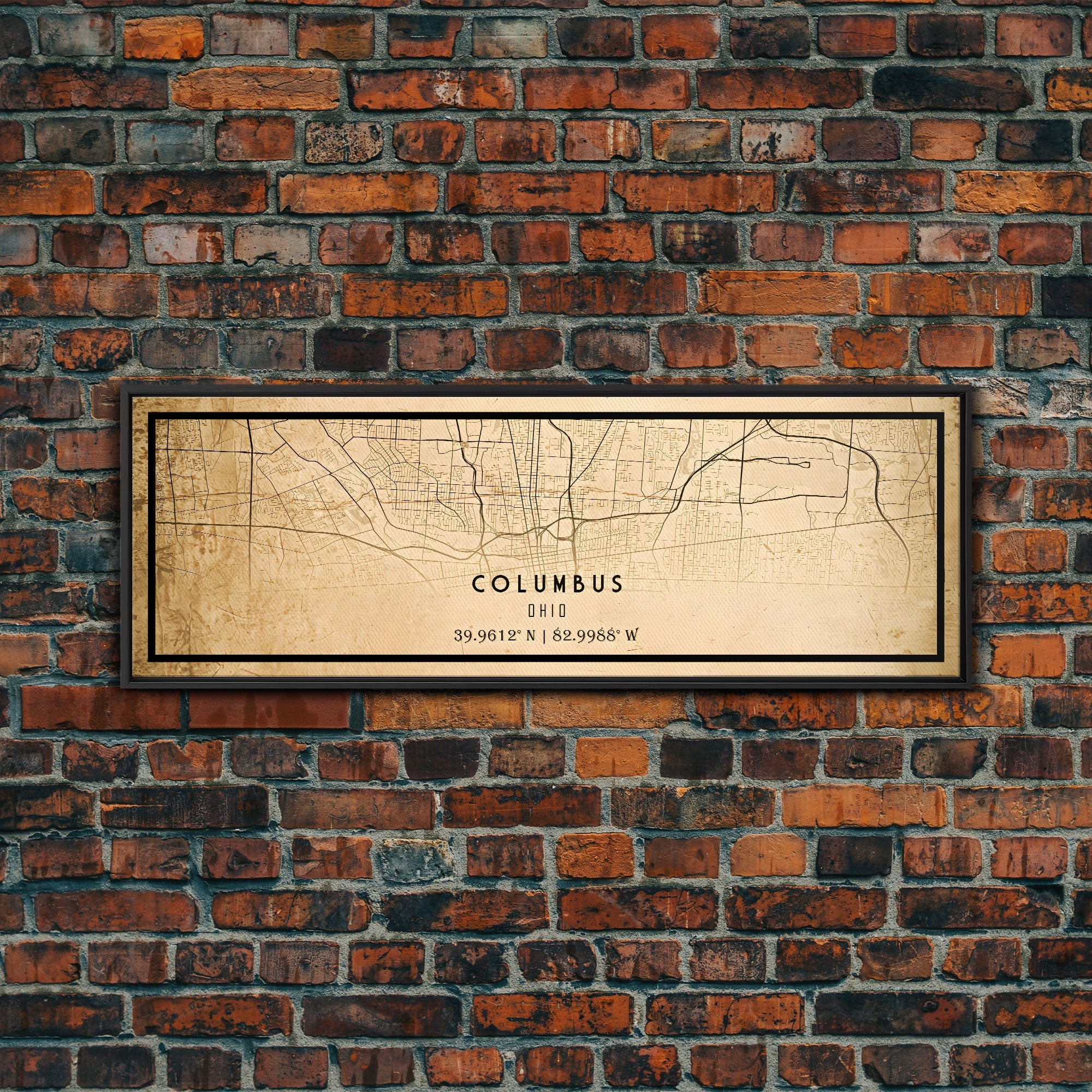 Columbus Panoramic vintage map print poster or framed canvas, Ohio map print poster canvas, Columbus city map print poster canvas