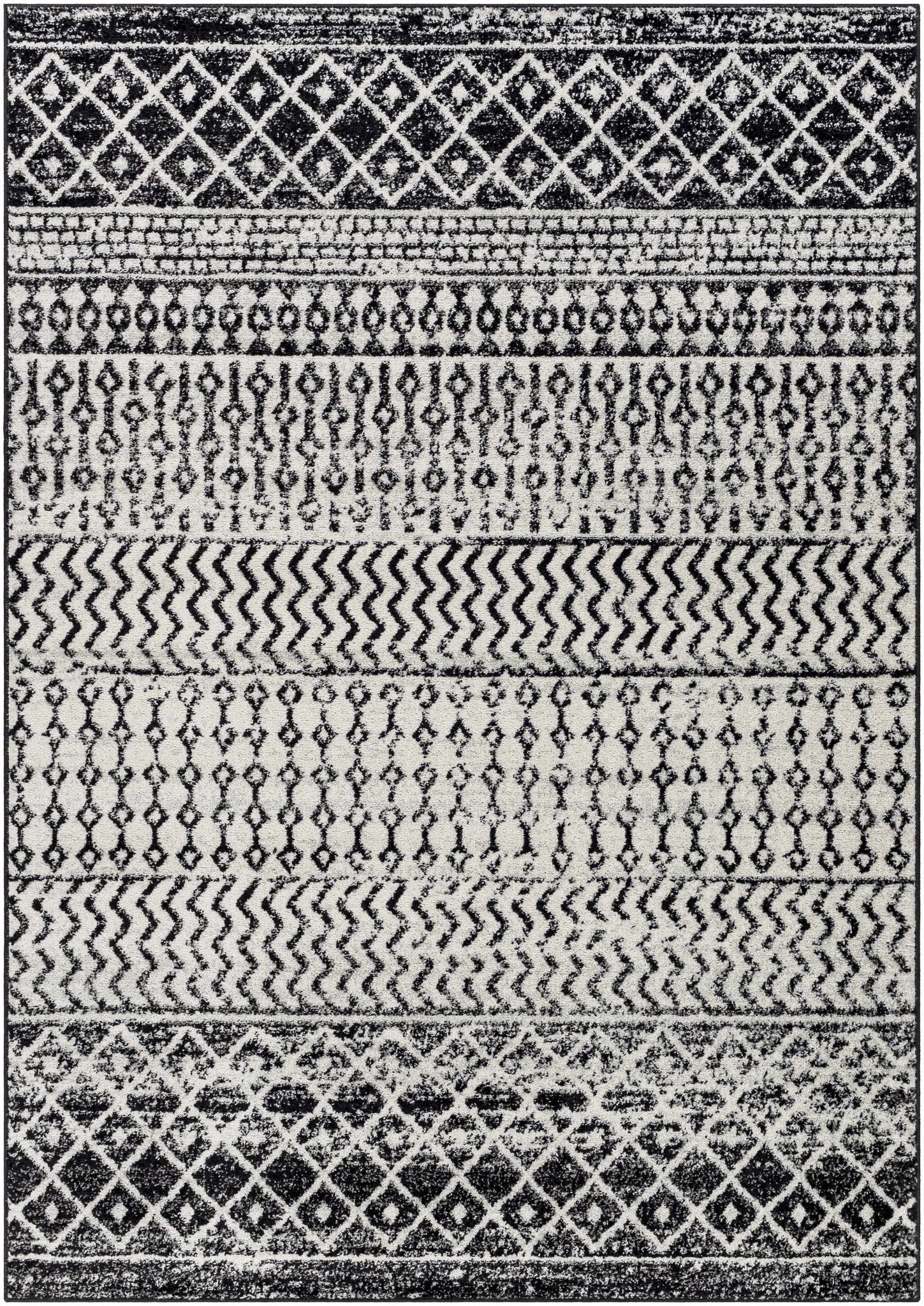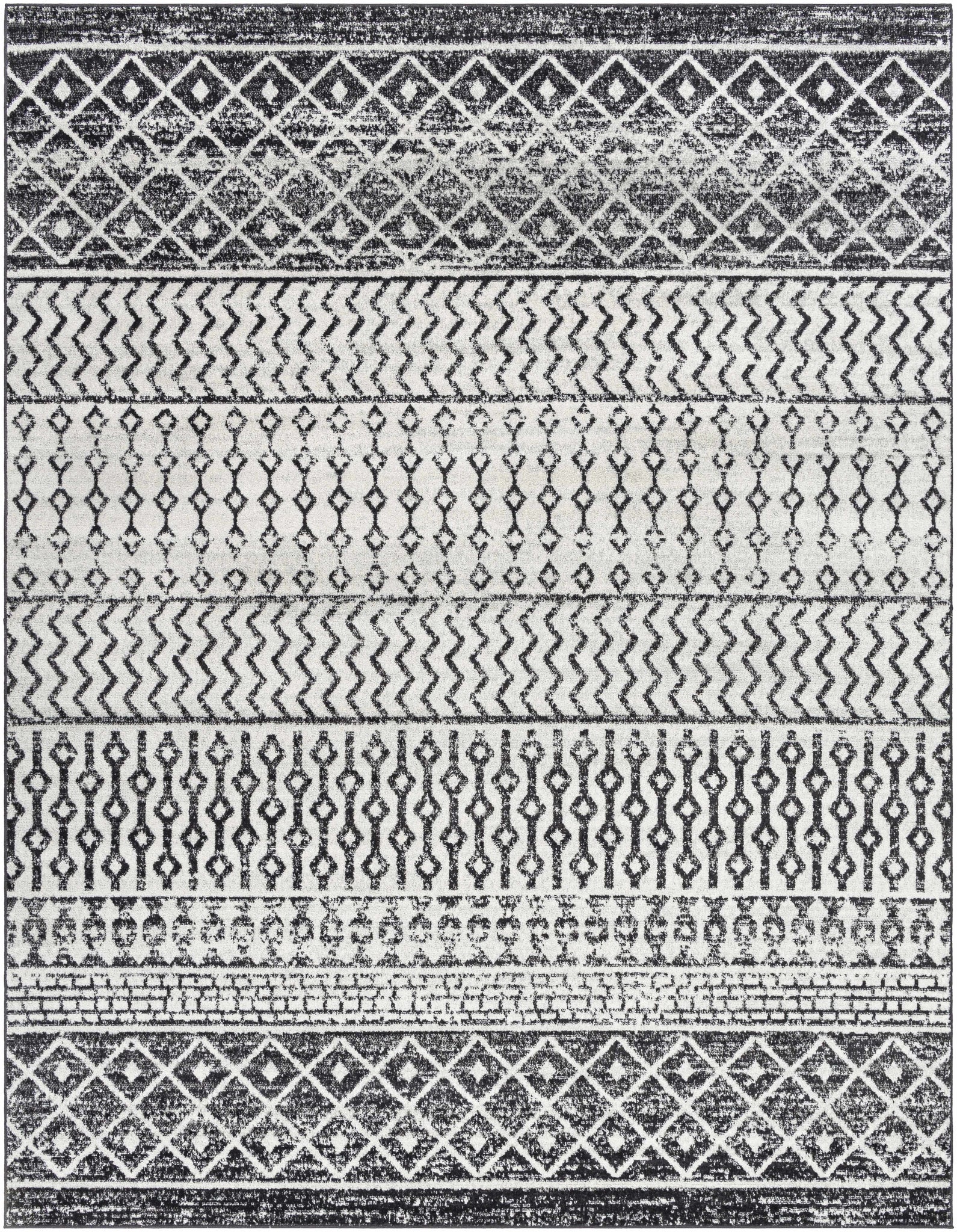About: Tones of black and white meet on this rug. Be it Boho or Farmhouse, with its versatile design, this rug will match your style regardless. You will fall in love with its fabulous pattern and soft texture.
