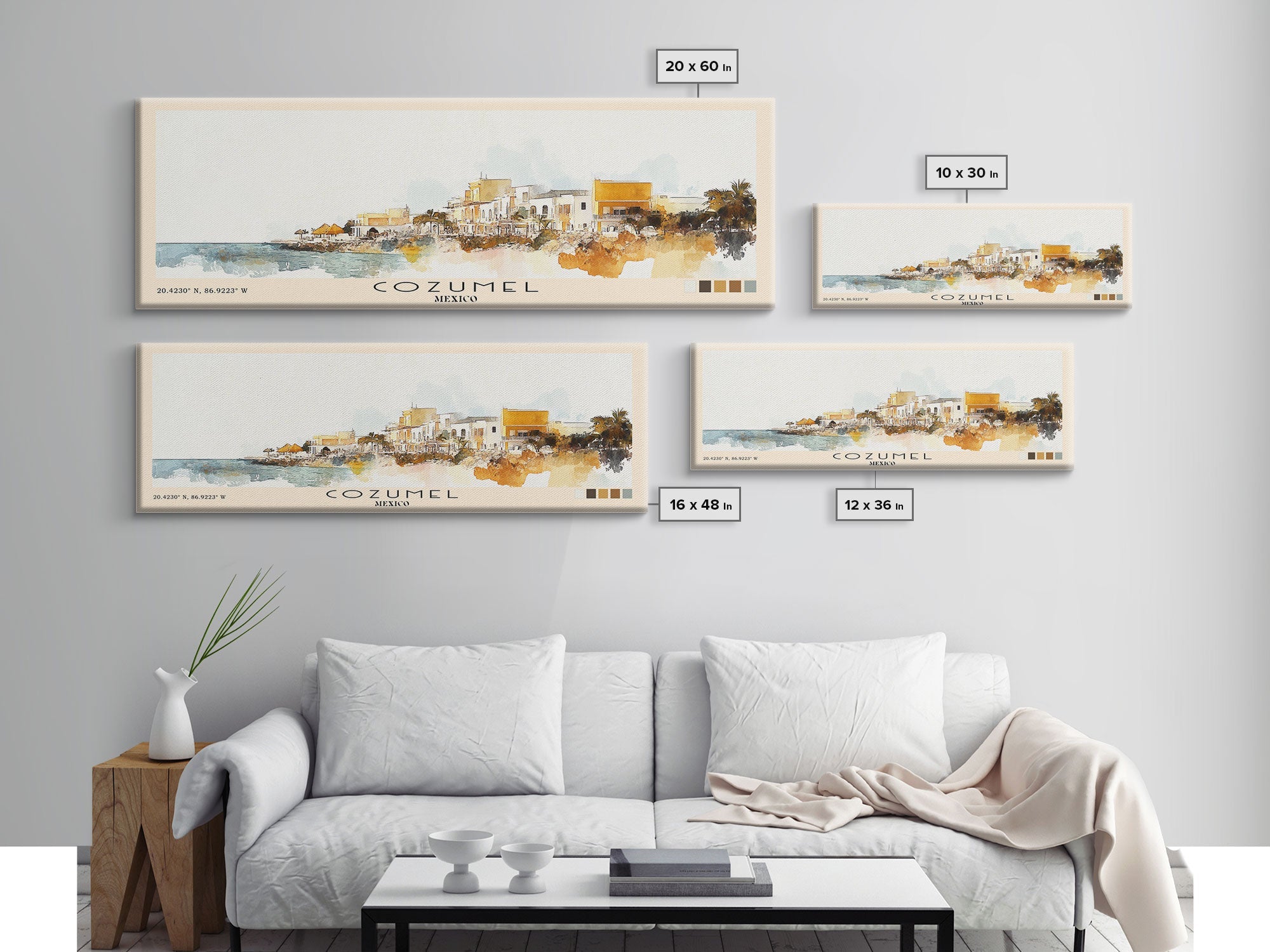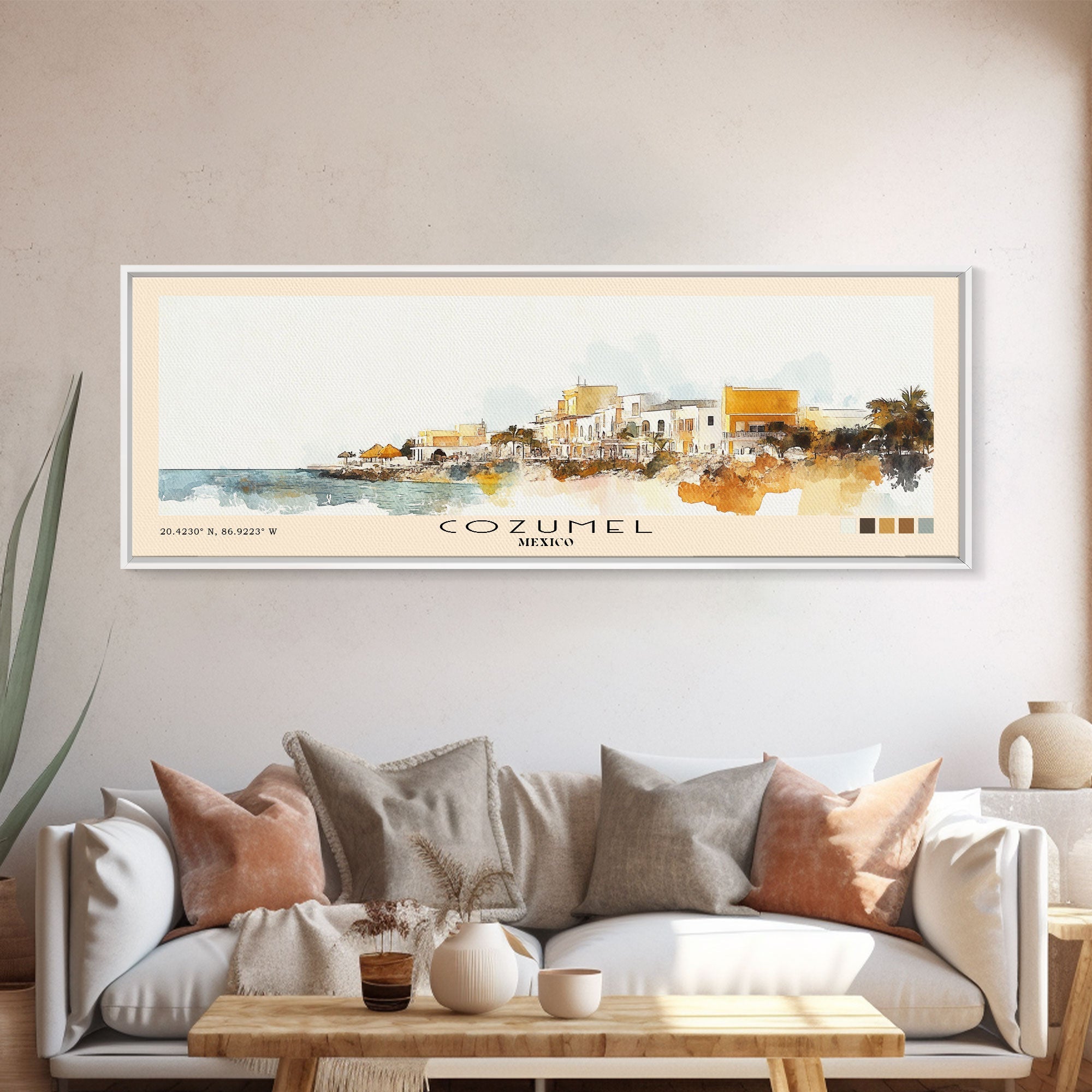 Cozumel, Mexico Watercolor Print, Vacation Gift, Mexico Wall Art, Beach Painting, Beach Decor, Large Wall Art, Wood Frame Art